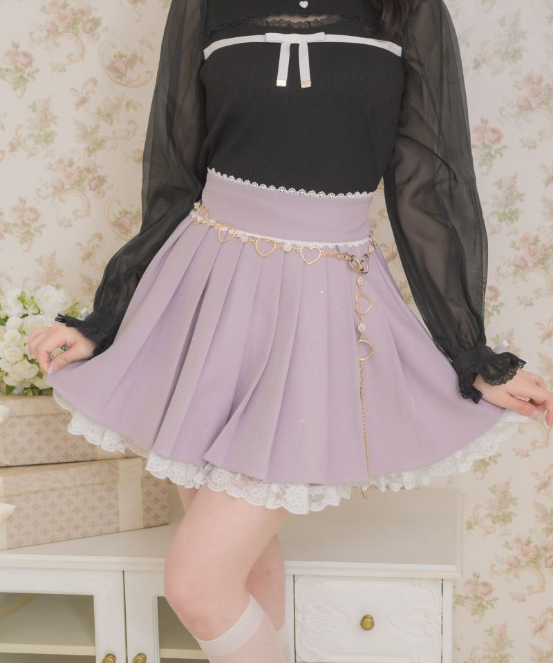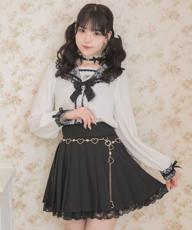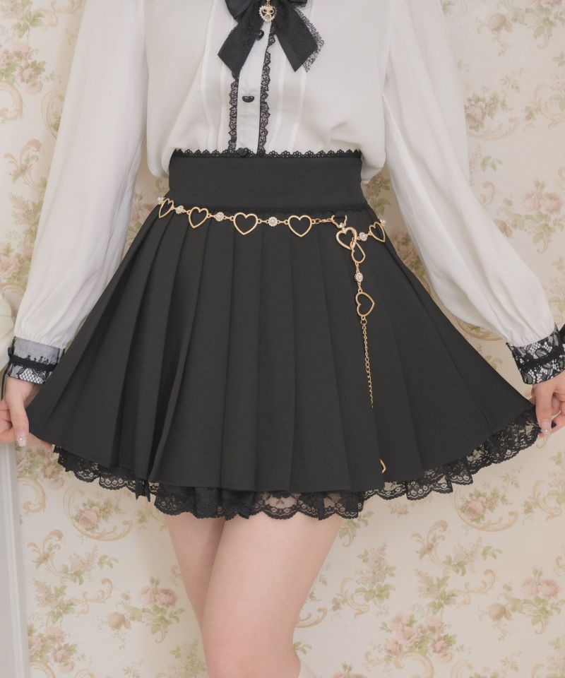 ※インナーパンツ付き ガーリッシュなプリーツデザイン、ハートたっぷりなチェーンが愛らしさをアピールするスカート。レースを追加したことでスクール感が緩和され、デイリーユースな仕様にチェンジ。ベルトの位置がずれないように、スカート本体にループ&リングを追加♡インナーパンツ付きです♪ ※照明の関係で実際のお色味と若干異なる場合がございます。 ※表示のサイズ感と実物は若干異なる場合がございますので、予めご了承ください。 モデル身長ブラック・ピンク163cm/チェック162cm
