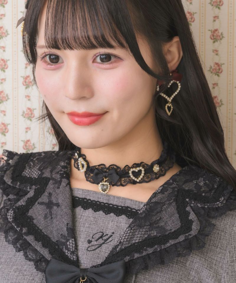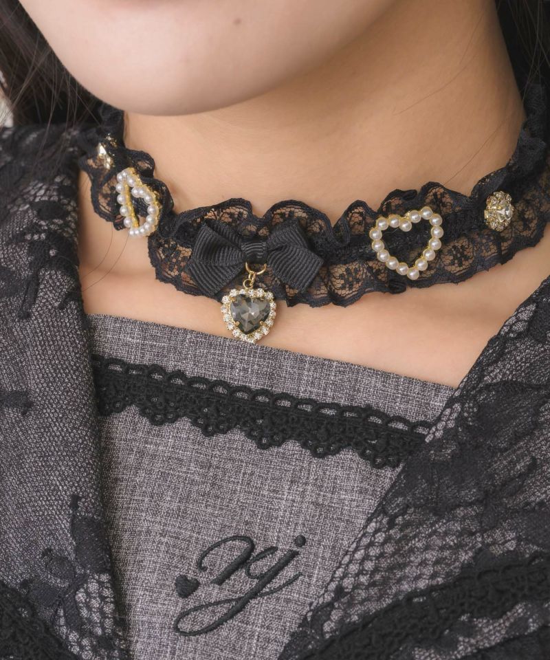 顔周りを華やかに演出してくれるレースチョーカー。透け感のあるレースで抜け感も♪メインのリボンにはキラッと可愛いハートのビジューが付いており、サイドの装飾もゴージャス感UPして煌びやかに◎デコルテがざっくり開いたトップスやミニスカートとの相性抜群! ※照明の関係で実際のお色味と若干異なる場合がございます。 ※表示のサイズ感と実物は若干異なる場合がございますので、予めご了承ください。
