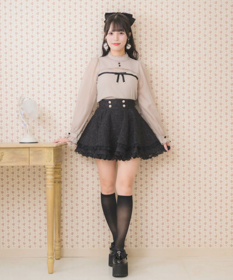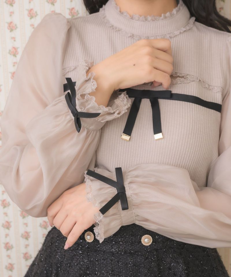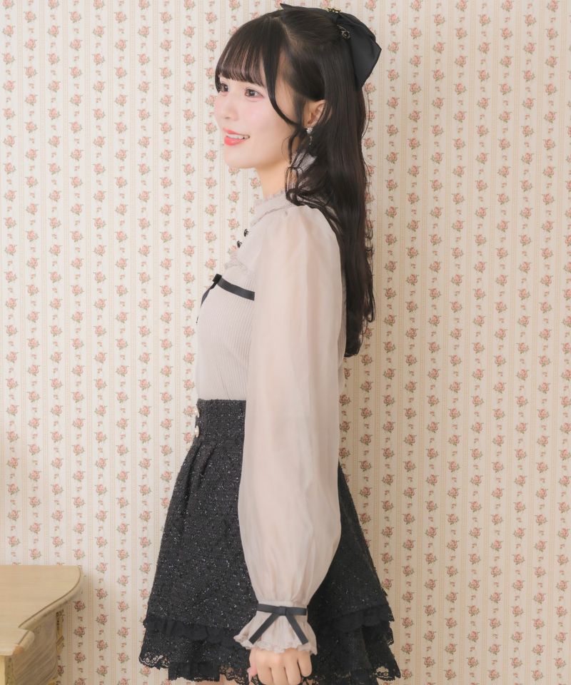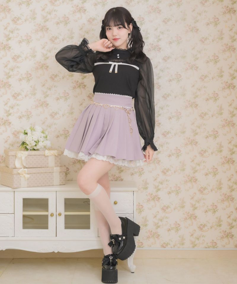 季節の変わり目&インナーとしても合わせやすい薄手のトップス♡控えめな肌見せとシアーの透け感がマッチしておしゃれ上級者に磨きをかけます。テープリボンがアクセントになり、バランスよくメリハリをプラス◎コロンとしたハート釦で甘いニュアンスを加速させます。 モデル身長ブラック・ホワイト163cm/ピンク162cm