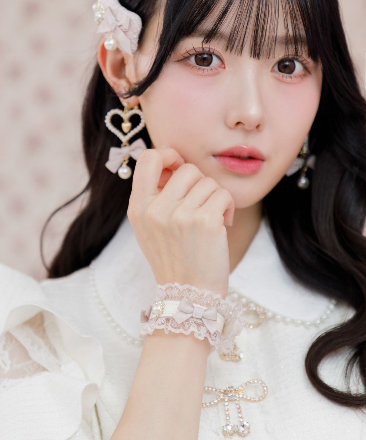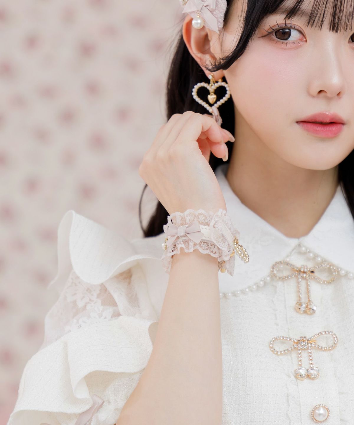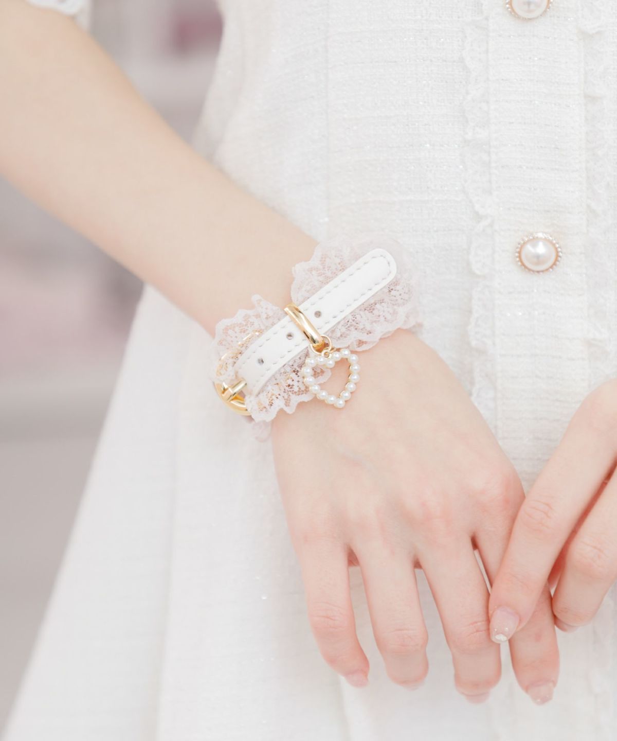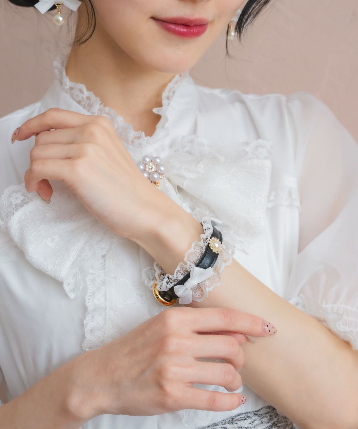 レースリボンハートパールブレスレット