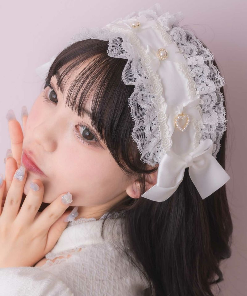 リボンディテールたっぷりのヘッドドレスが登場♪バラのケミカルレースで華やかさをプラス、お顔周りを覆うレースが"上品可愛い"をアップデートしてくれます。下ろしヘアにも、ツインテールなどのまとめ髪にも◎クリップ式なので挟むだけで簡単、小顔効果も期待でき、可愛くメイクアップしてくれます♡ ※照明の関係で実際のお色味と若干異なる場合がございます。 ※表示のサイズ感と実物は若干異なる場合がございますので、予めご了承ください。