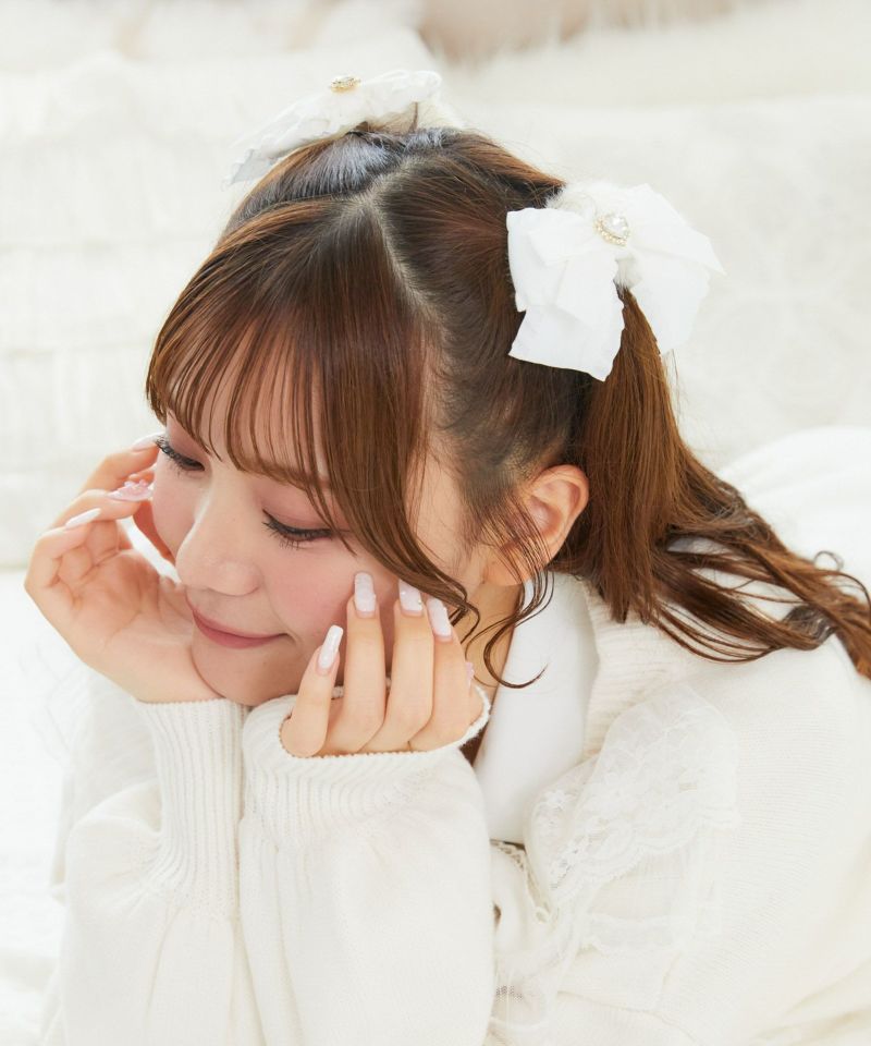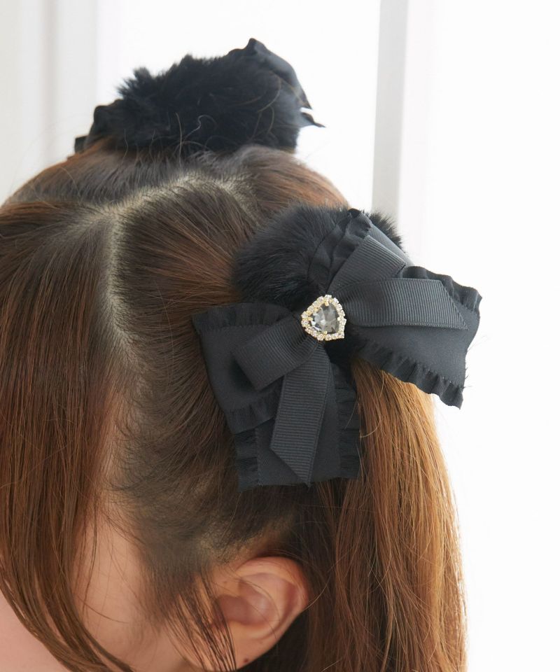 シーズンを匂わせるファーにリボンが付いて、ガーリーニュアンスが加速するシュシュの登場です♪見た目がとても可愛く、二つ縛りでトップに飾るヘアスタイルがおすすめです。ファーがふわふわで華奢な女の子を演出、アレンジもできて一気に旬度があがるアイテムです。