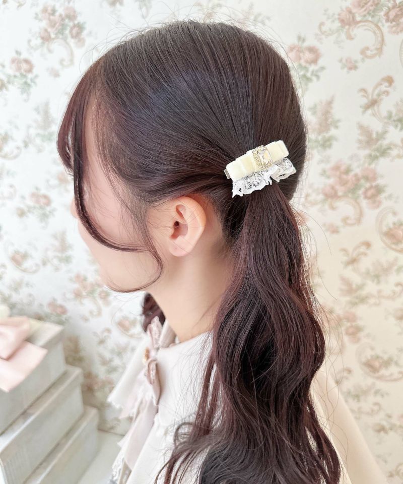 大人ガーリーな雰囲気を演出するベロアリボンのミニクリップ。結んだ髪にもハーフアップにも使えて、気軽にさっと前髪をねじって留めたり簡単にヘアアレンジが楽しめるのがポイント。クラス感のあるベロアが秋冬スタイルをぐっと格上げしてくれます♪ ※照明の関係で実際のお色味と若干異なる場合がございます。 ※表示のサイズ感と実物は若干異なる場合がございますので、予めご了承ください。