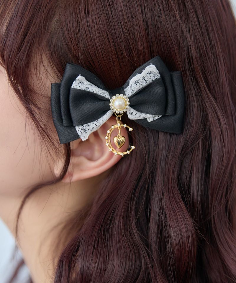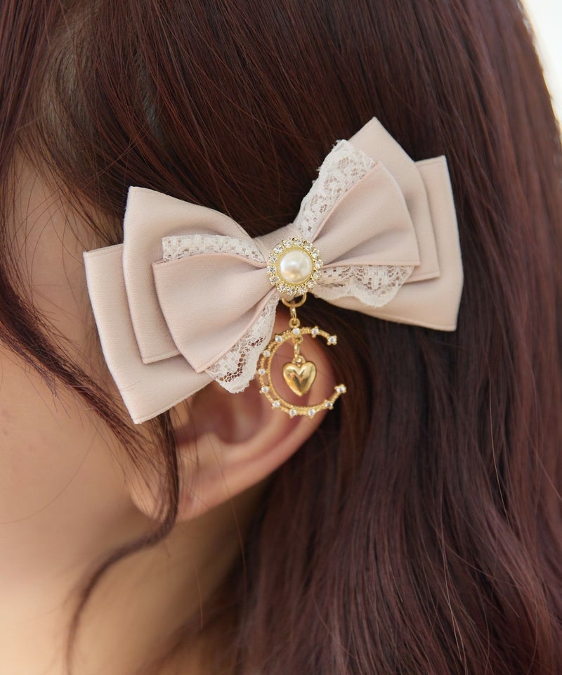 ゆめ可愛いムーンが乙女心をくすぐるリボンクリップSET。チャームが揺れ動いて愛らしさバツグンのルックスをON。ほのかなスイートさを運びつつ、甘々にならず洗練感のあるスタイルに♡クリップタイプなので簡単に装着できます。 ※照明の関係で実際のお色味と若干異なる場合がございます。 ※表示のサイズ感と実物は若干異なる場合がございますので、予めご了承ください。