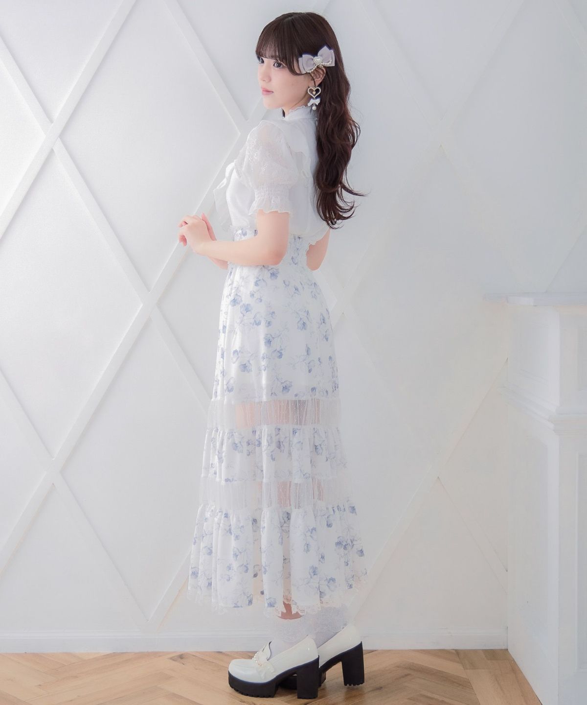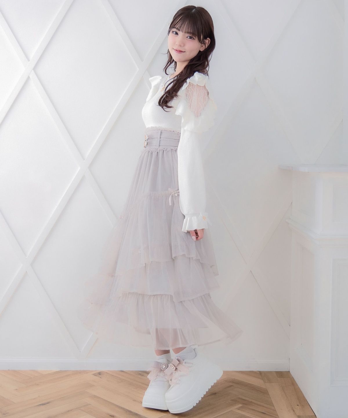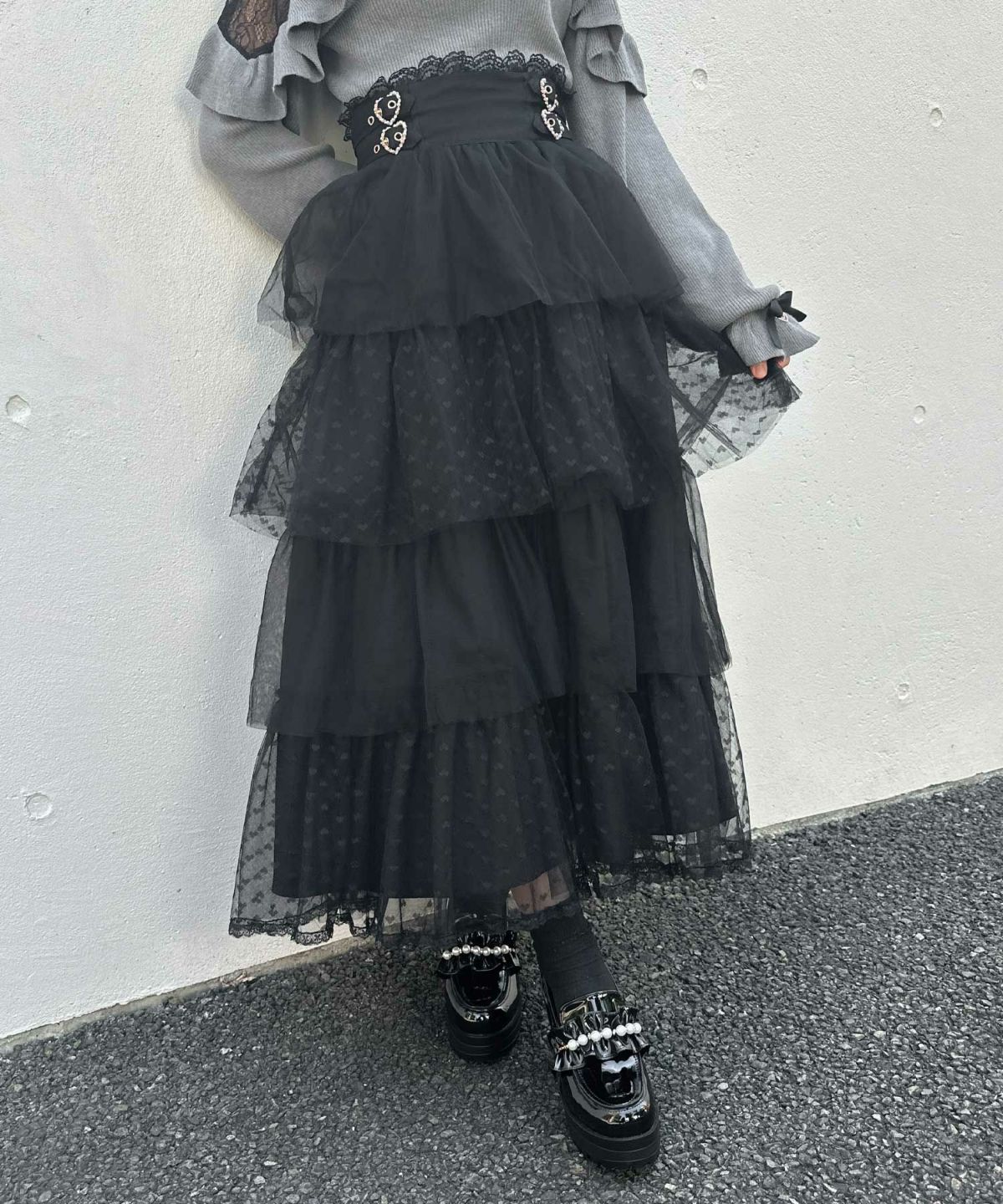 ハートチュールティアードロングスカート