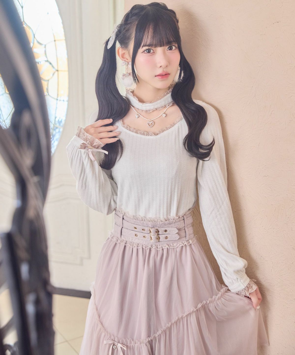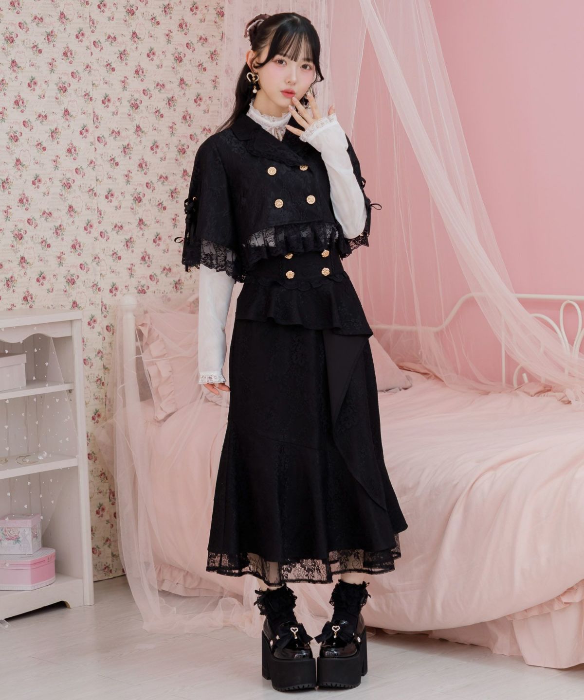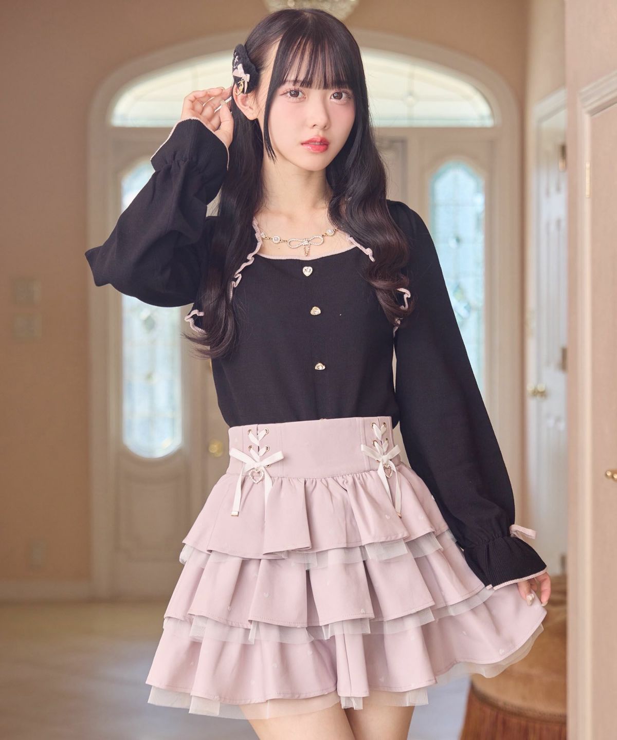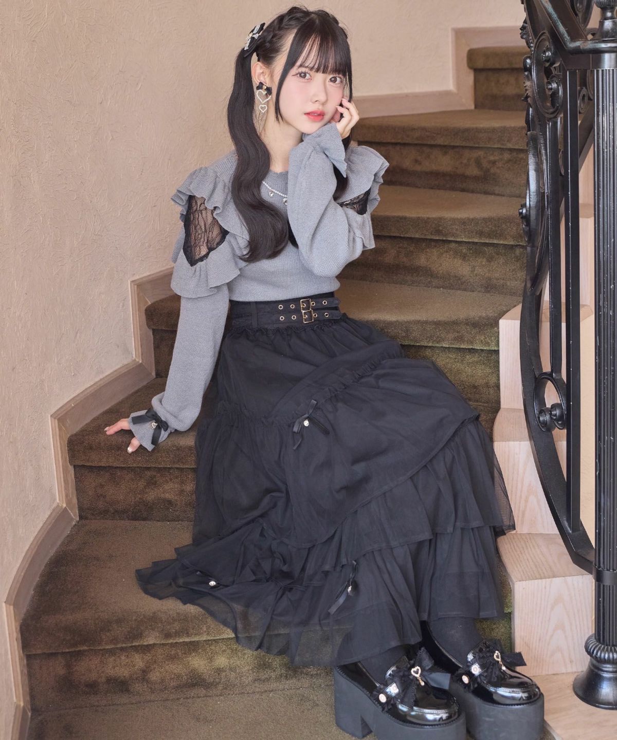 ハートチュールティアードロングスカート