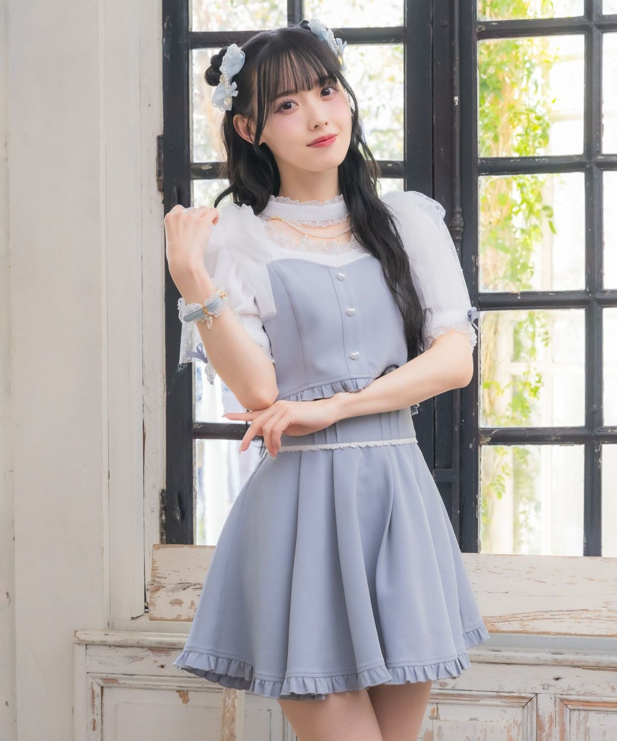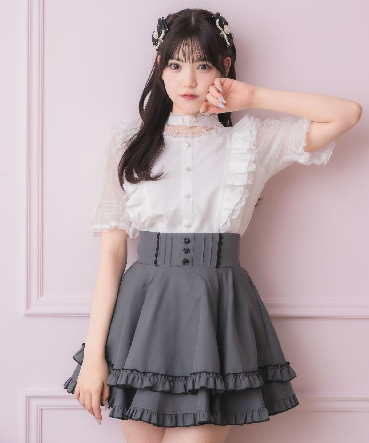 フロントレースアップチュールパールスカート