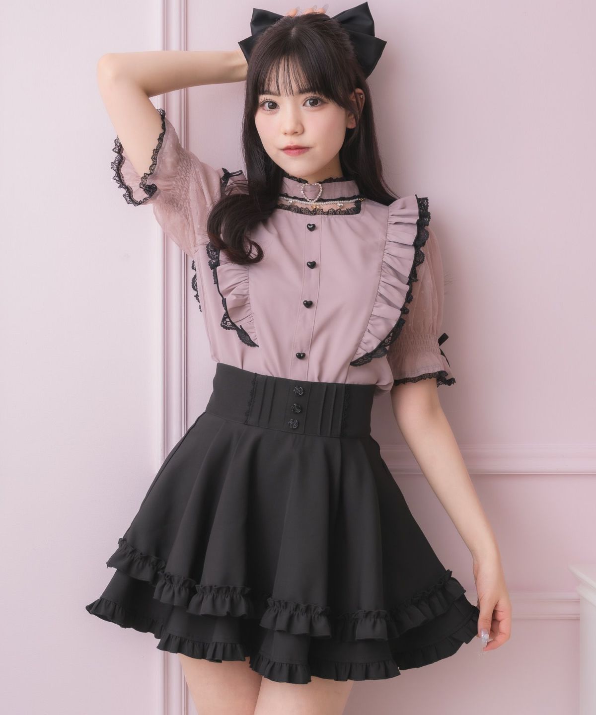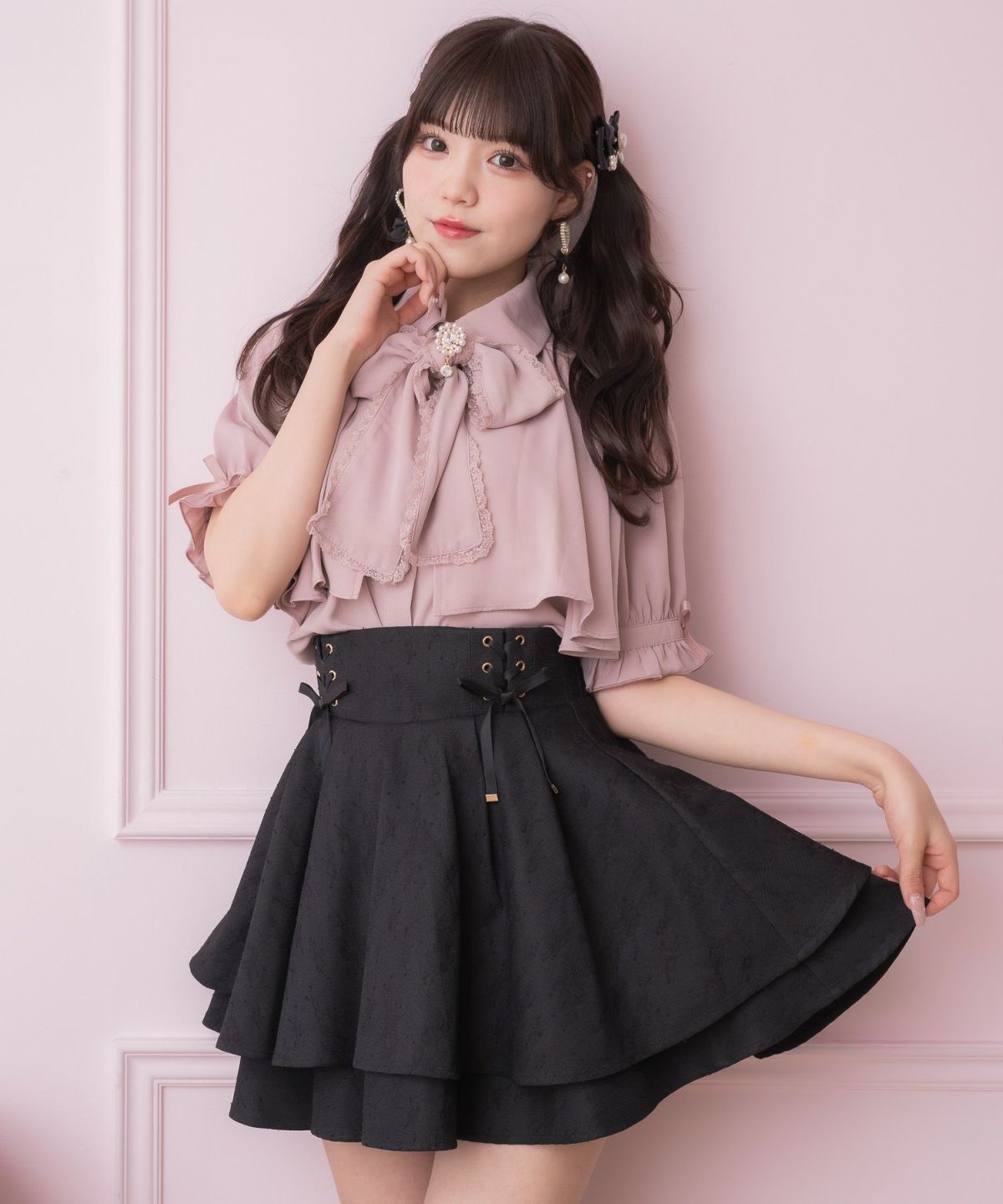 バックリボンダブルフレアスカパン