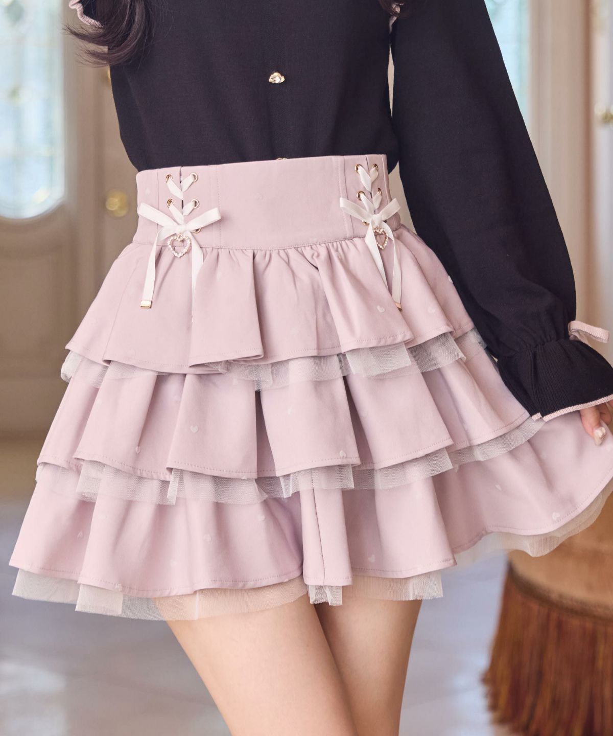 ハートフロッキーティアードスカート