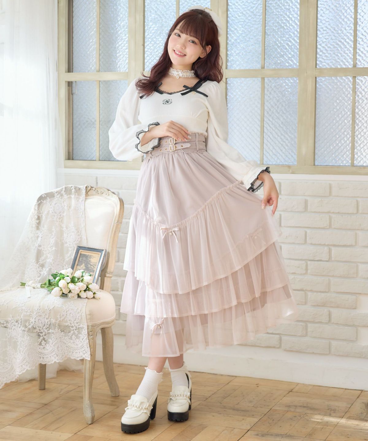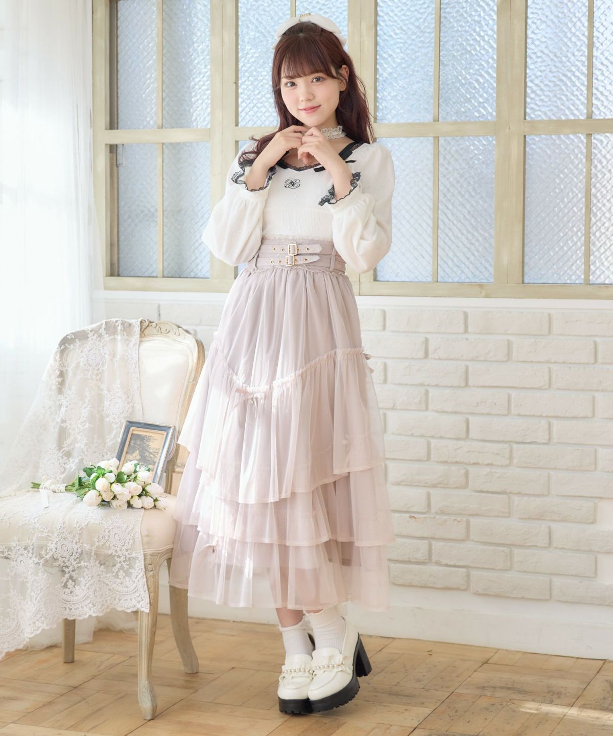 チュールティアードスカート