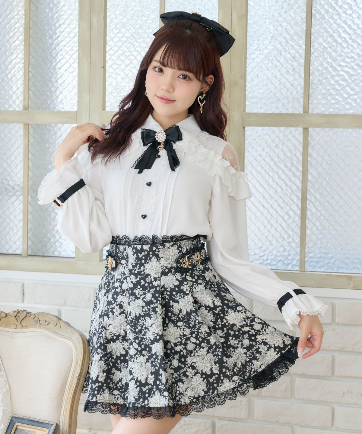 花柄ジャガードミニスカパン