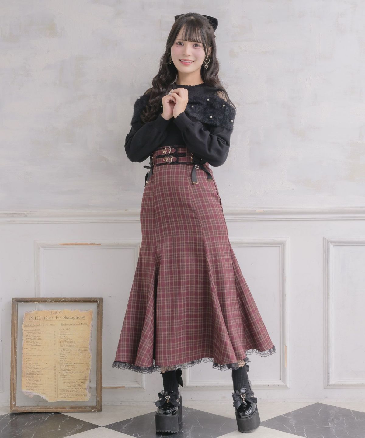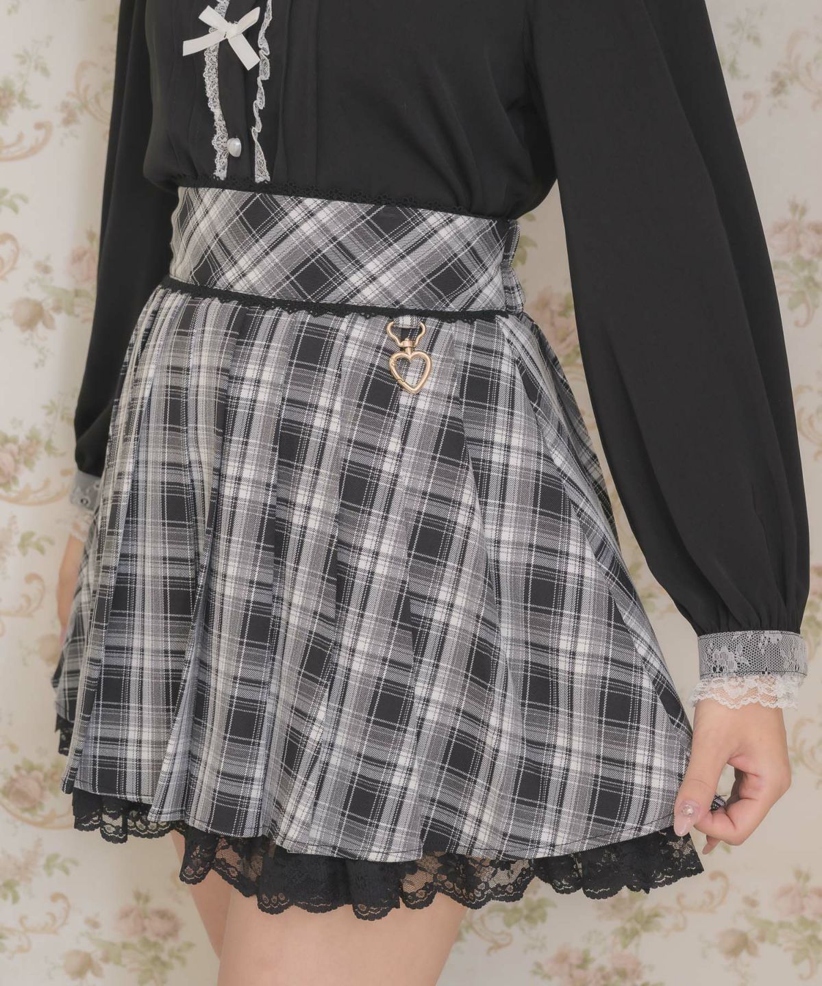 ハートバックルシアーチェックスカート