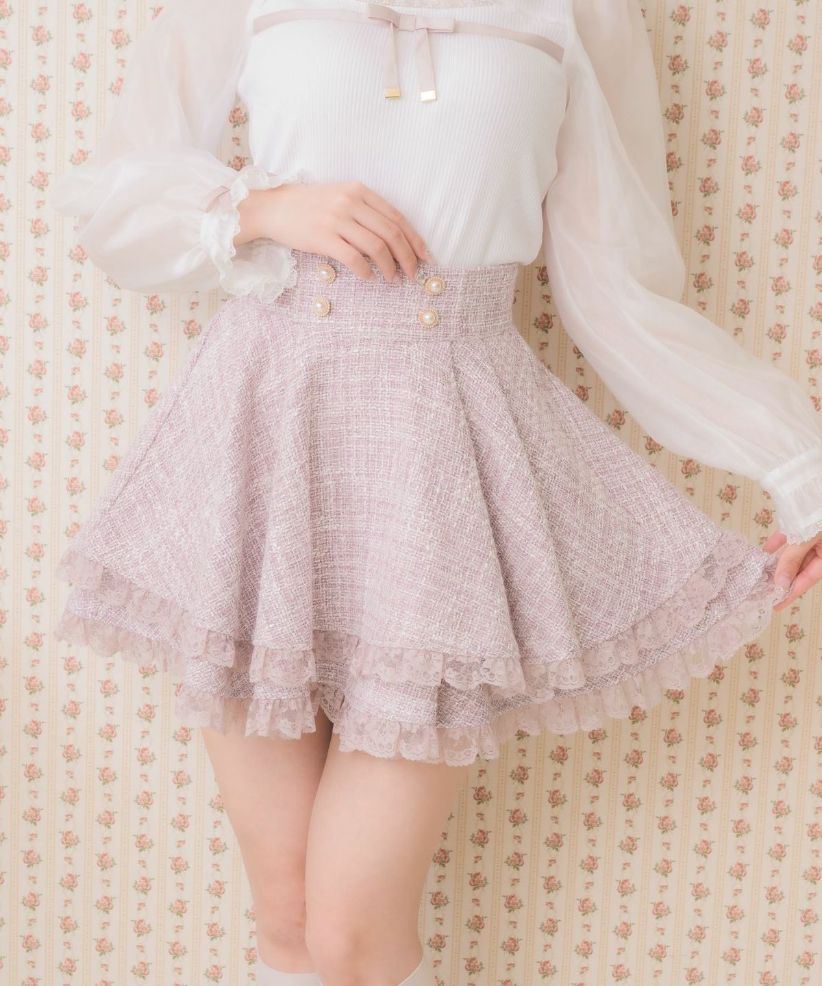 ダブルフレア裾レーススカート
