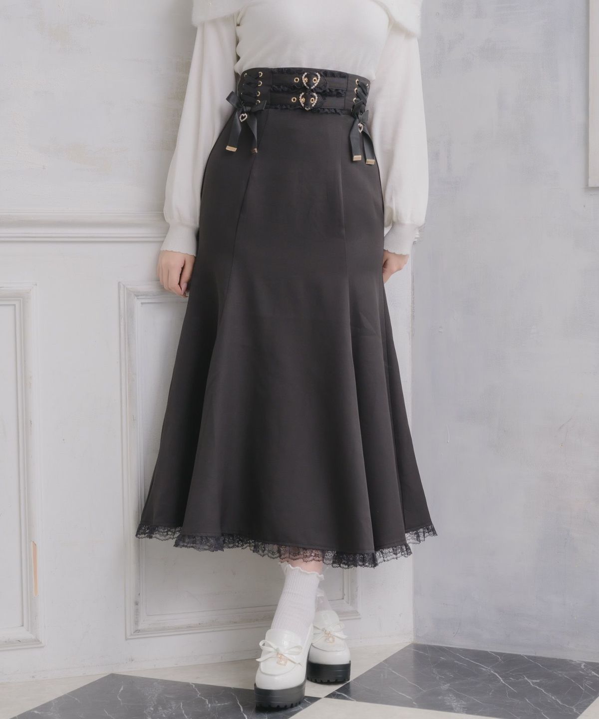 レースアップロングマーメイドスカート