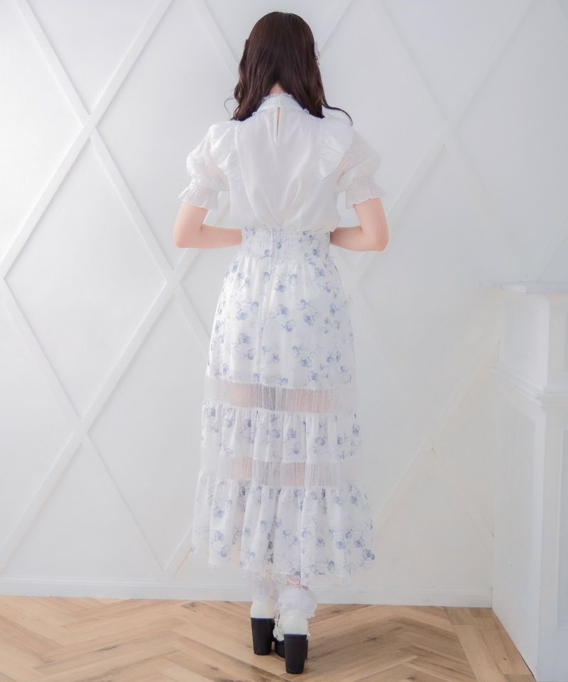 華美な花柄がコーデの主役に♡ドットと花柄をMIXさせたロングスカートのお目見えです。フレアシルエットで表情豊か、シアーから程よくレッグラインが透けて軽やかな印象を与えます。ウエストベルトのリボンがROJITAらしいディテールポイント♪ ※照明の関係で実際のお色味と若干異なる場合がございます。 ※表示のサイズ感と実物は若干異なる場合がございますので、予めご了承ください。 モデル身長:163cm