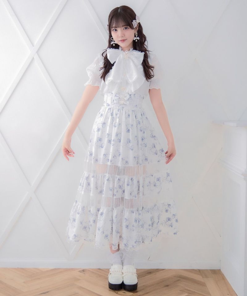 華美な花柄がコーデの主役に♡ドットと花柄をMIXさせたロングスカートのお目見えです。フレアシルエットで表情豊か、シアーから程よくレッグラインが透けて軽やかな印象を与えます。ウエストベルトのリボンがROJITAらしいディテールポイント♪ ※照明の関係で実際のお色味と若干異なる場合がございます。 ※表示のサイズ感と実物は若干異なる場合がございますので、予めご了承ください。 モデル身長:163cm