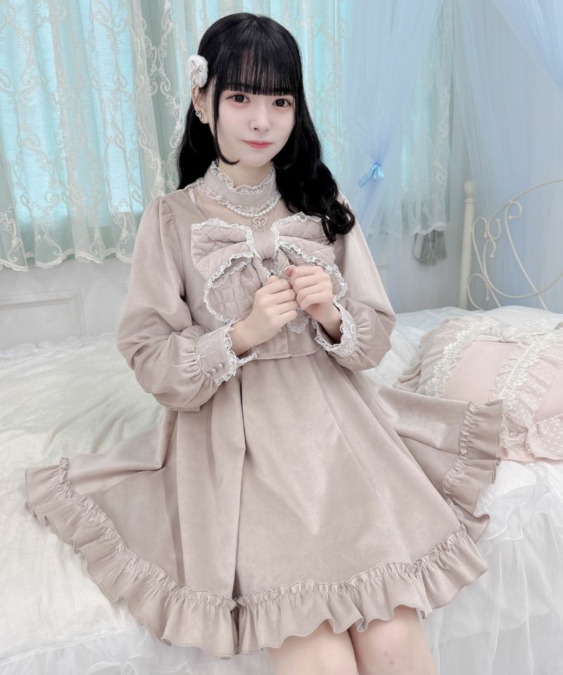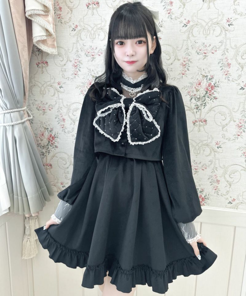 スパンコールを散りばめたキルティングのリボンが可愛い♡上品で高見えのできるウィンターワンピースのお目見えです。BIGリボンとレースで抜け感をプラスするデコルテにはパールのチェーンの装飾をON、お顔周りを華やかにメイクアップしてくれます。お呼ばれシーンにも活躍してくれそう♪ ※照明の関係で実際のお色味と若干異なる場合がございます。 ※表示のサイズ感と実物は若干異なる場合がございますので、予めご了承ください。 モデル身長:160cm