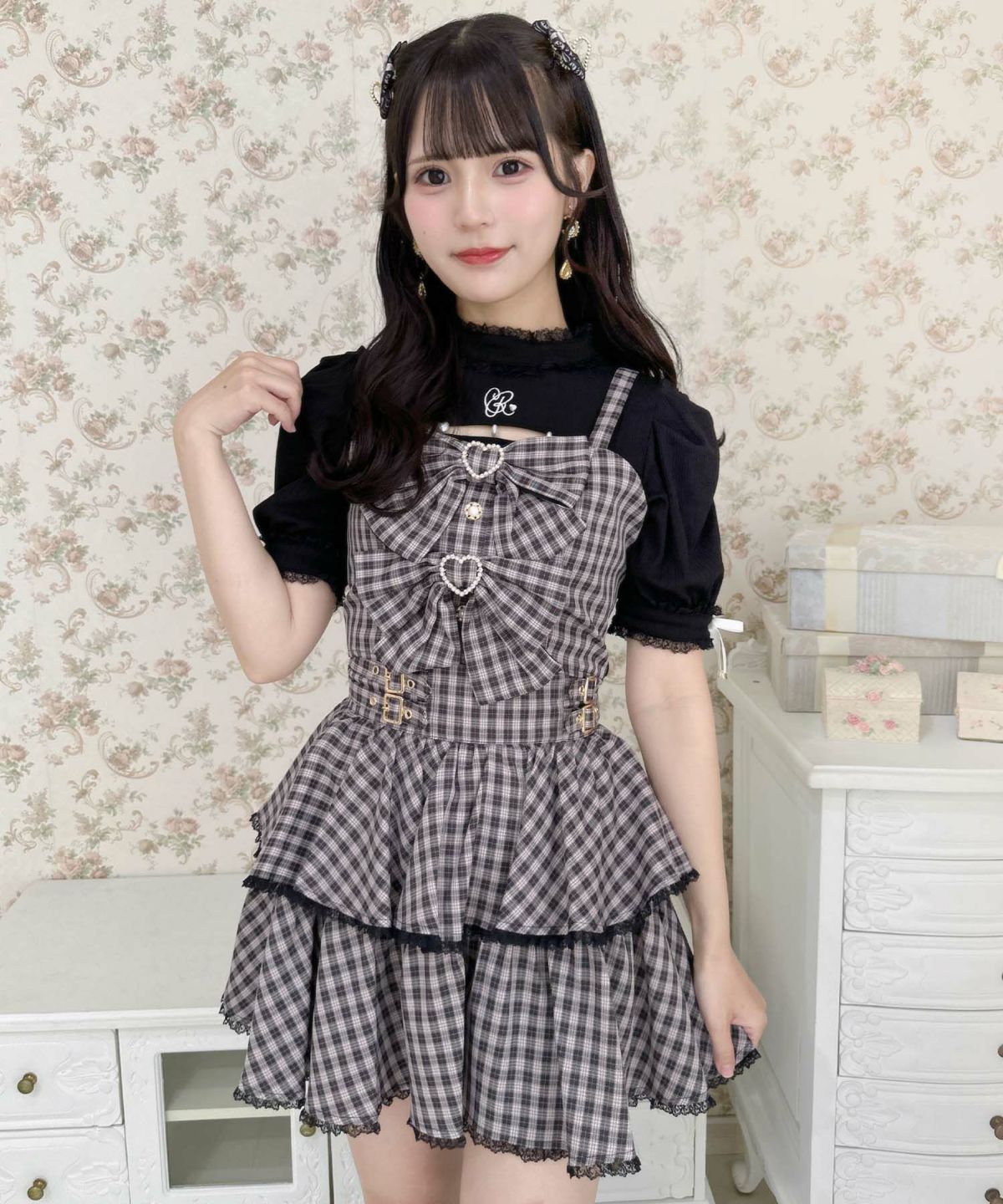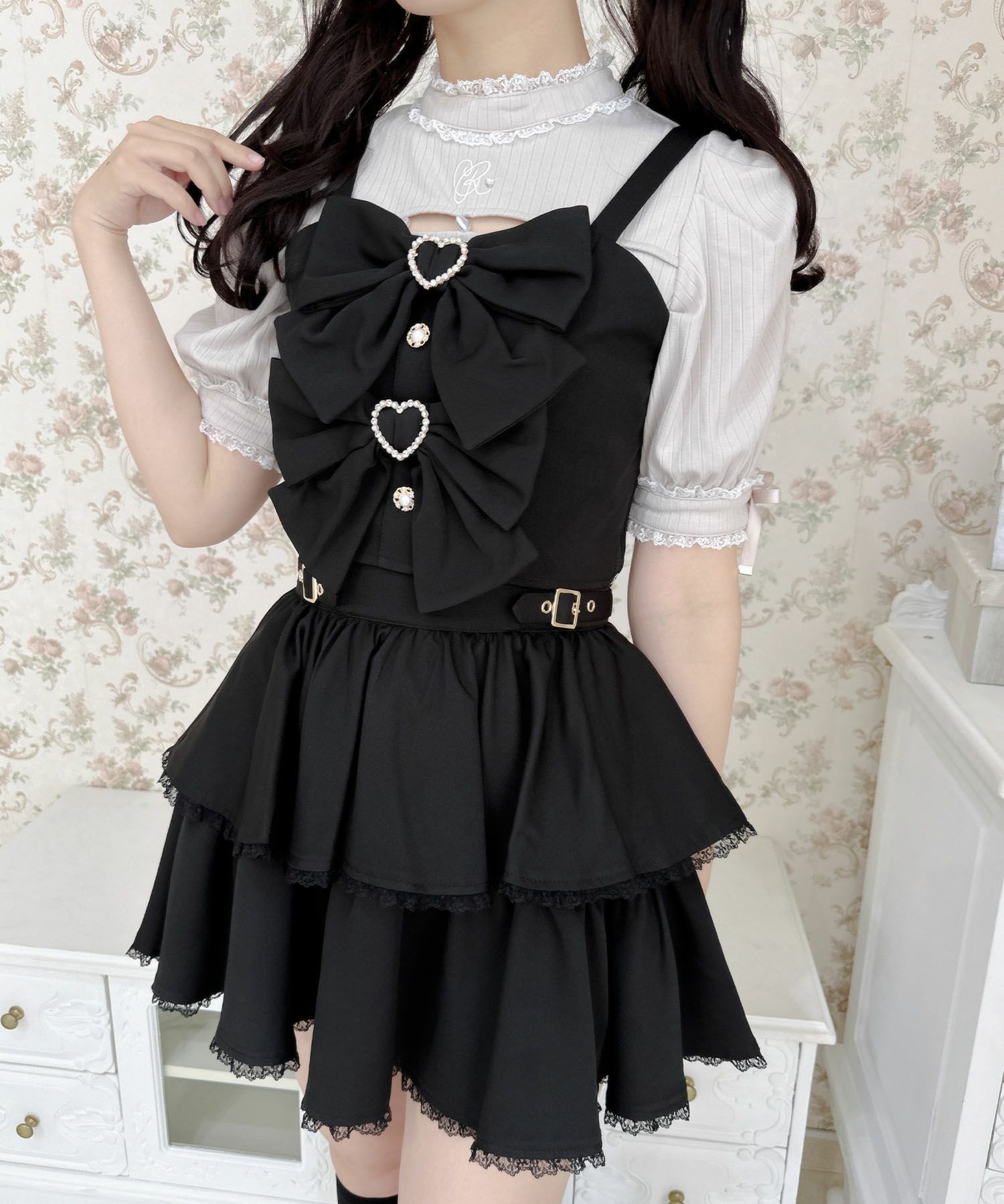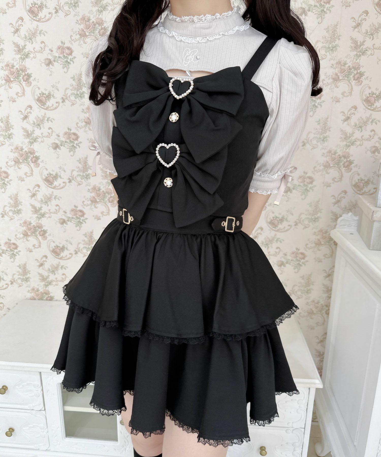 ダブルリボンビスチェスカートセット