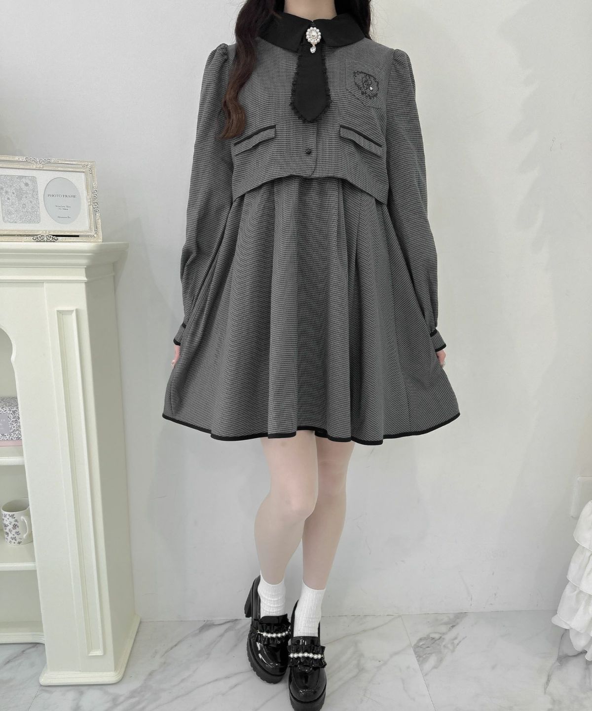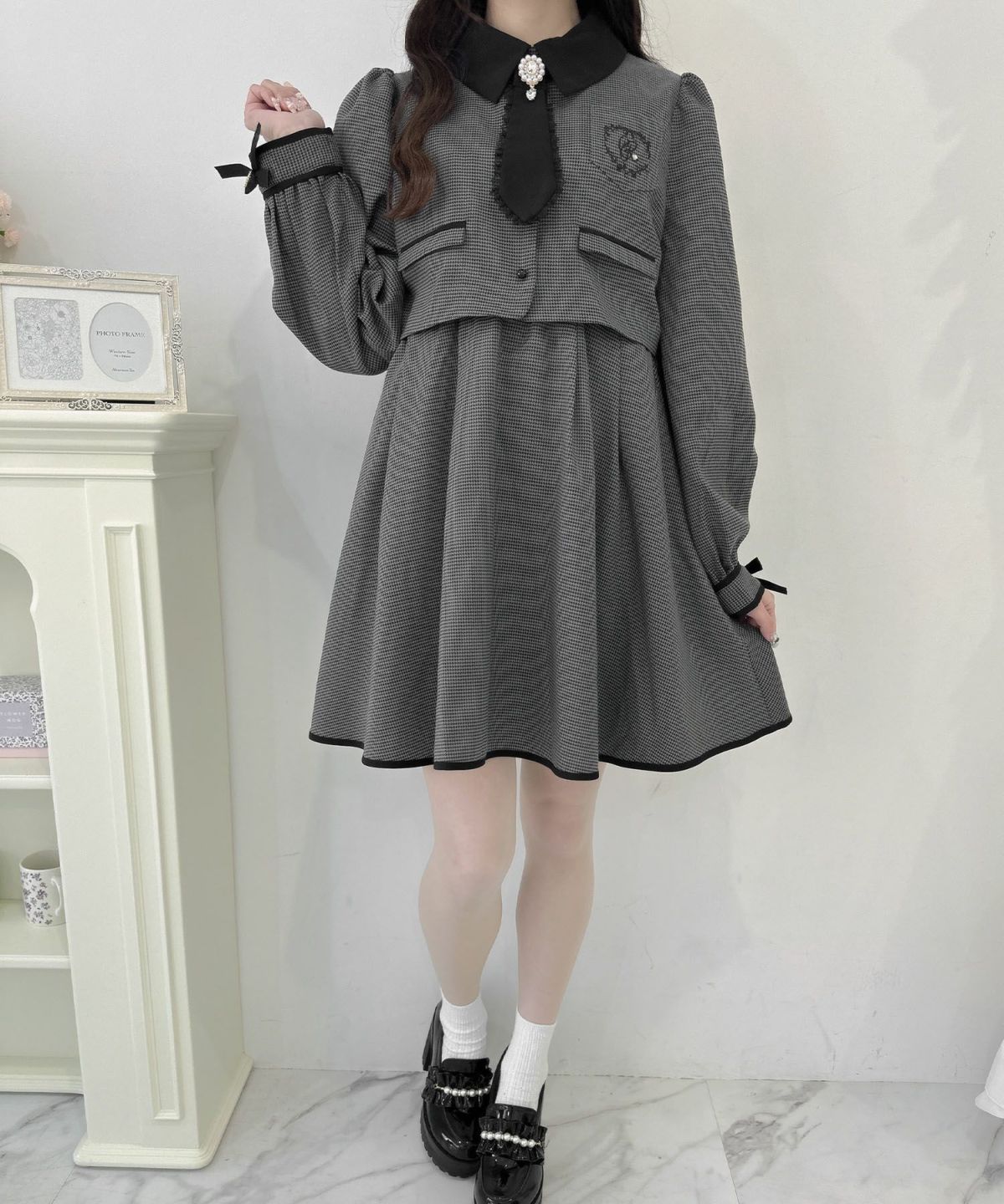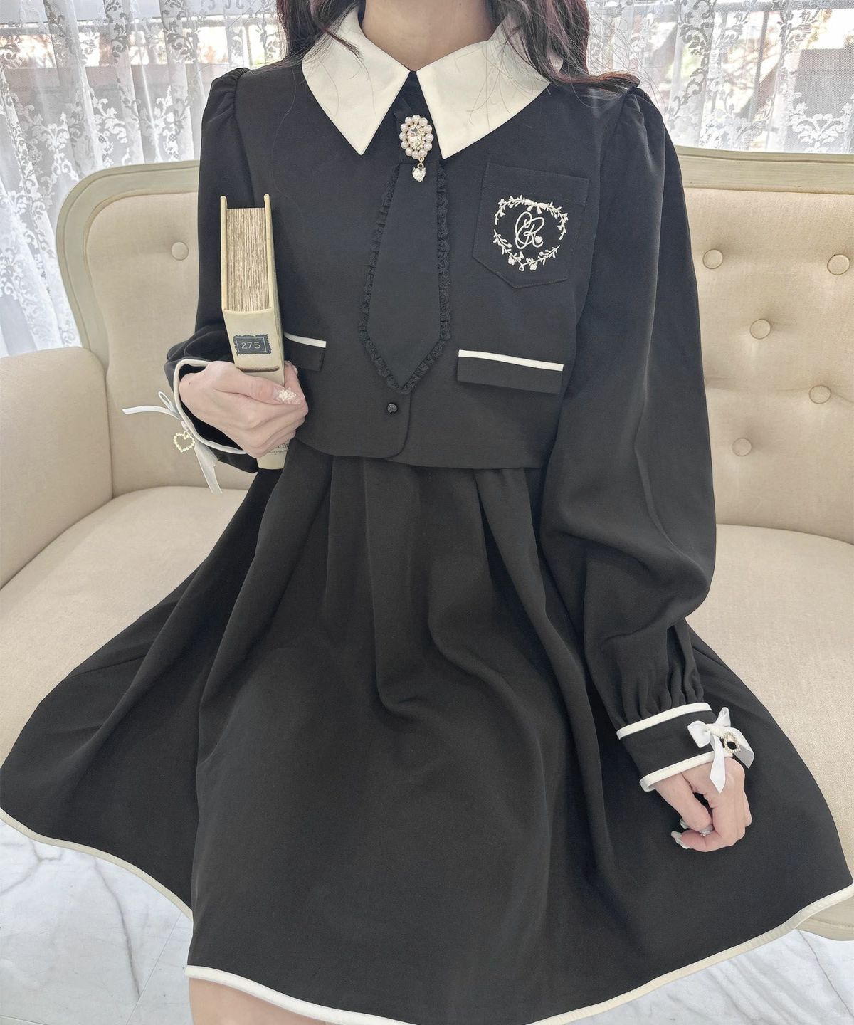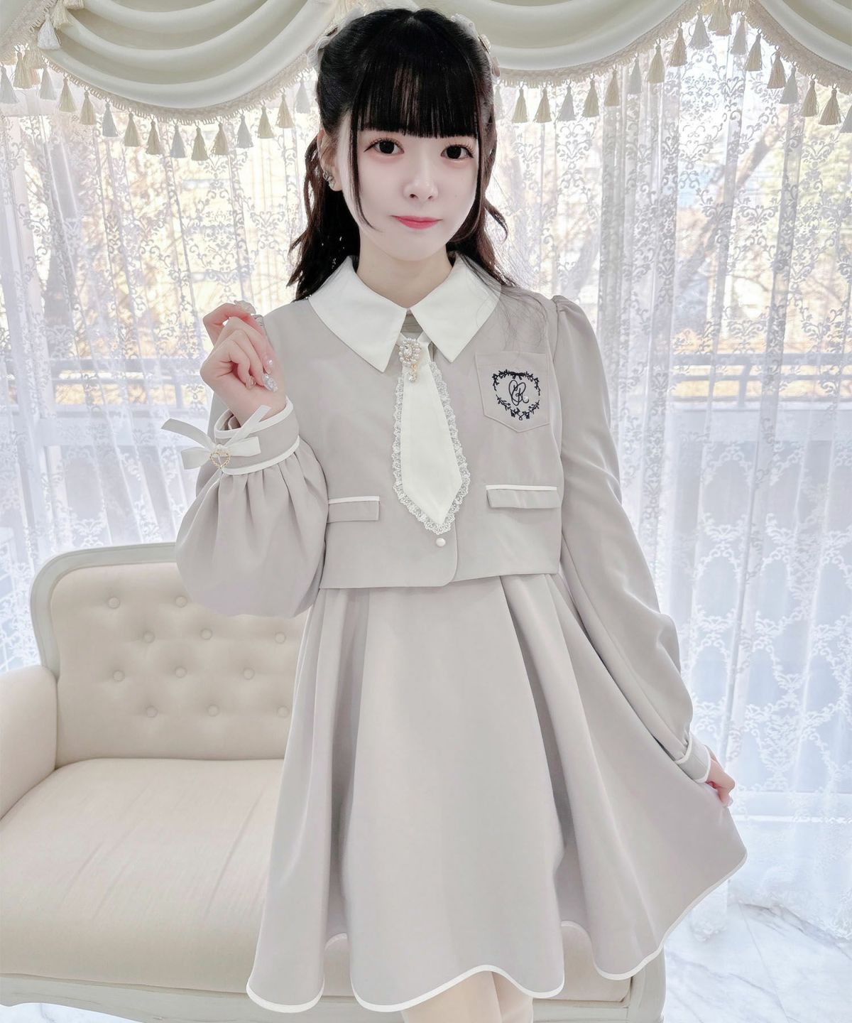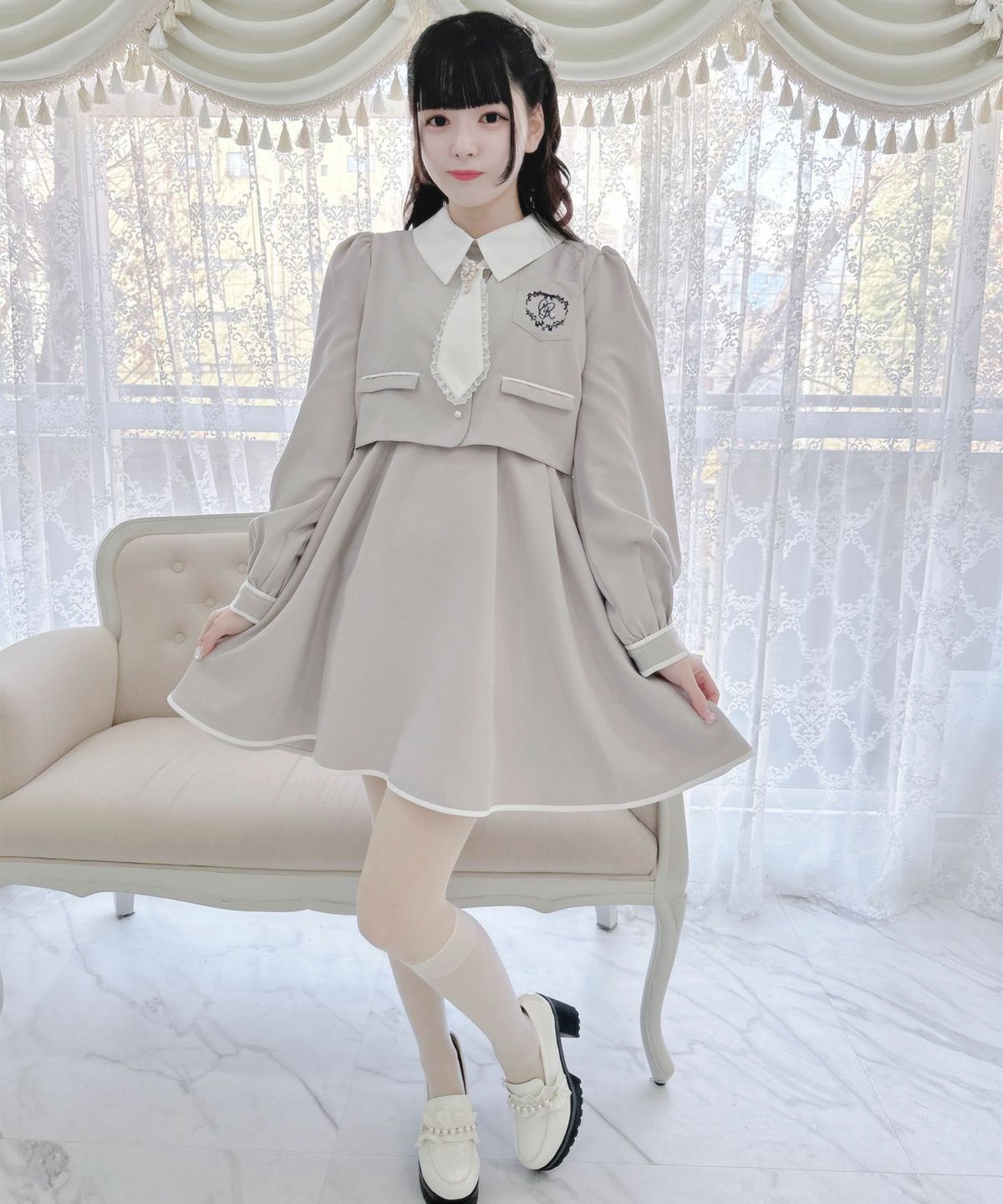 ロゴ入りネクタイ付きスリーブデザインワンピース