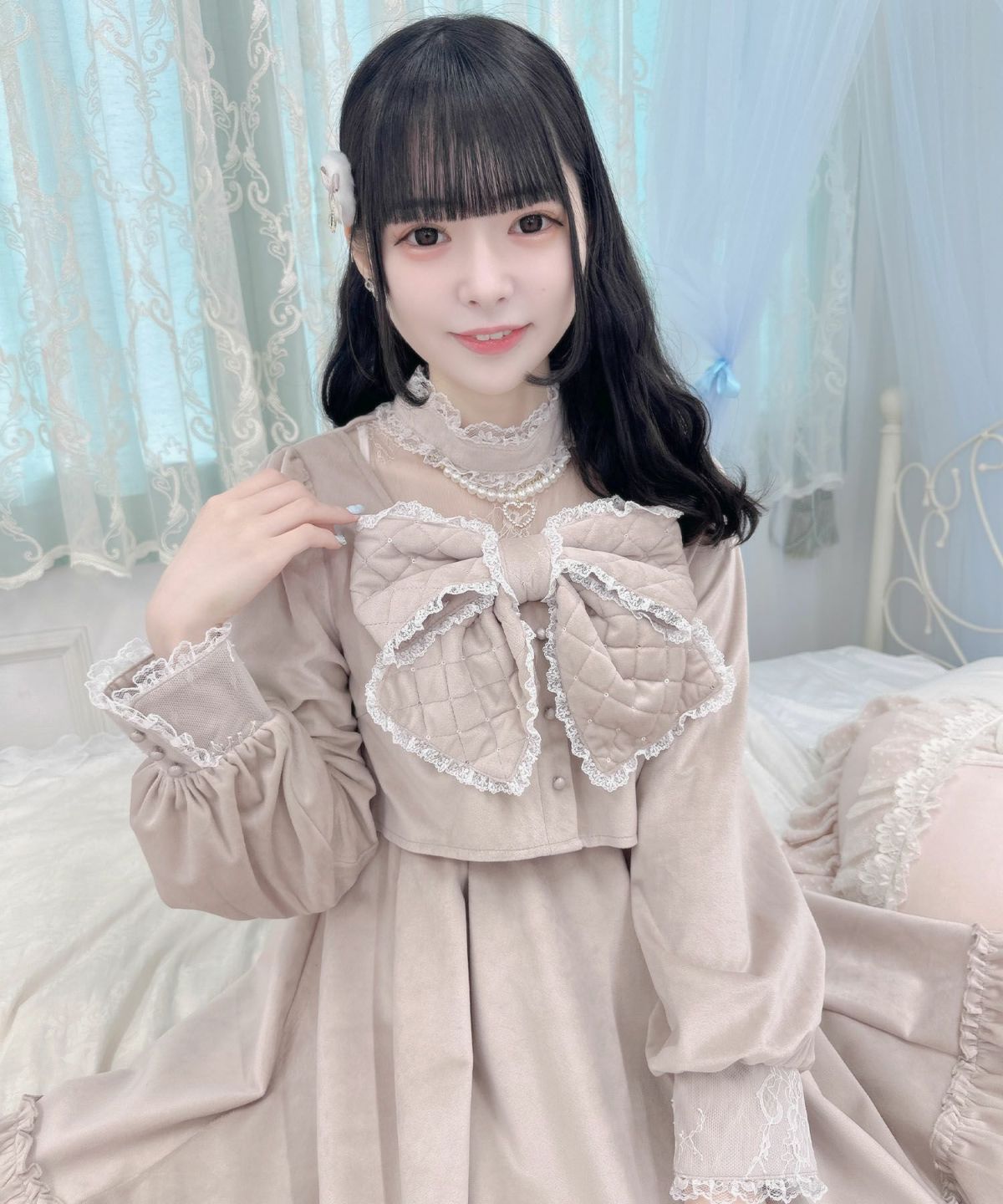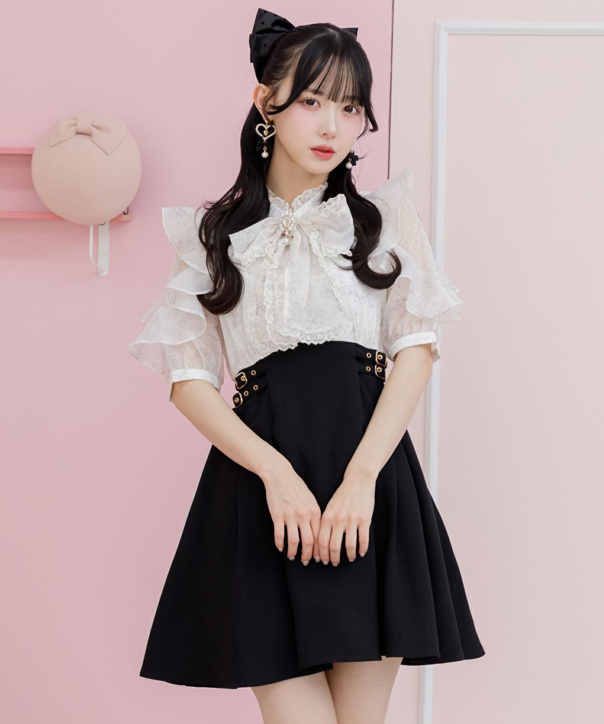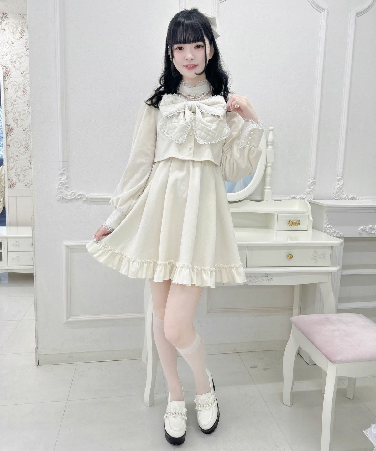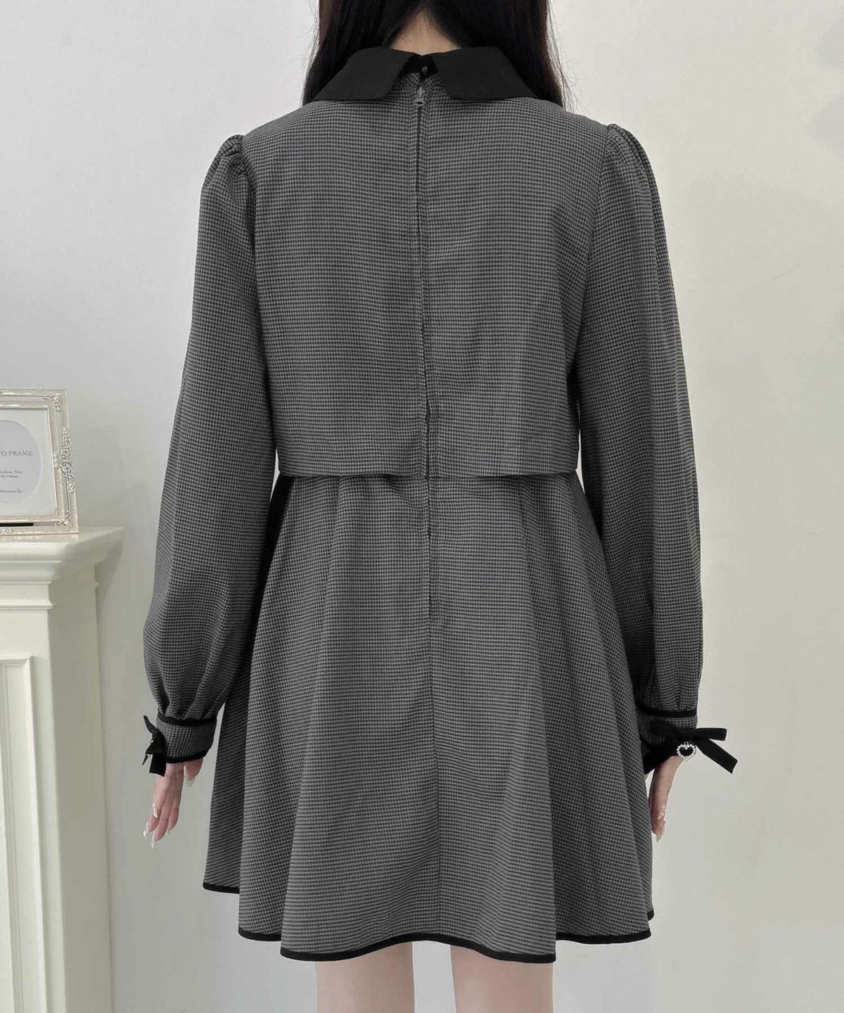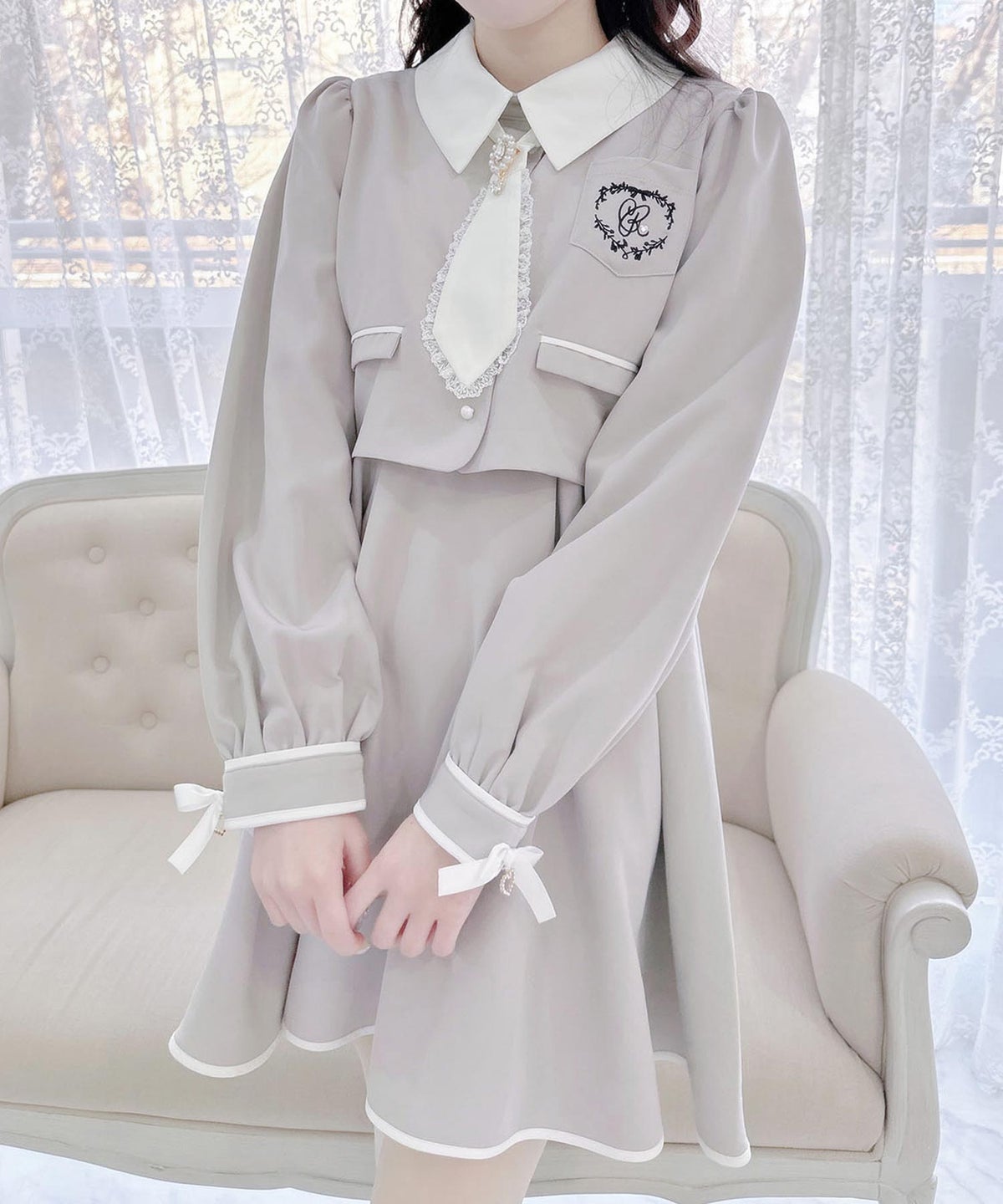ロゴ入りネクタイ付きスリーブデザインワンピース