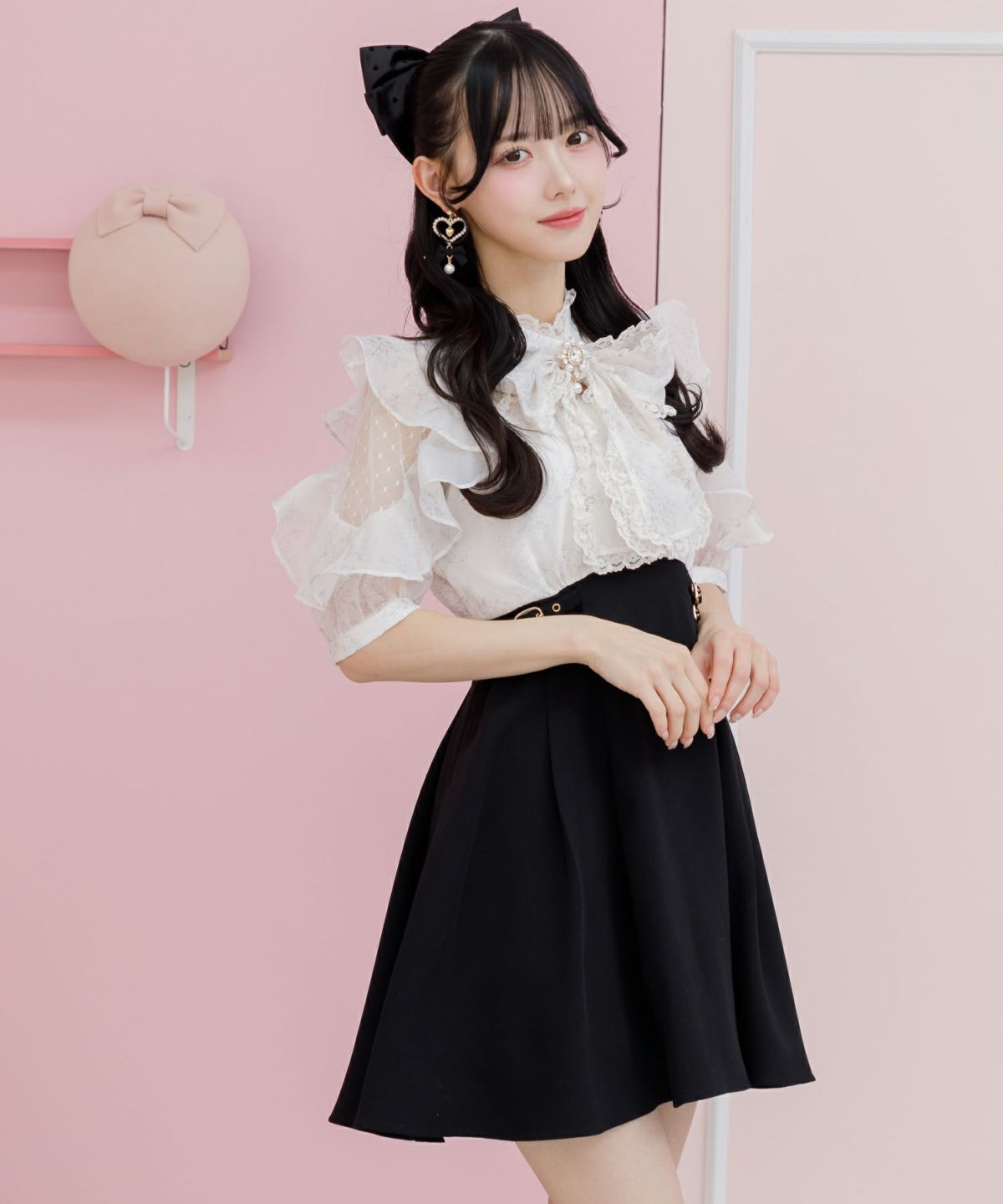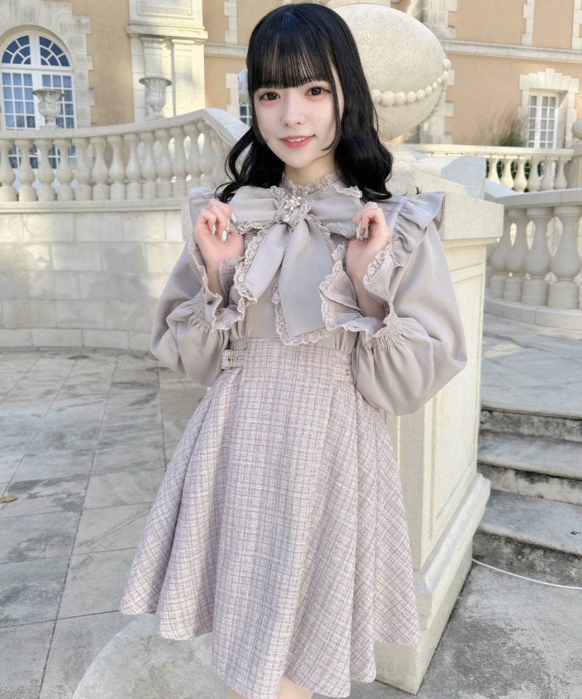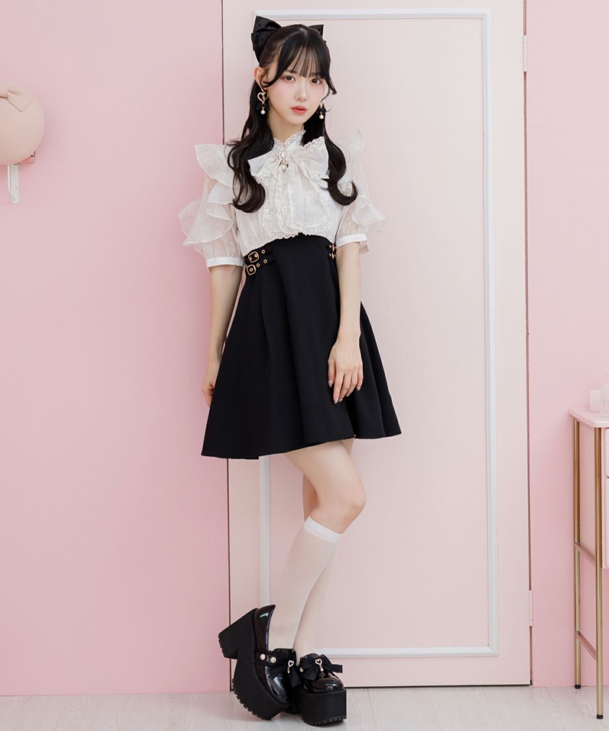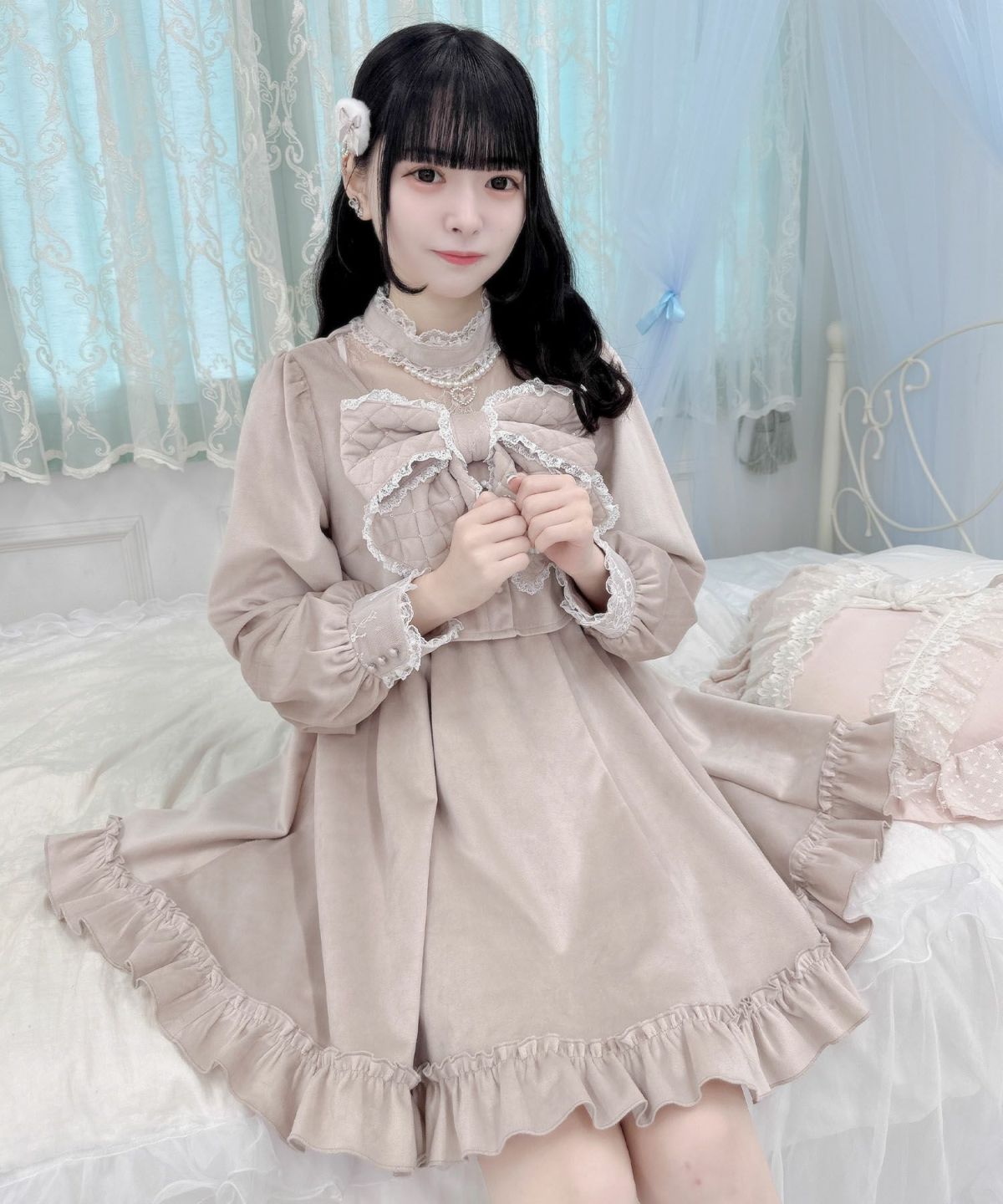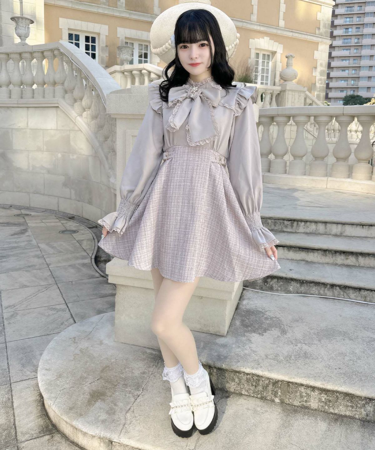 ロゴ入りネクタイ付きスリーブデザインワンピース