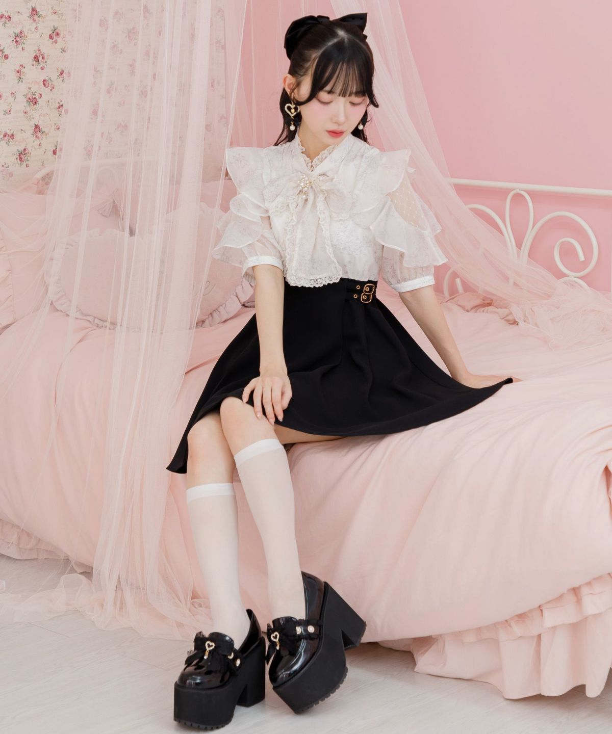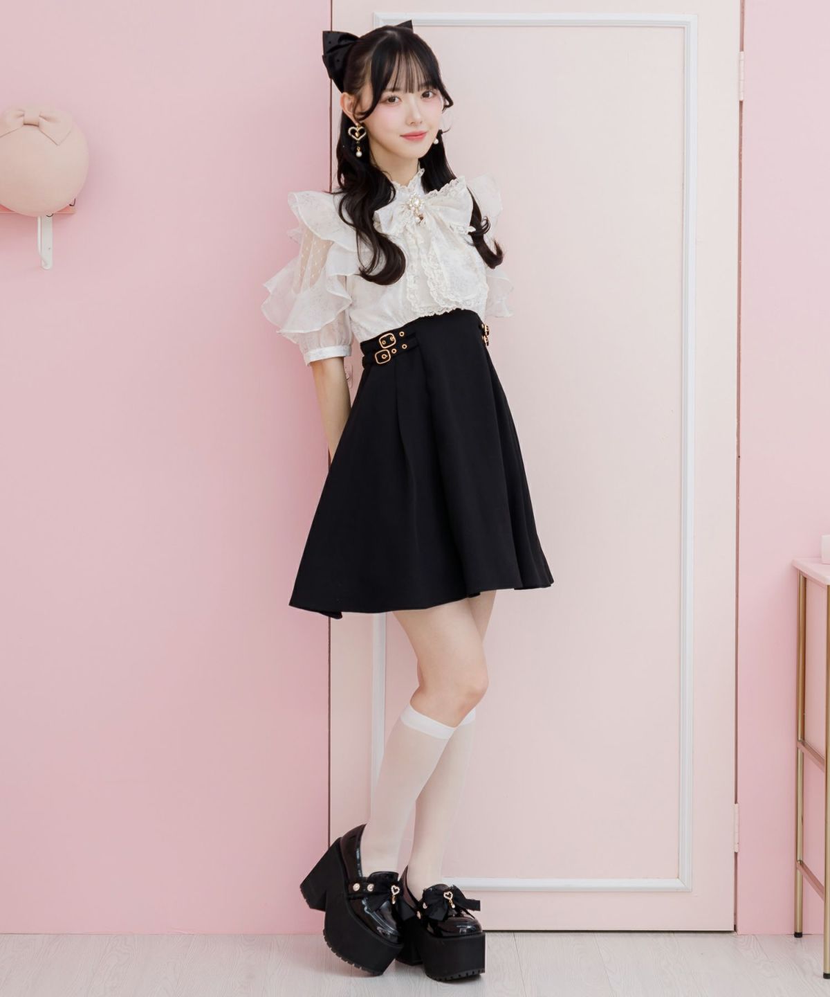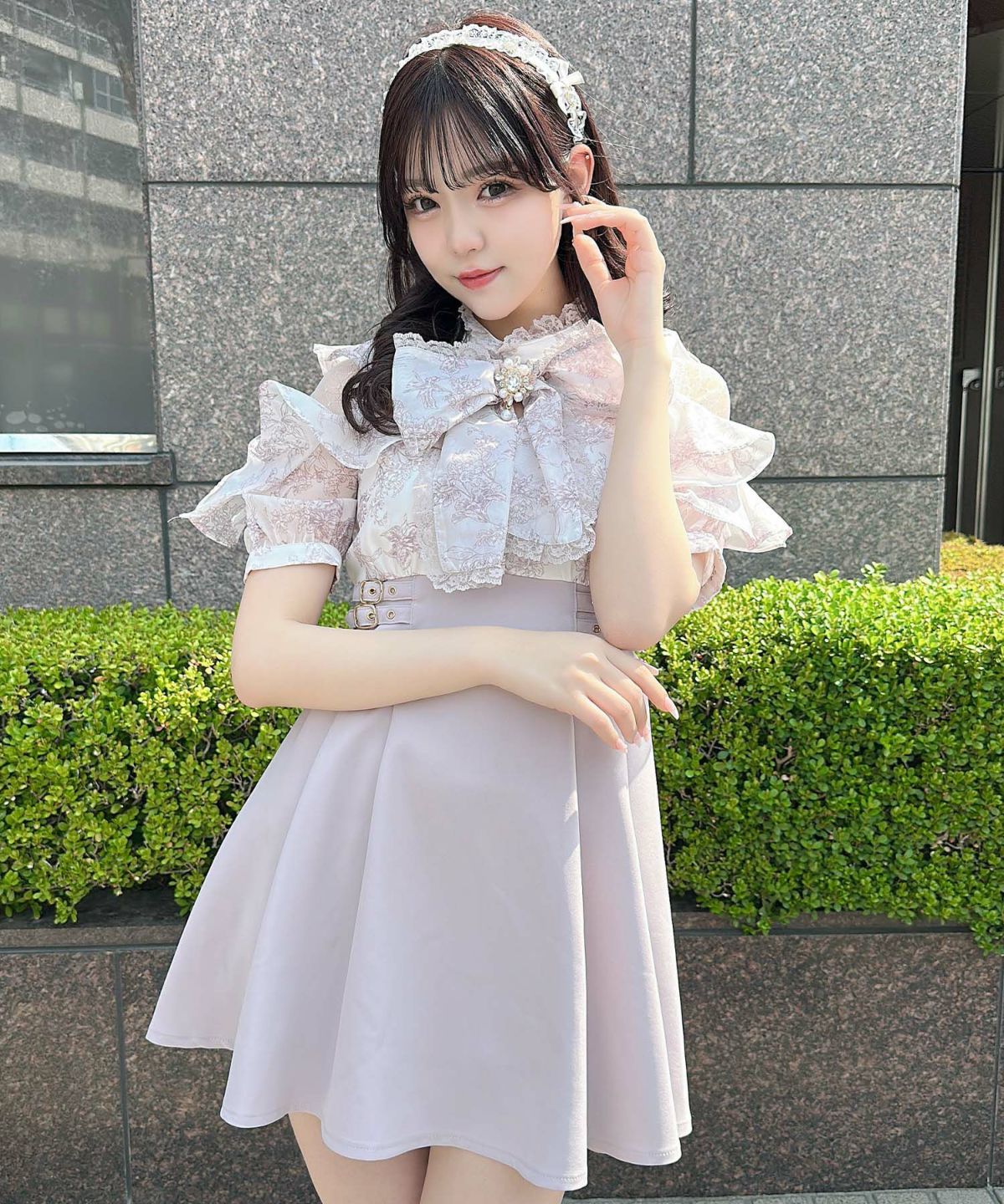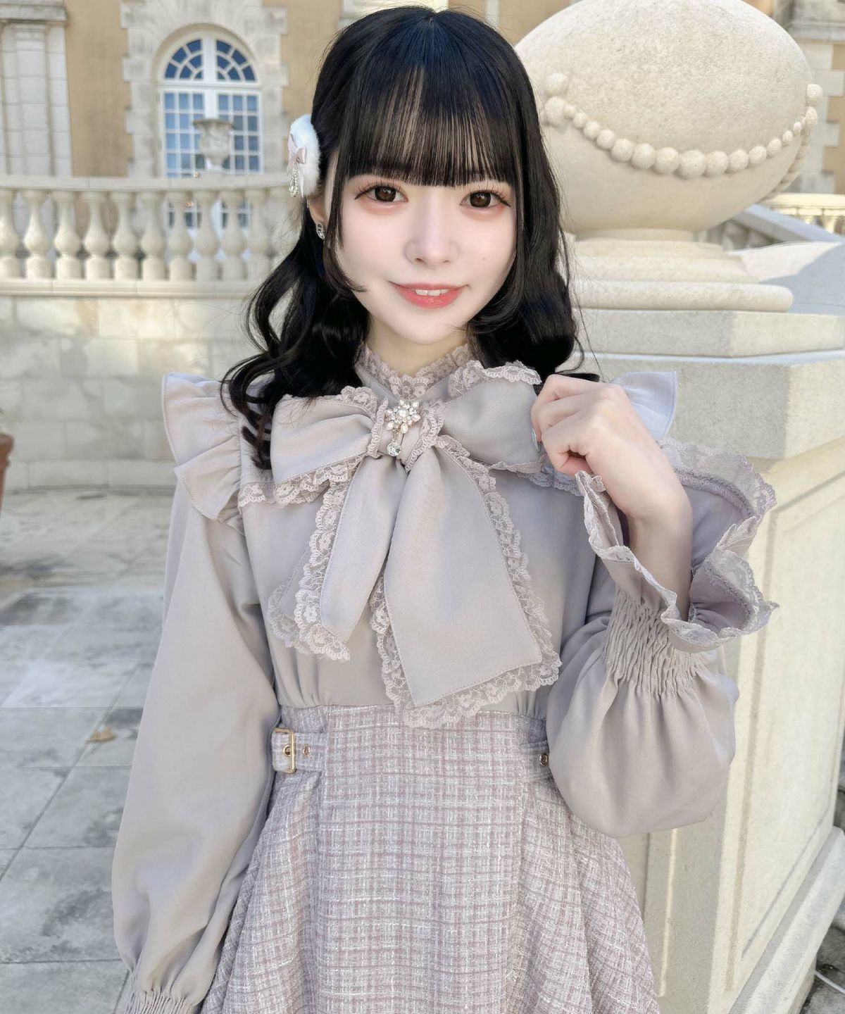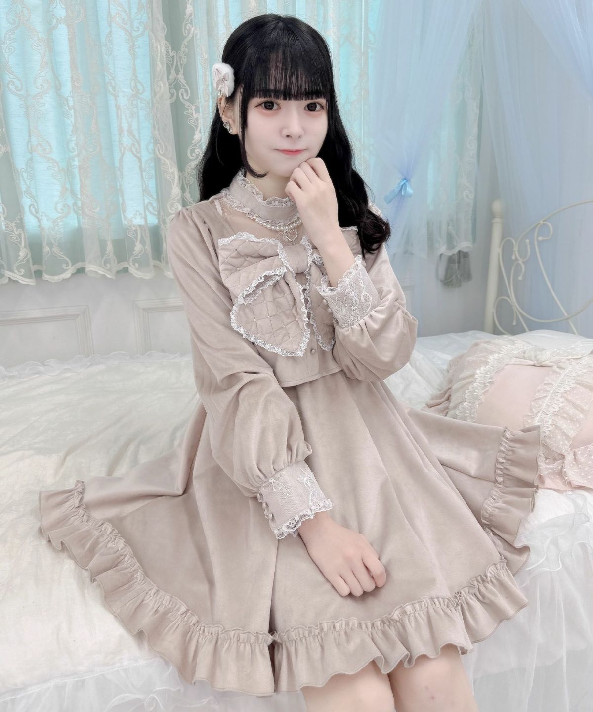 ロゴ入りネクタイ付きスリーブデザインワンピース