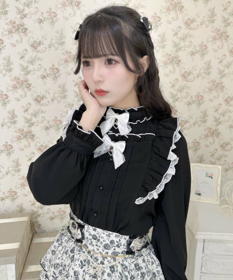 乙女心をくすぐるハートチャーム付きダブルリボンがついたブラウス♡ボリュームのあるフリルがシルエットをふんわりと魅せ、ガーリーな雰囲気を後押しします。魅惑なパープル、控えめながらに甘さのあるブラックとホワイトの3色展開です。