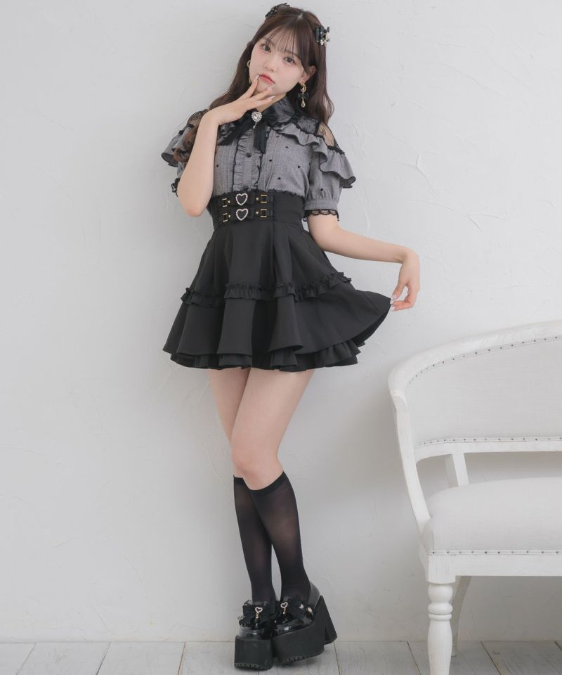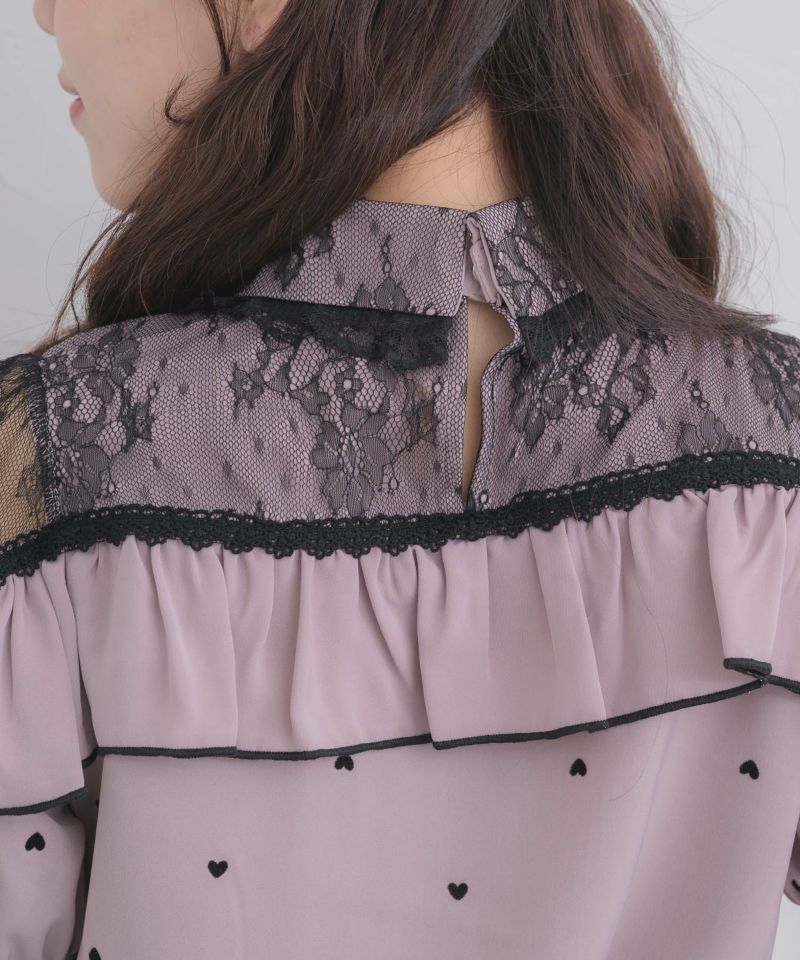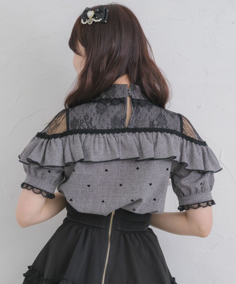 【30%off】 ハートフロッキー半袖フリルブラウス