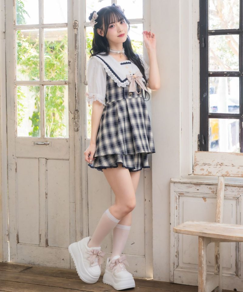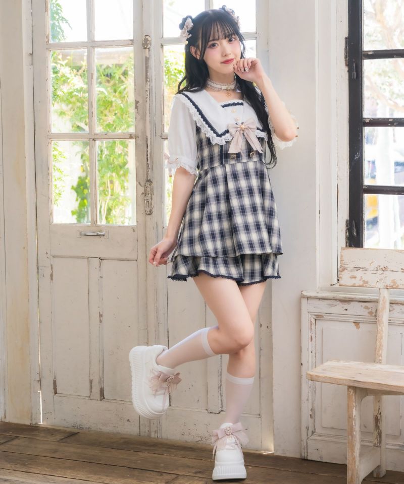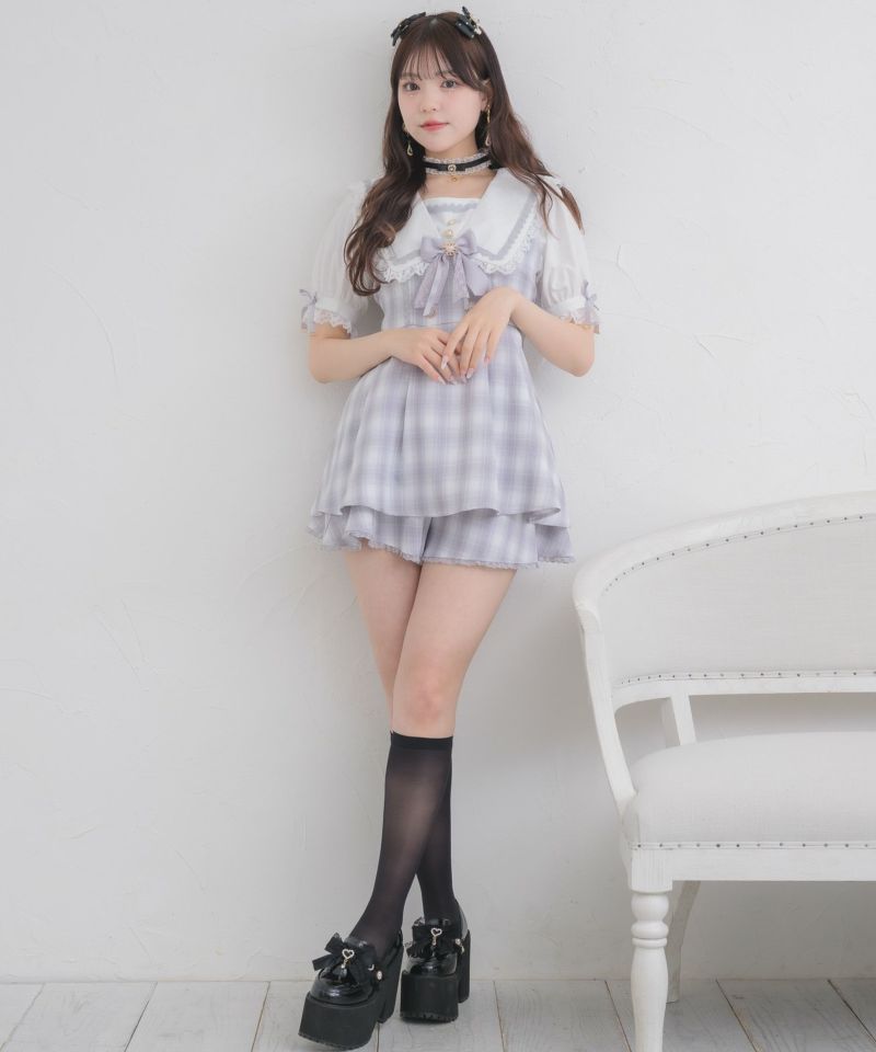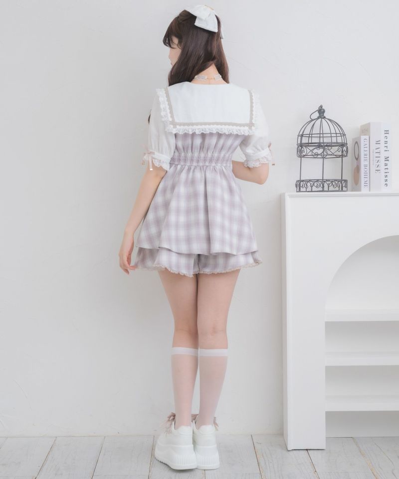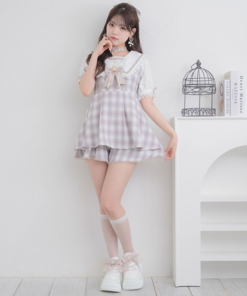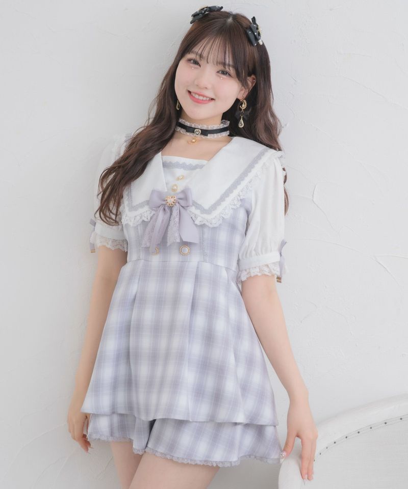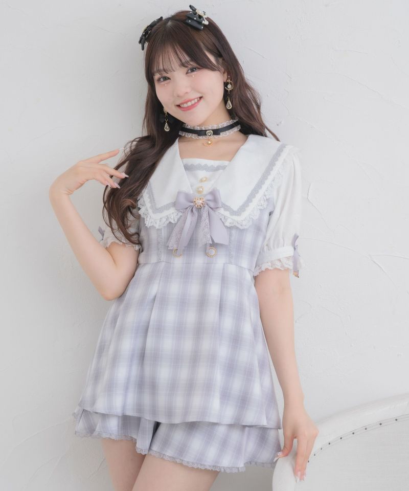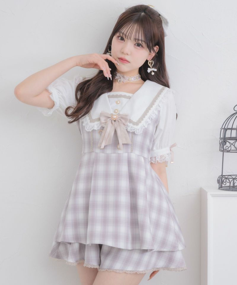 大きめセーラーが特徴♪二次元級の可愛らしさを感じるチュニックとパンツのセットアップです。お尻周りを隠せる着丈&パンツスタイルで安心感も◎ウエストにはタックを入れているので上半身がすっきりと見え、裾フレアがフェミニンな印象に導きます。 ※照明の関係で実際のお色味と若干異なる場合がございます。 ※表示のサイズ感と実物は若干異なる場合がございますので、予めご了承ください。 モデル身長ネイビー159cm/グレー・ピンク163cm