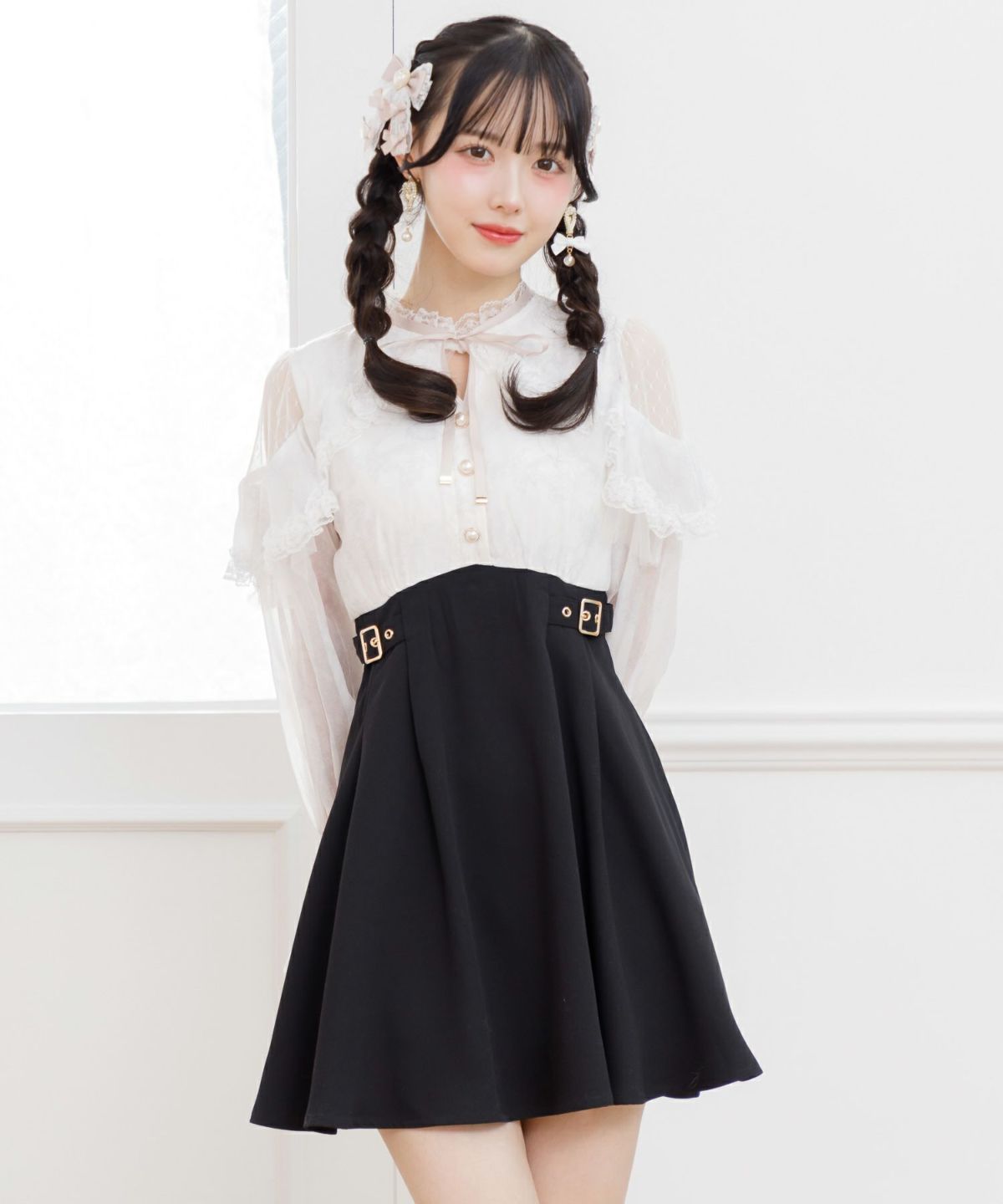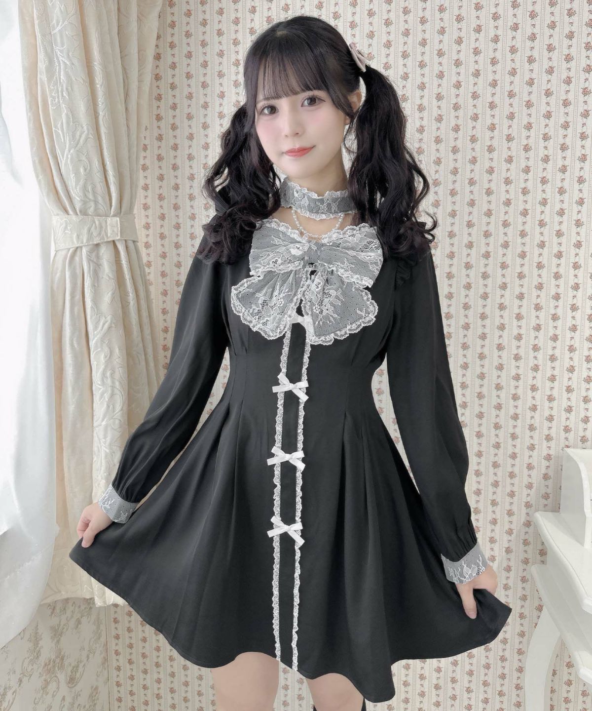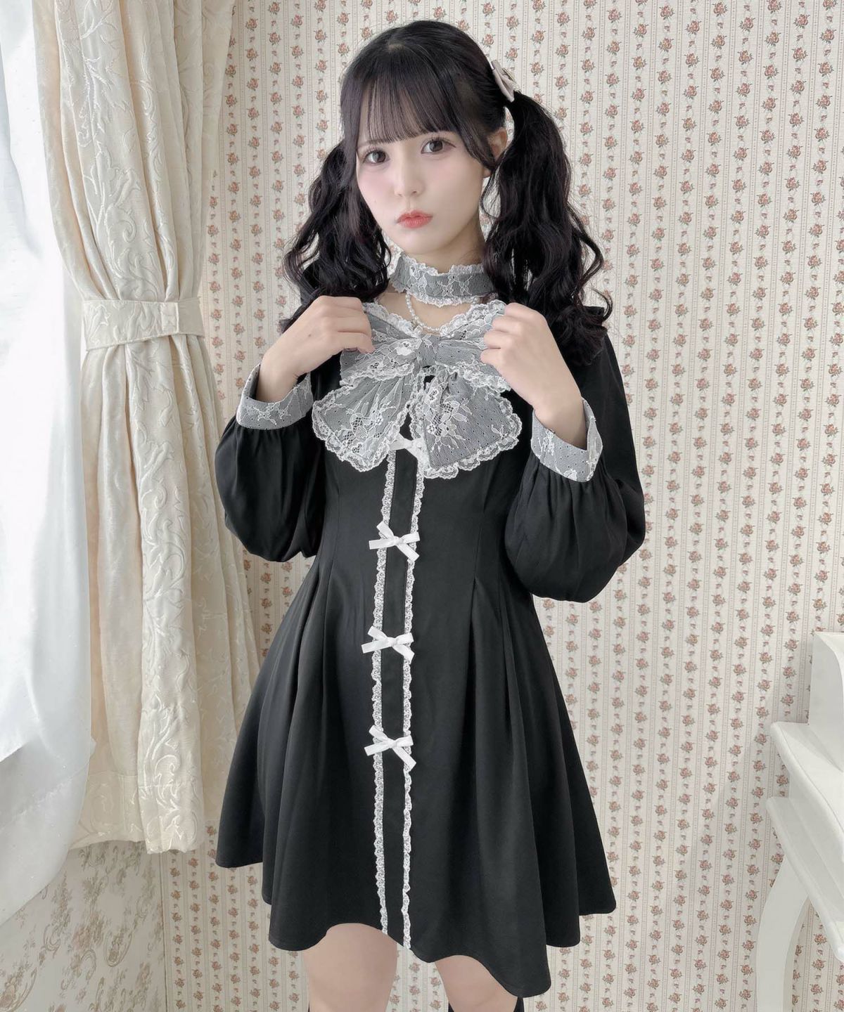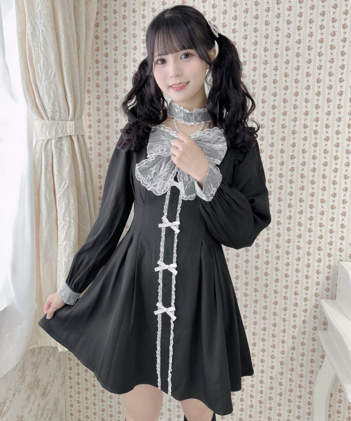 ロゴ入りネクタイ付きスリーブデザインワンピース