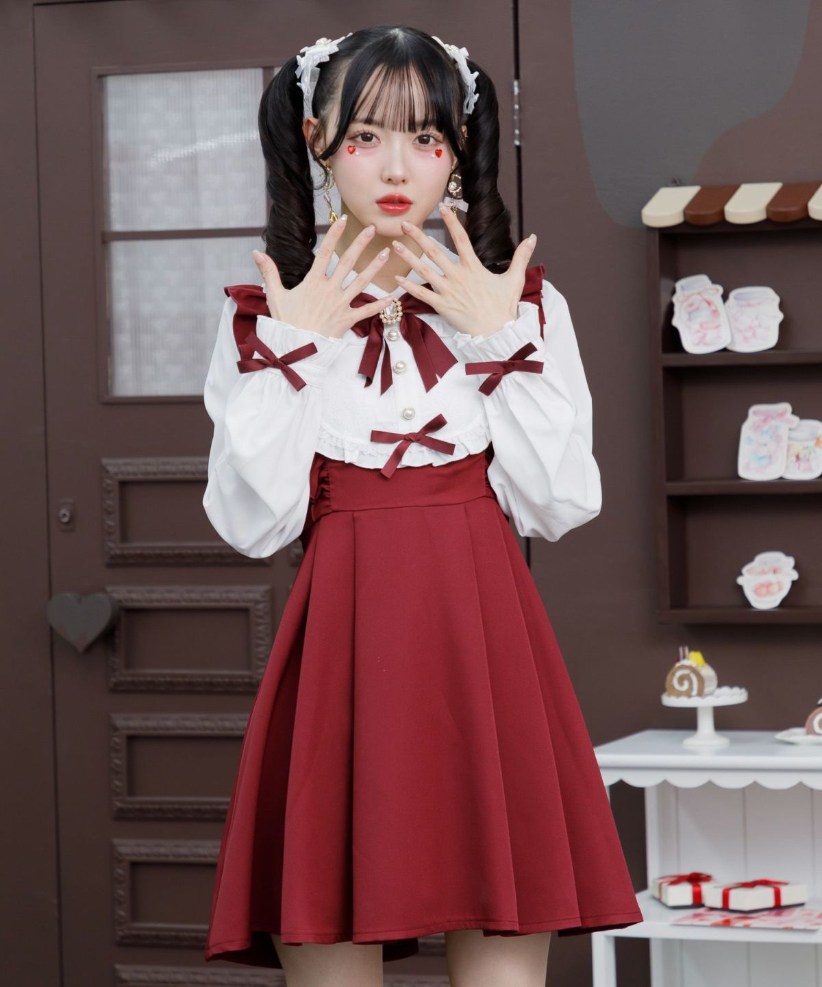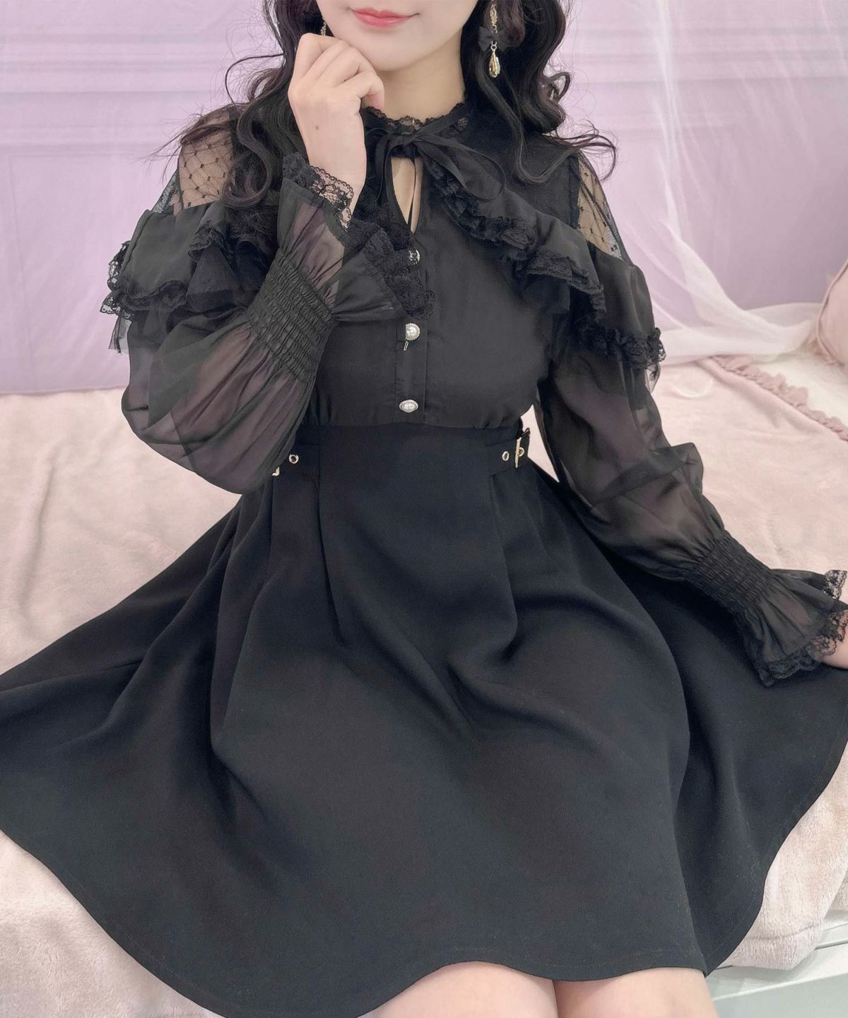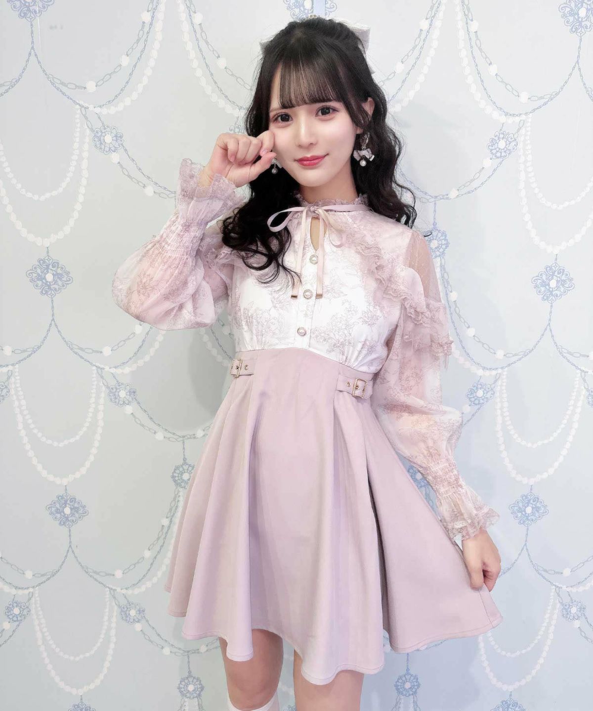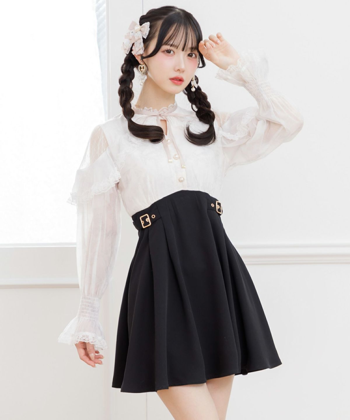 ロゴ入りネクタイ付きスリーブデザインワンピース