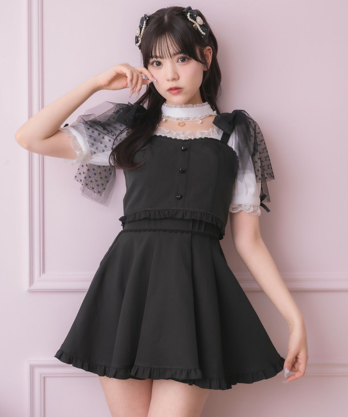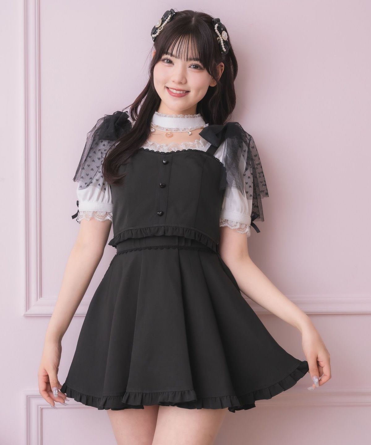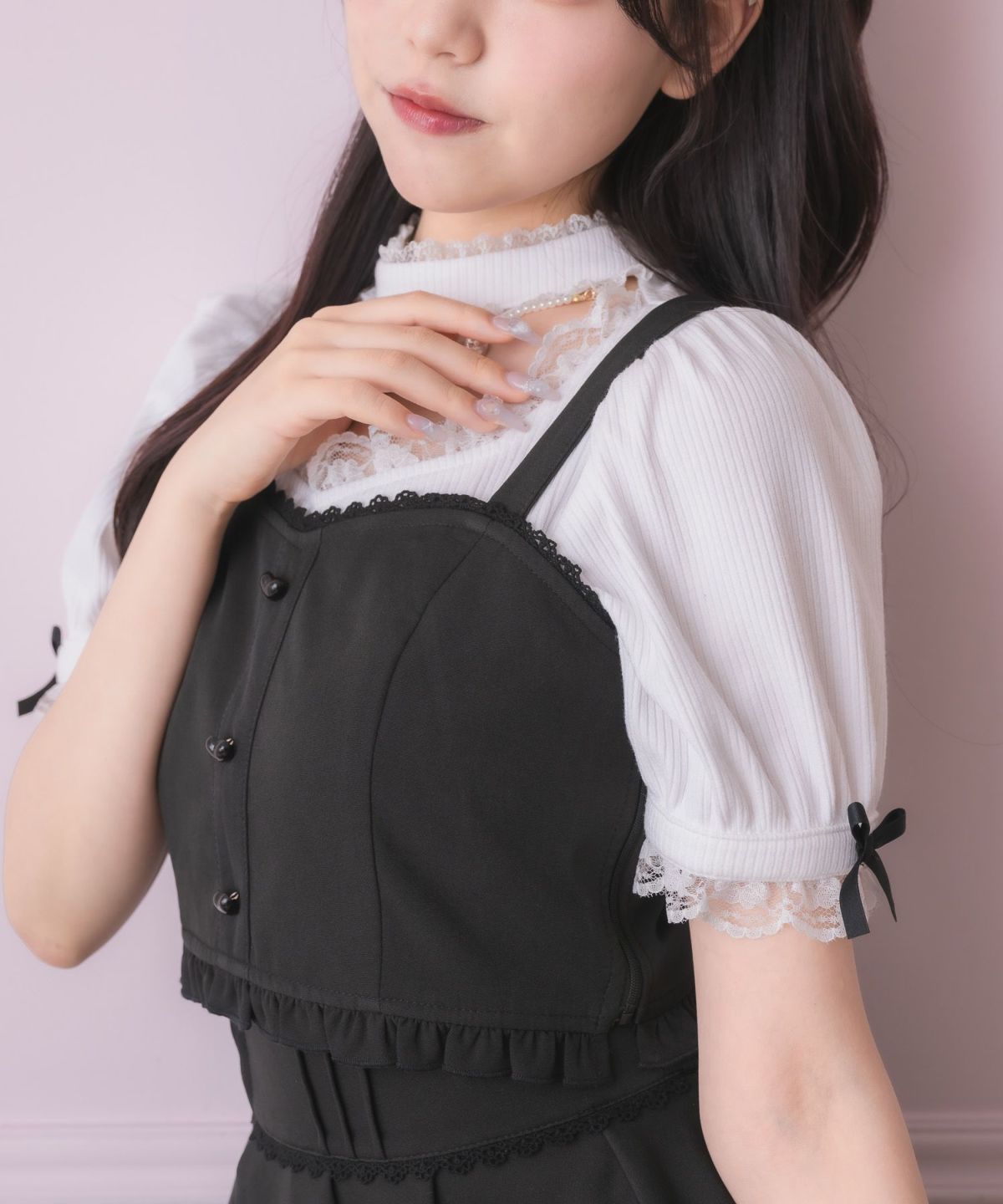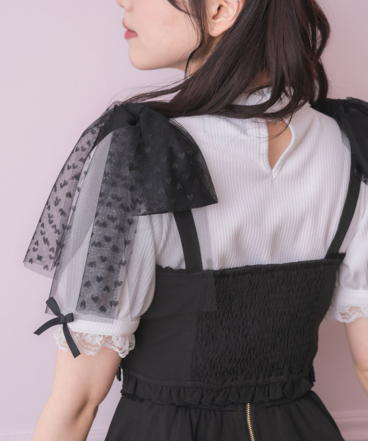 チュールリボンビスチェ×デコルテ開きトップスセット