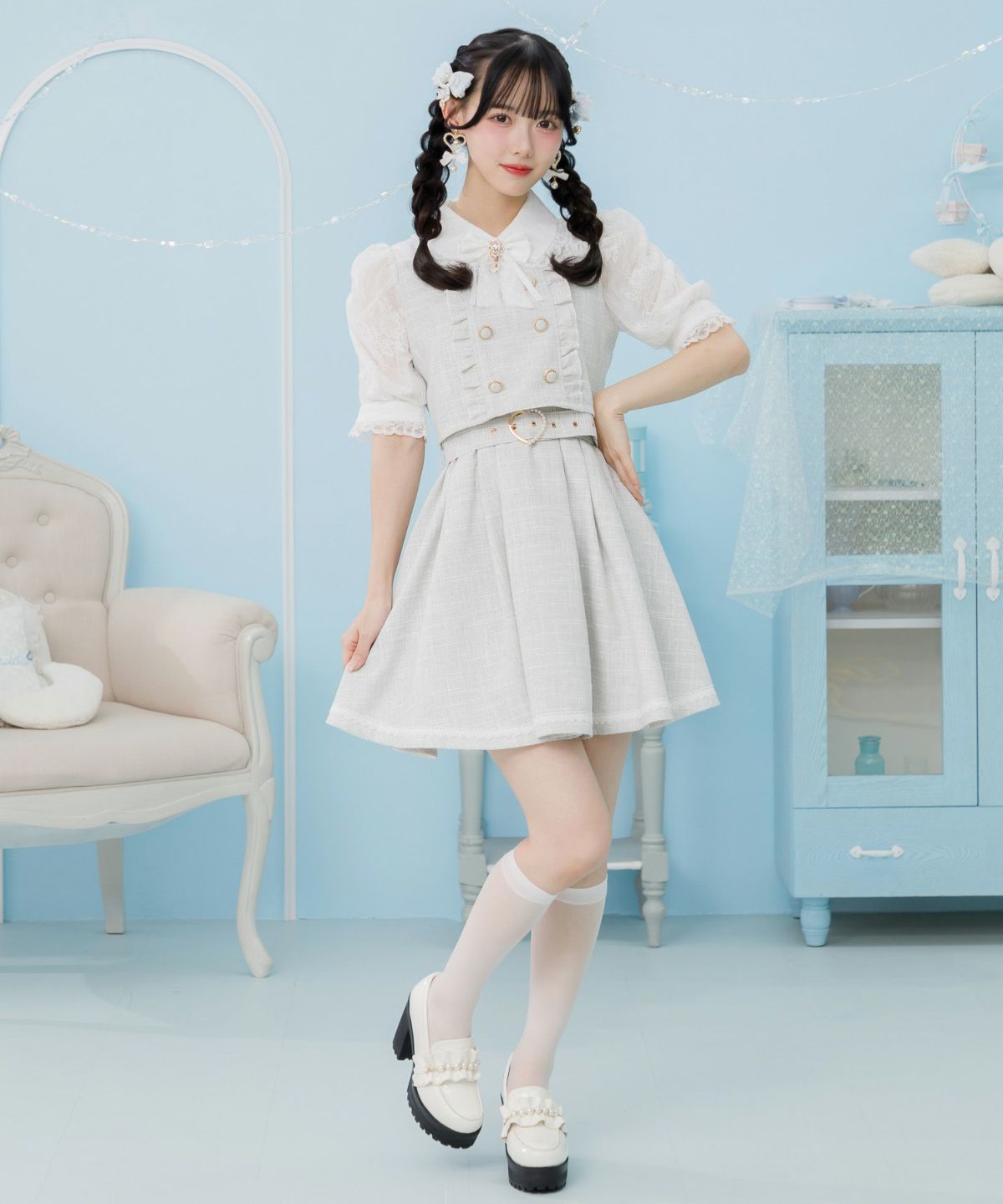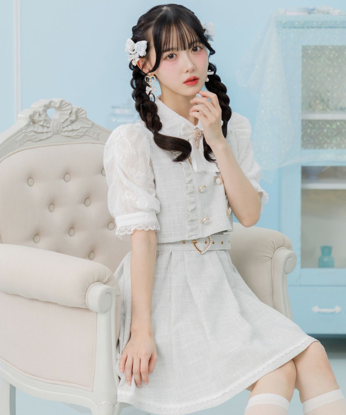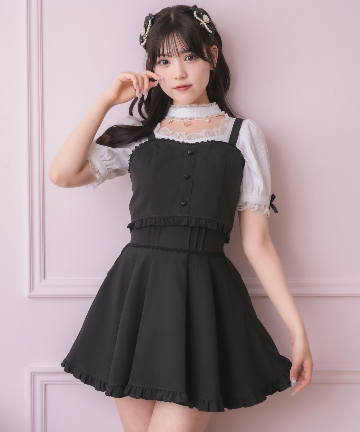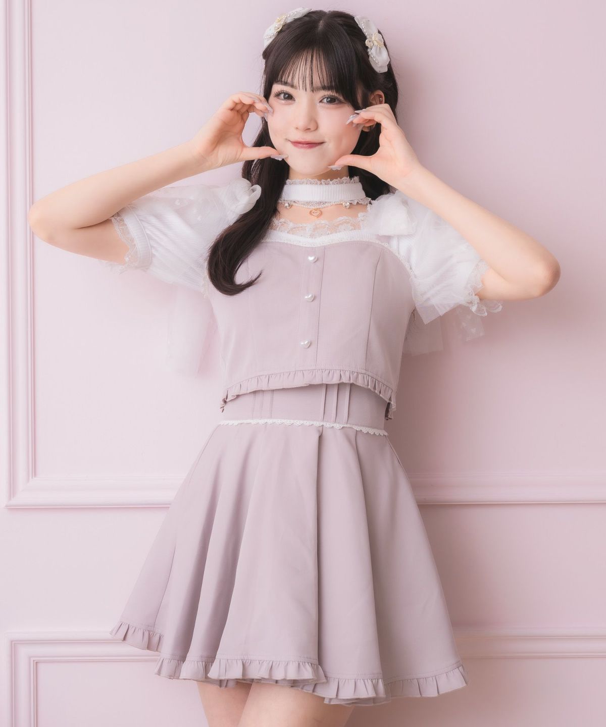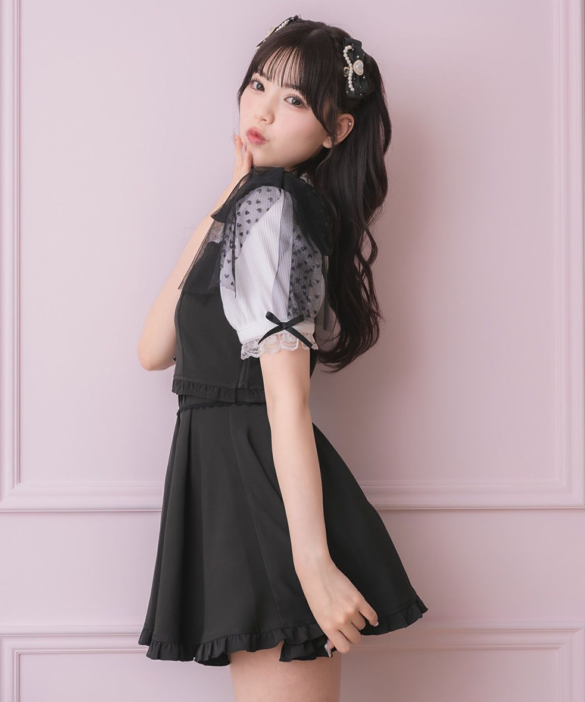 チュールリボンビスチェ×デコルテ開きトップスセット