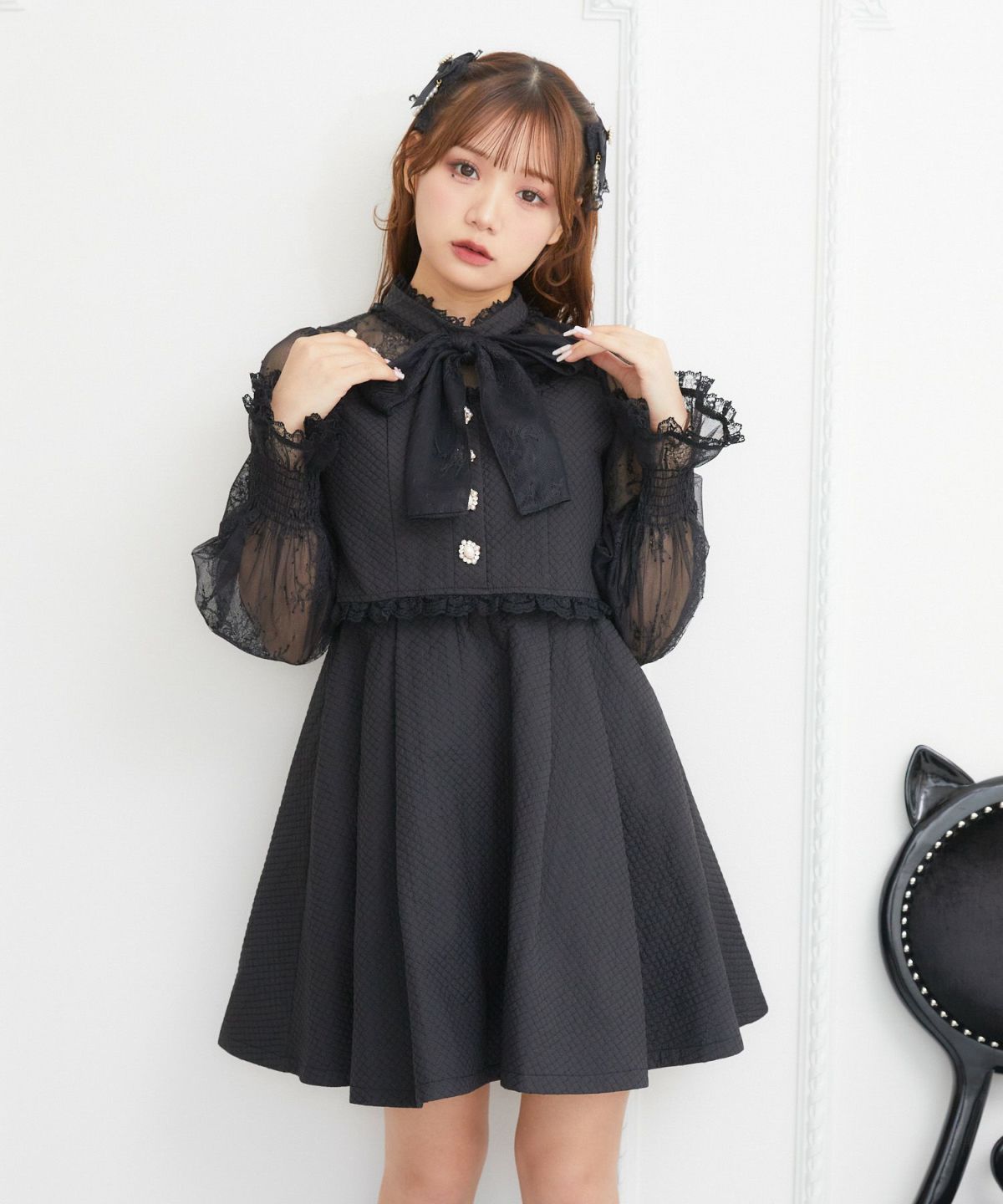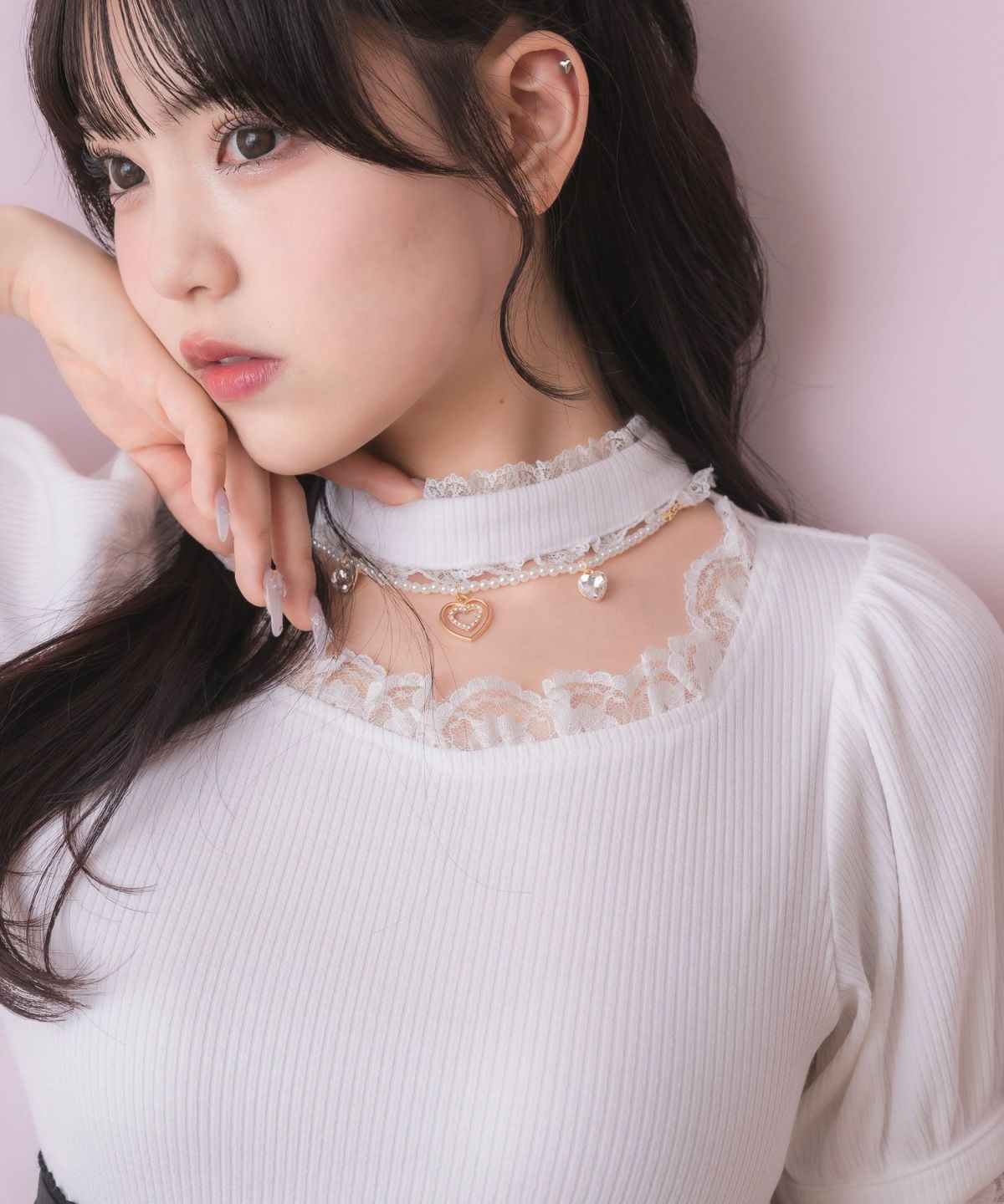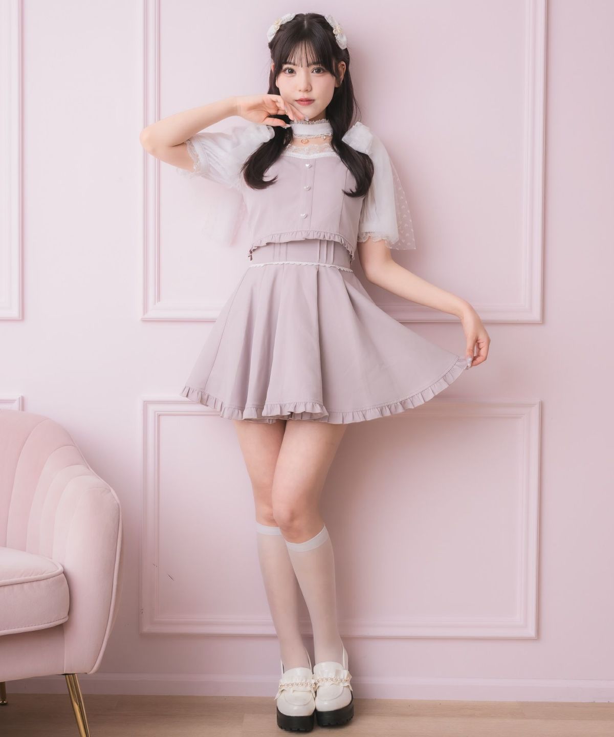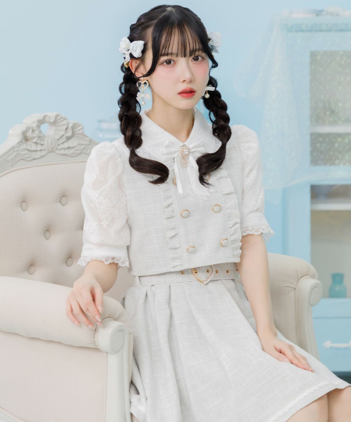 チュールリボンビスチェ×デコルテ開きトップスセット