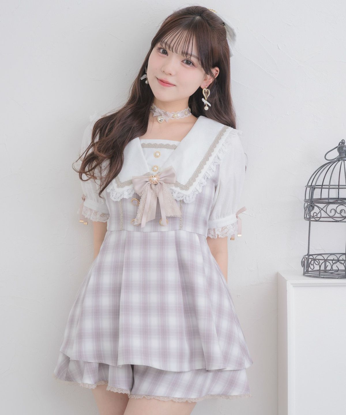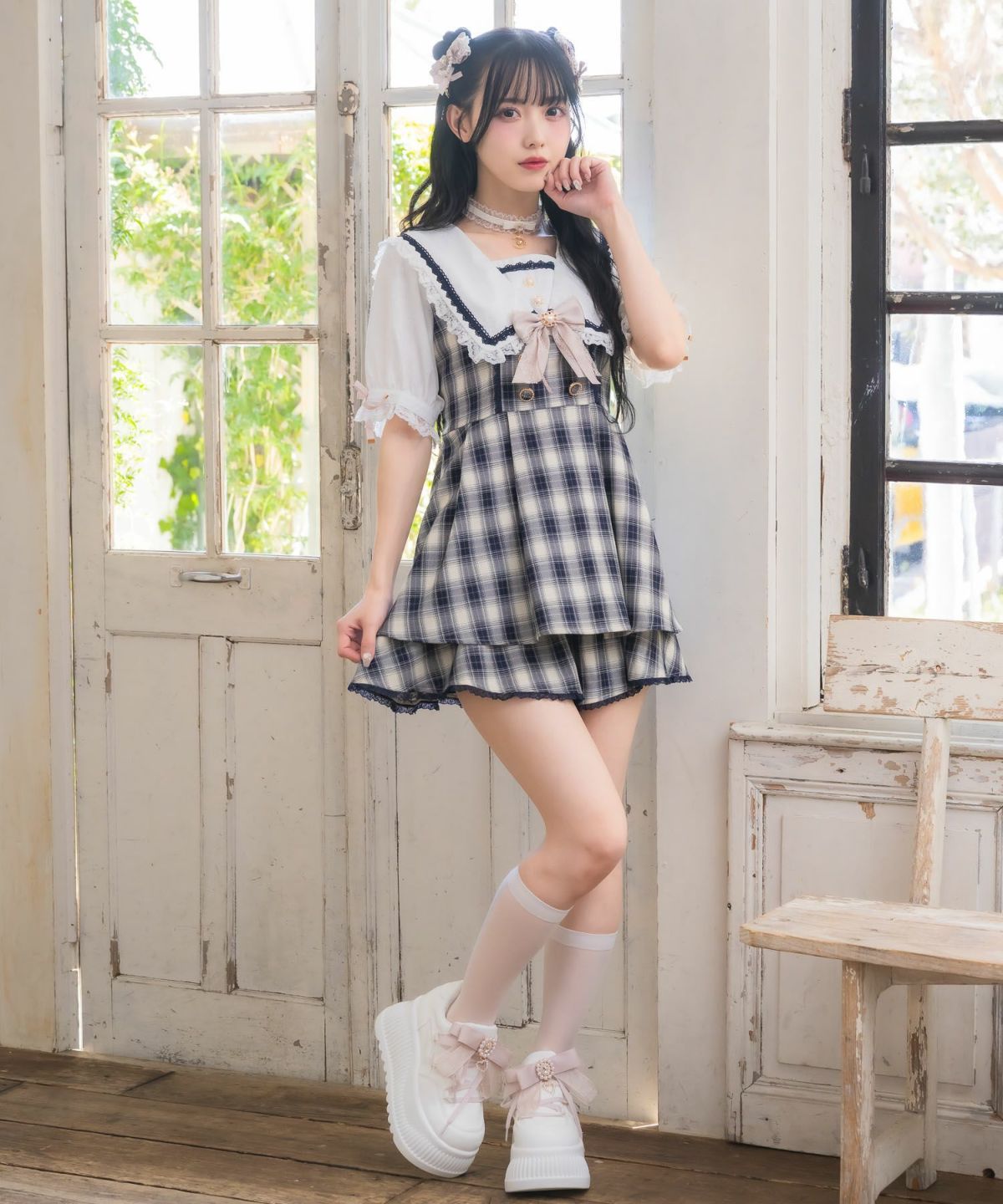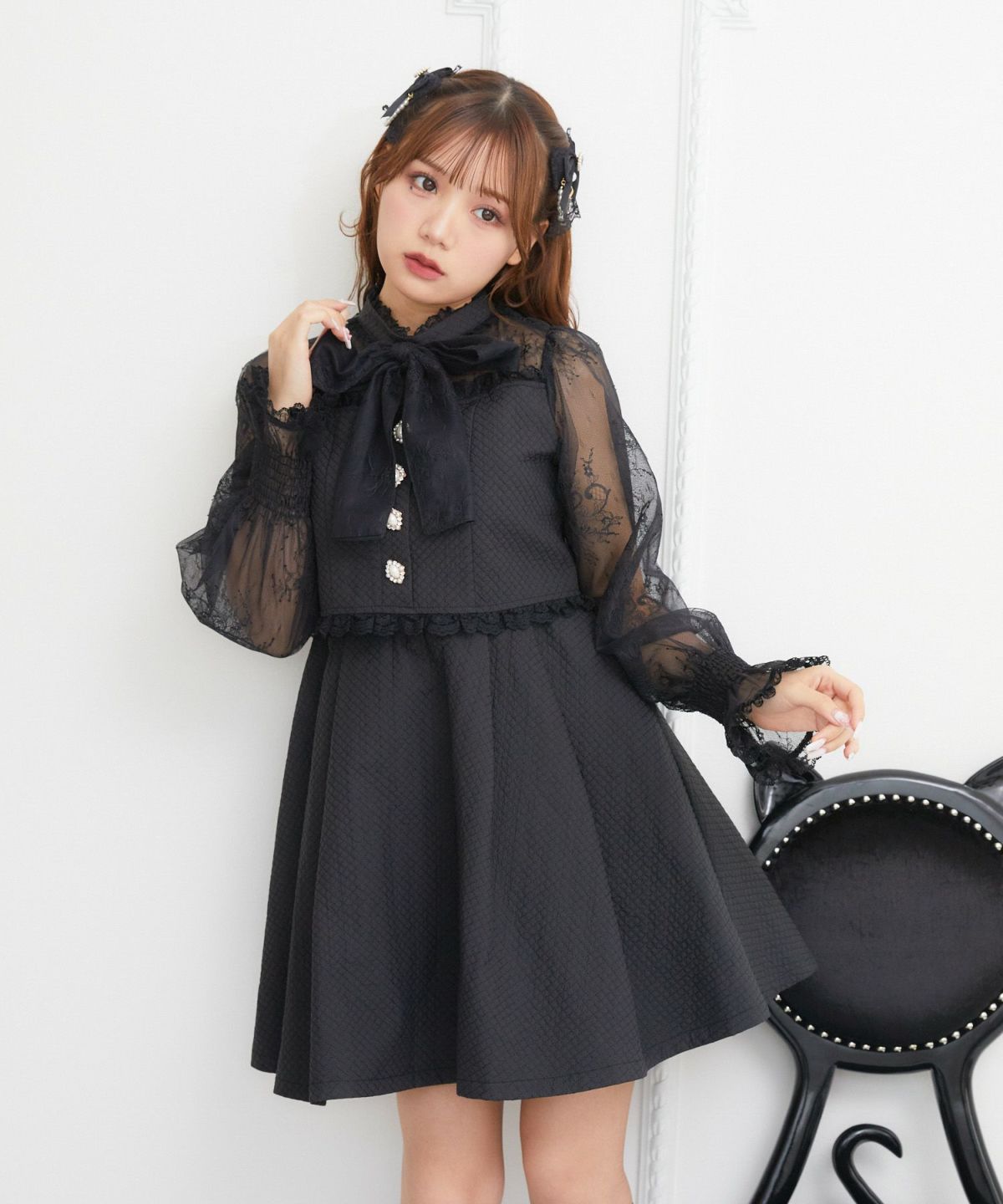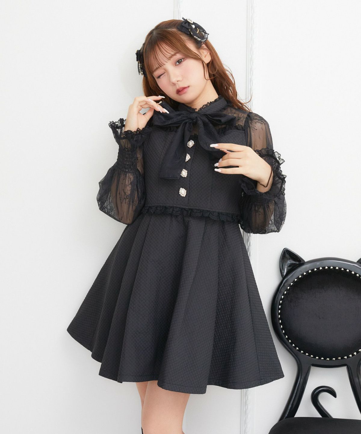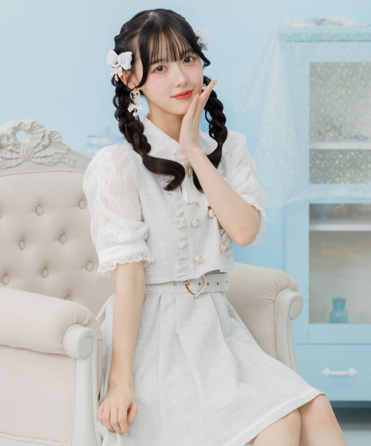 チュールリボンビスチェ×デコルテ開きトップスセット
