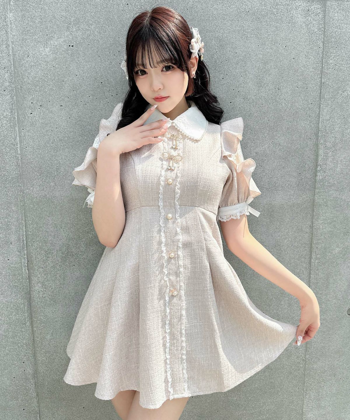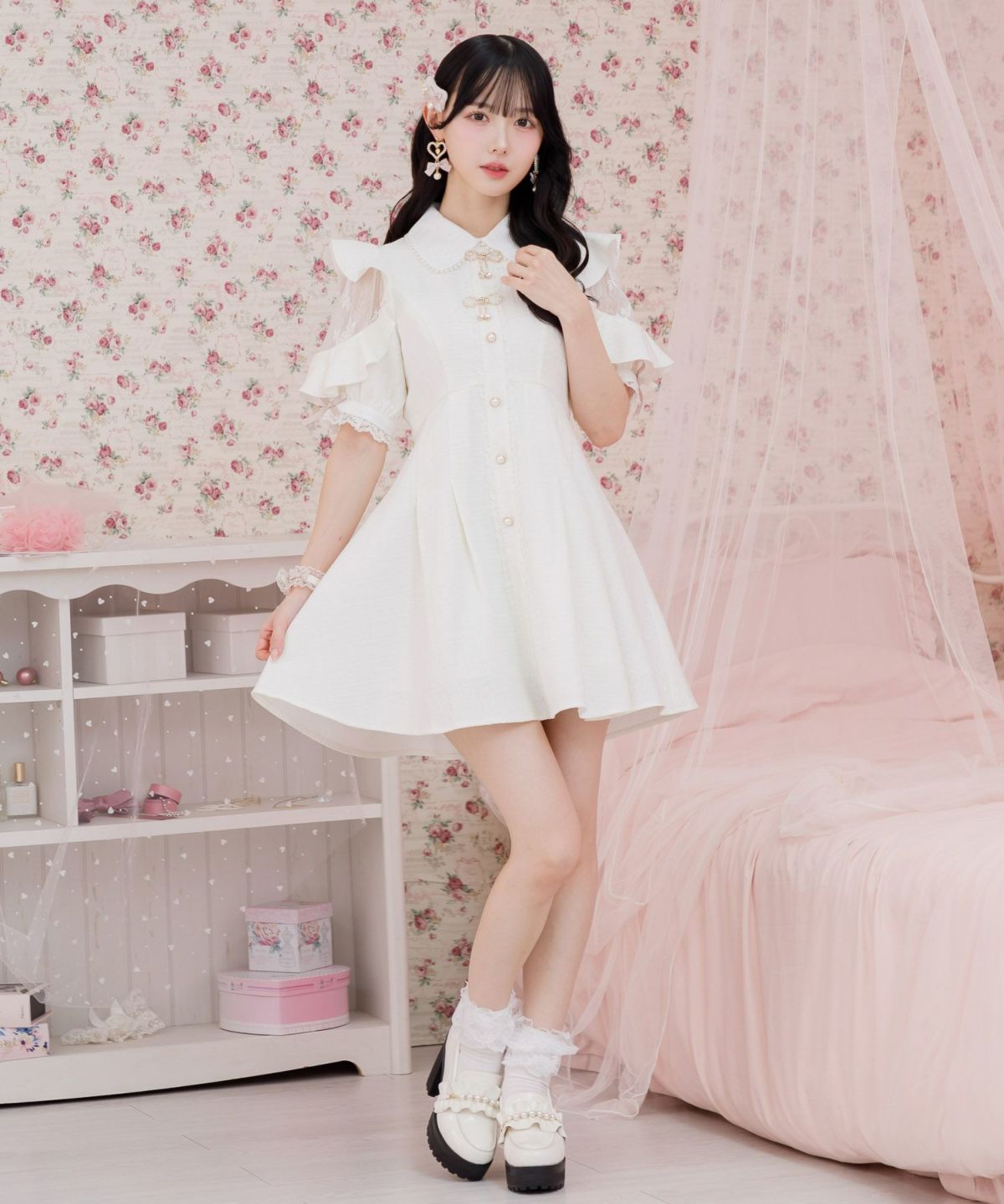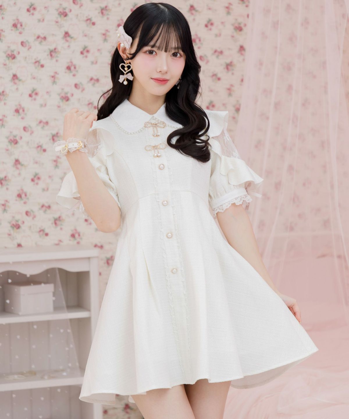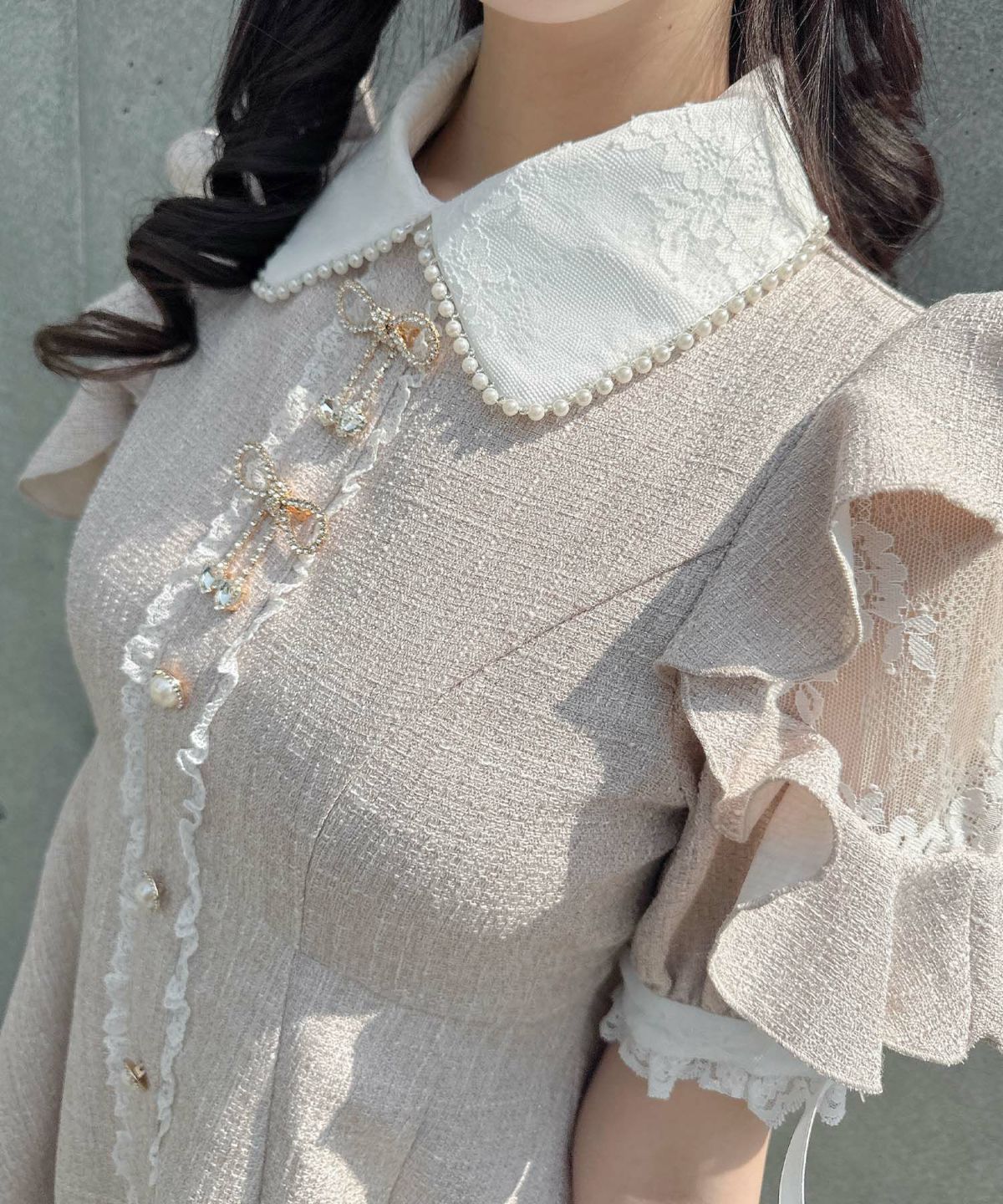 チュールリボンビスチェ×デコルテ開きトップスセット