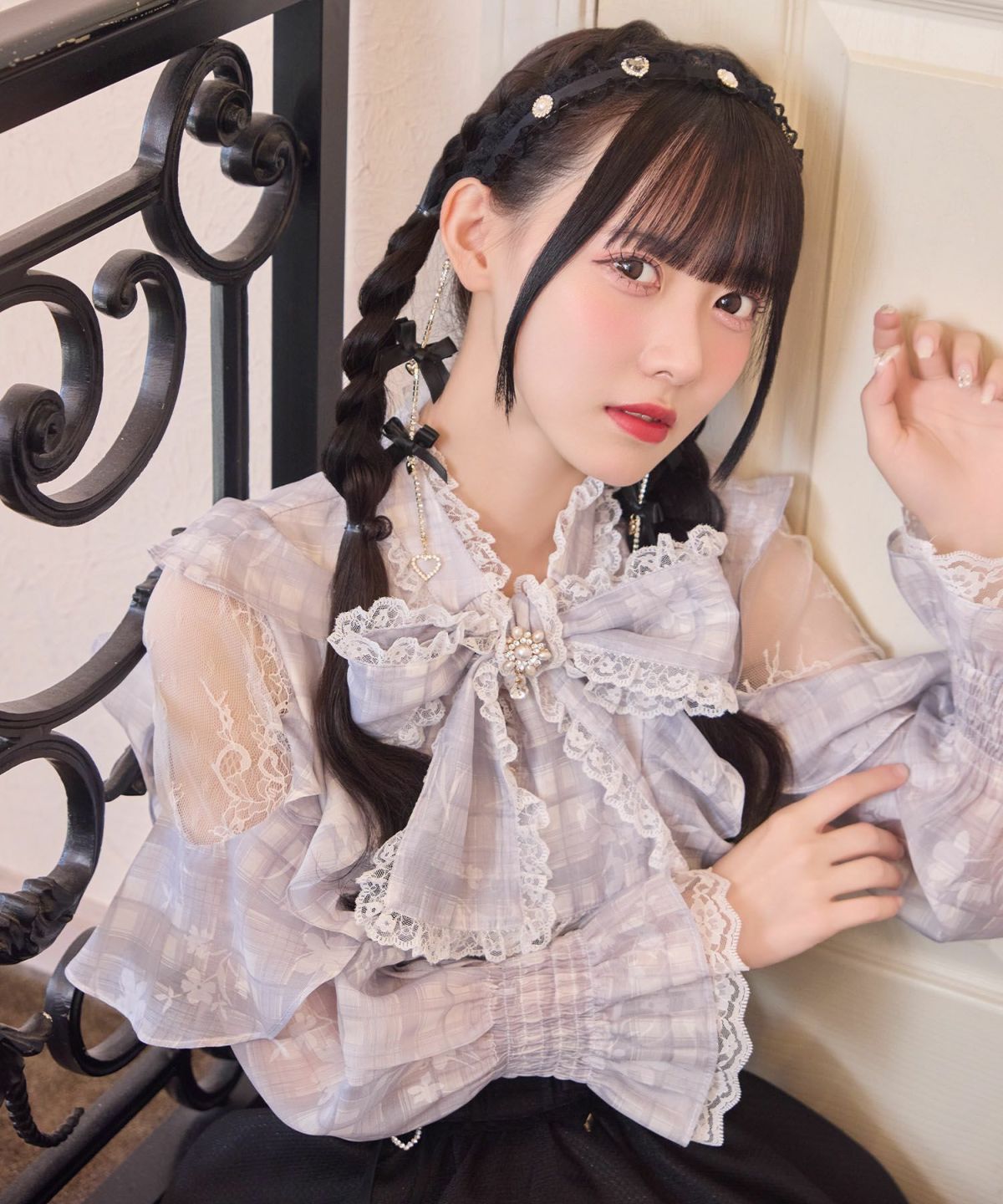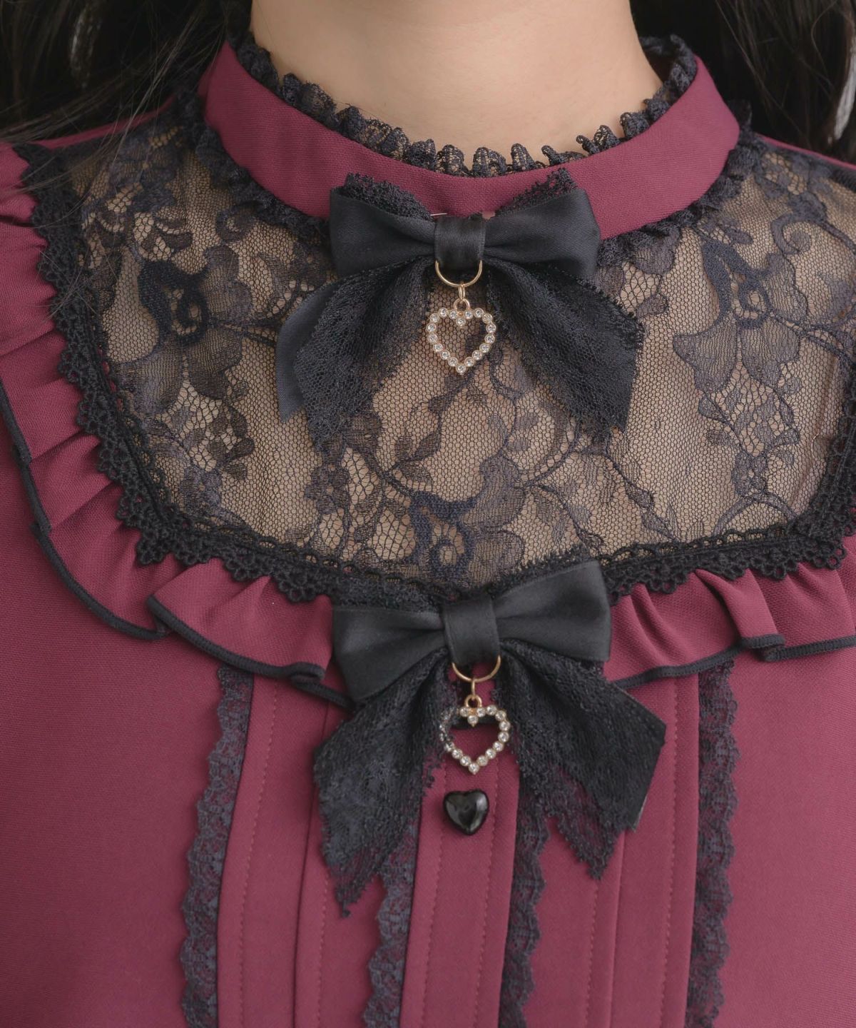 ダブルリボン配色レースブラウス