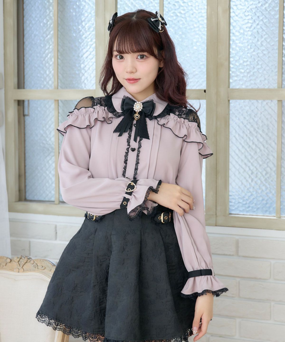 ボウタイフリルブラウス