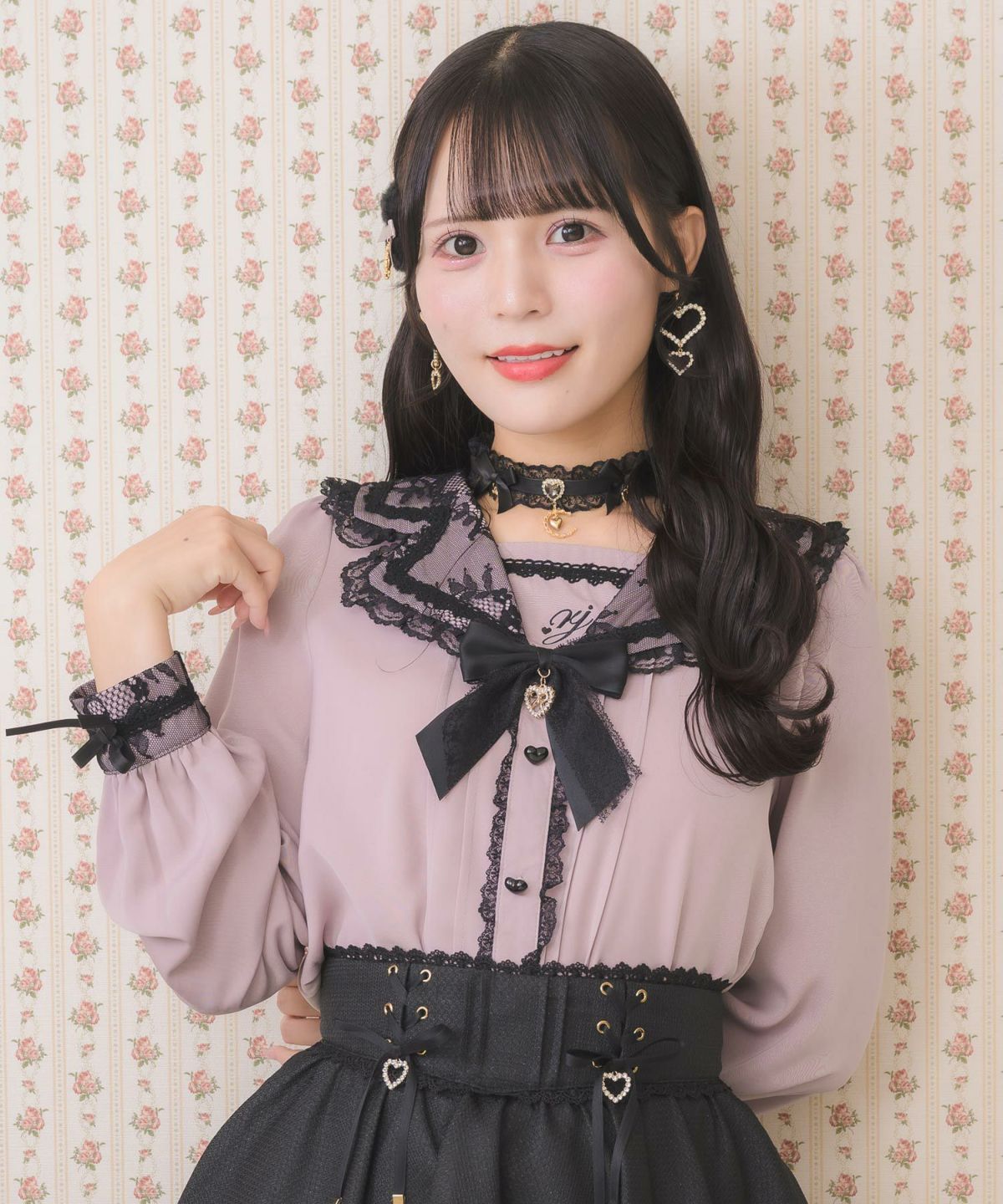 ハートバックルシアードットブラウス