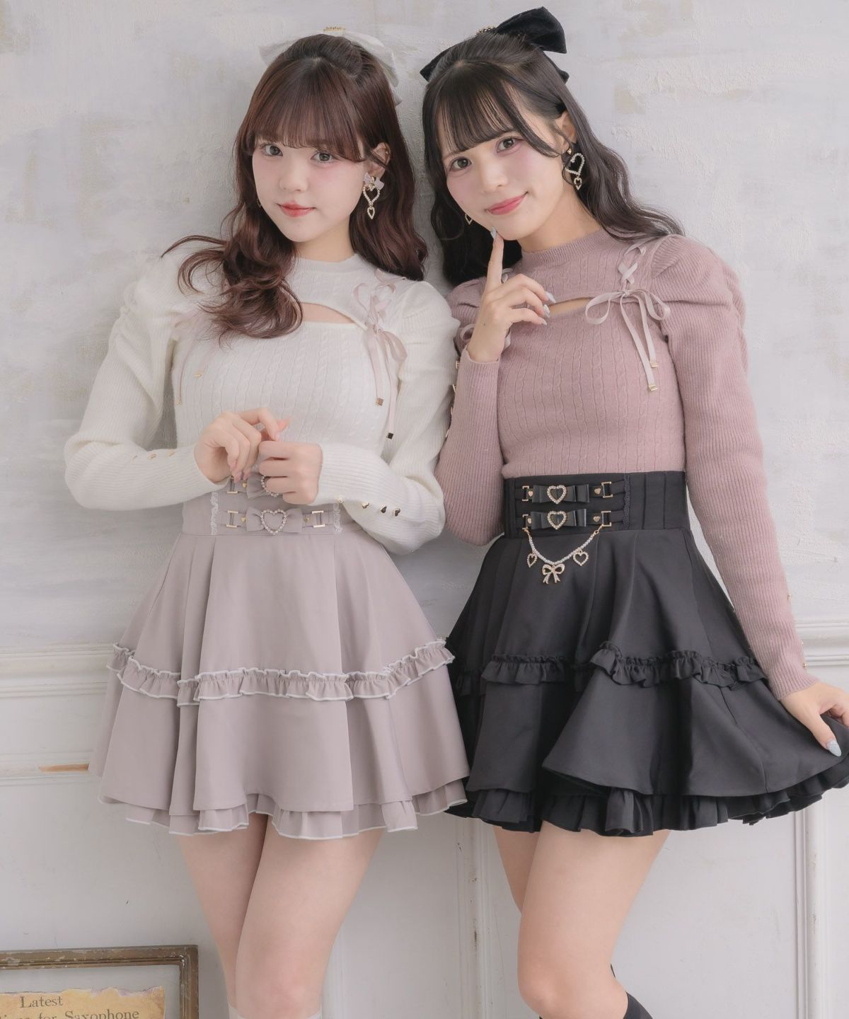 チュールリボンビスチェ×デコルテ開きトップスセット