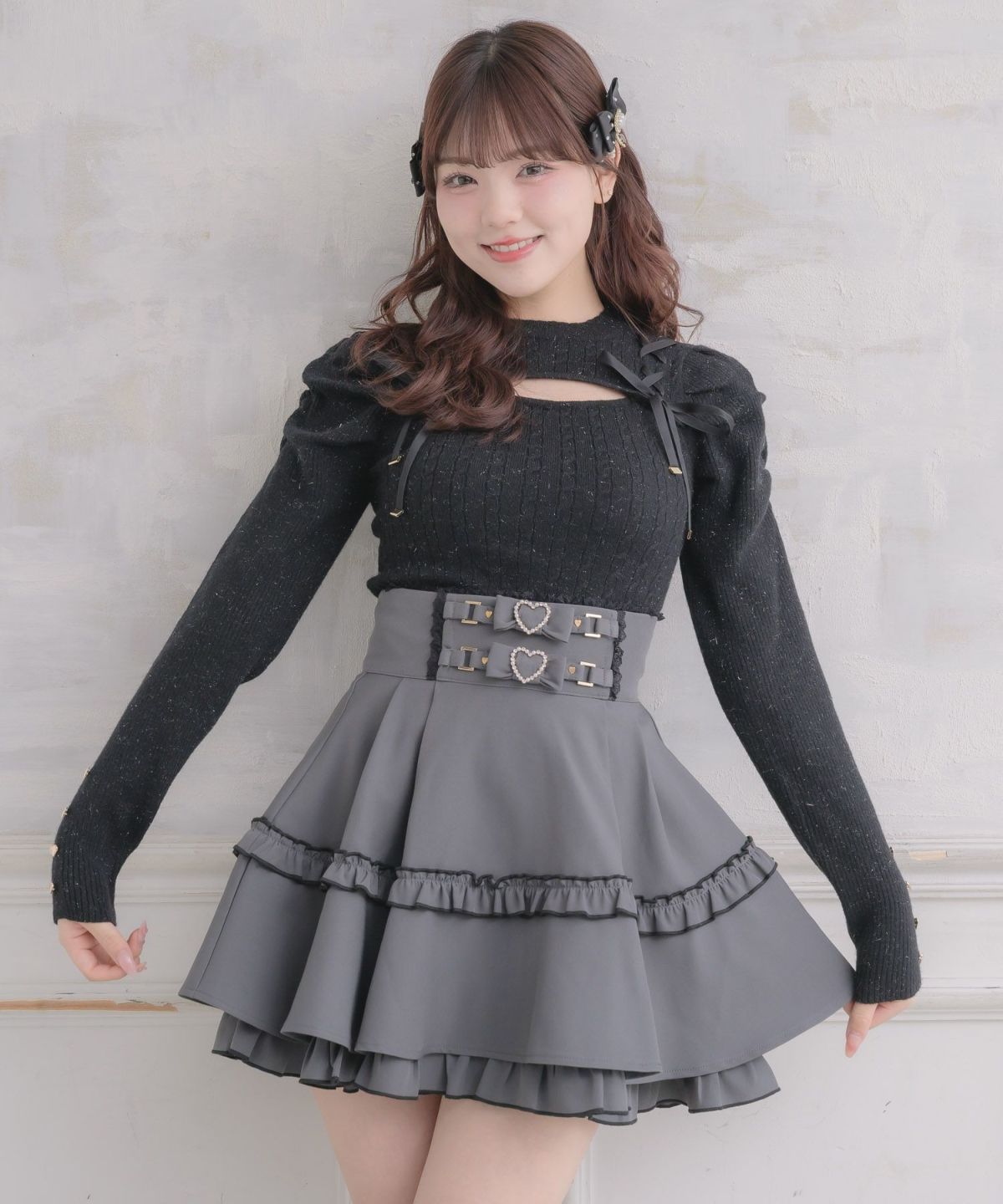 リボンチェーン付きボレロドッキングニット