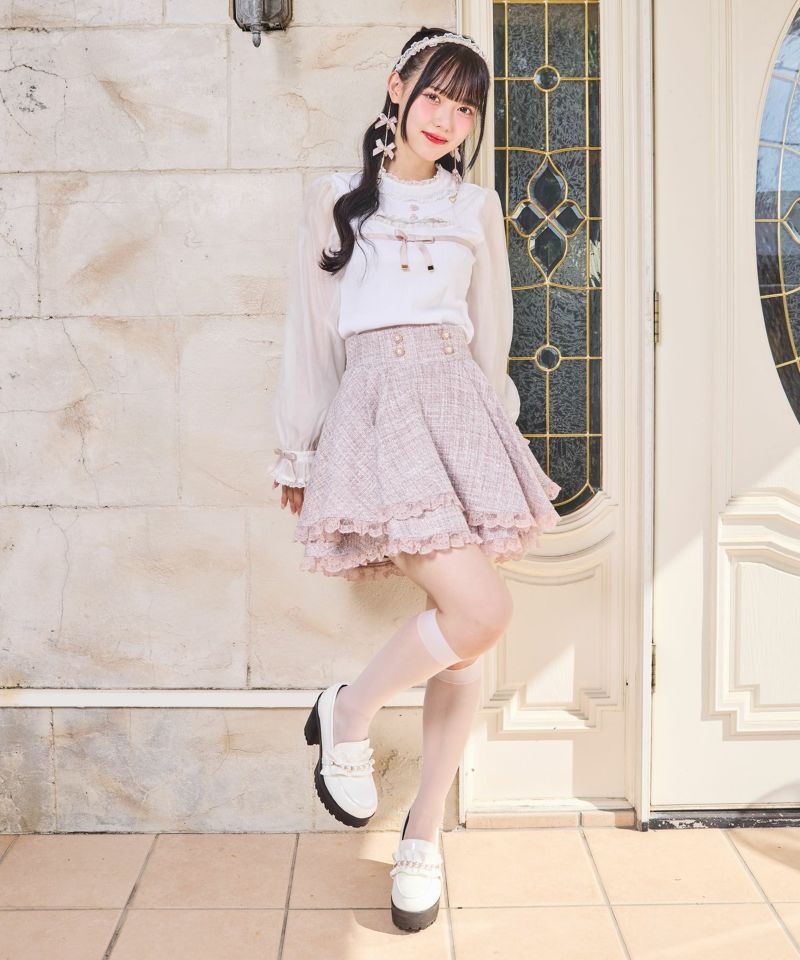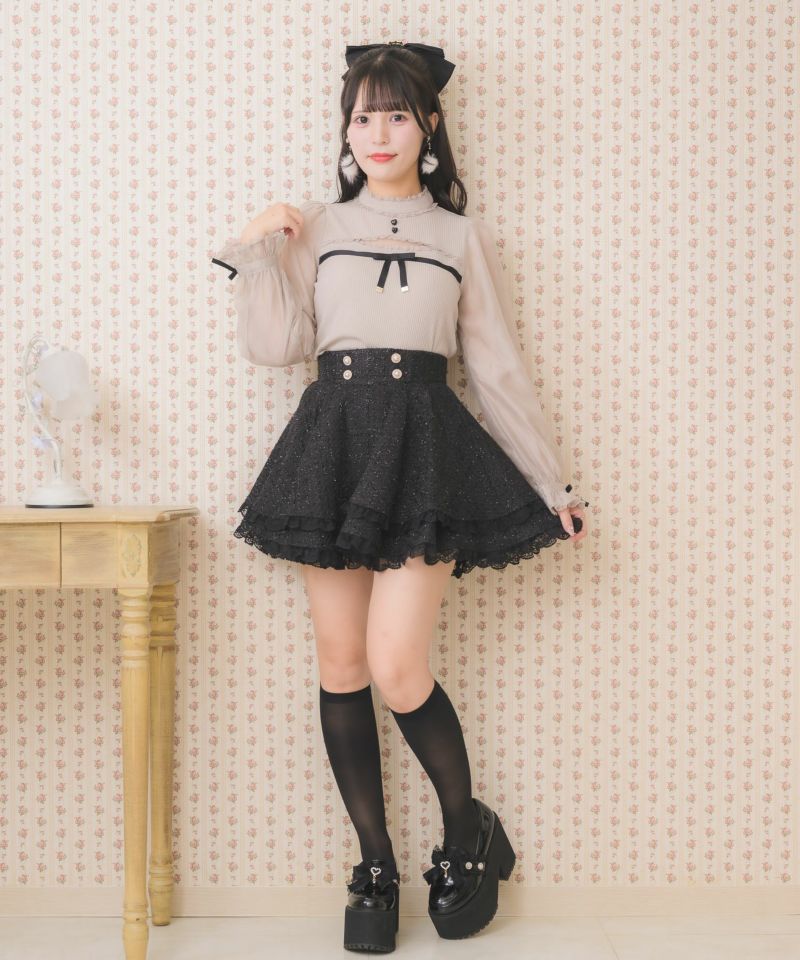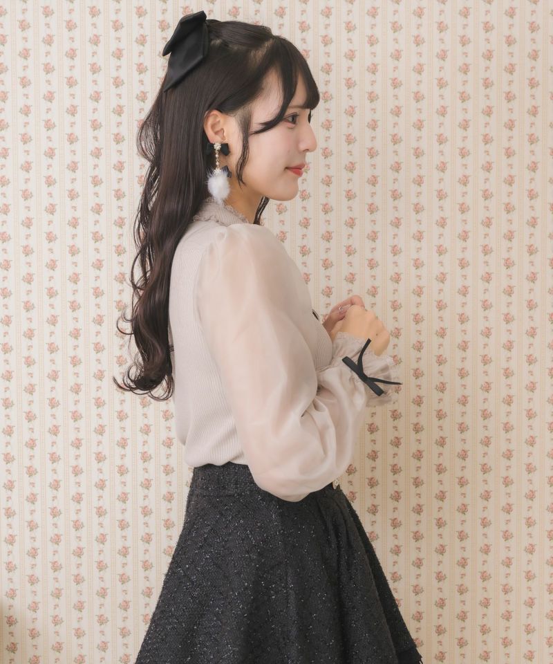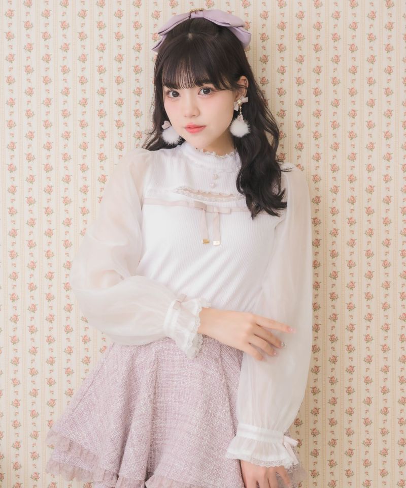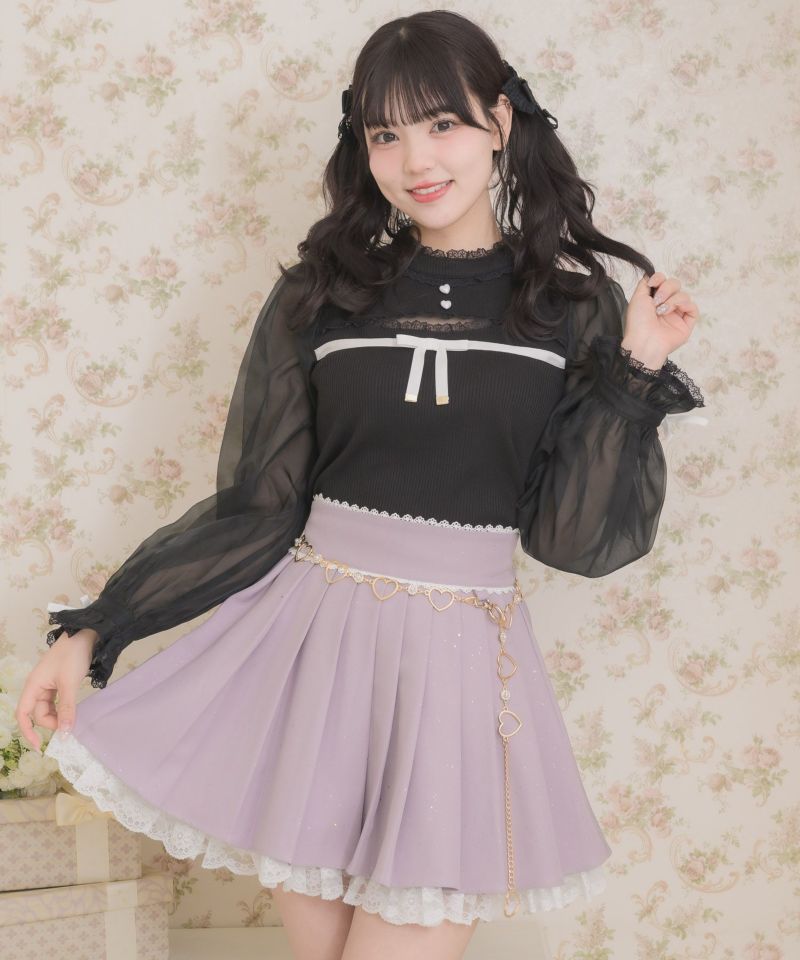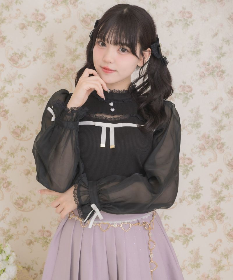 季節の変わり目&インナーとしても合わせやすい薄手のトップス♡控えめな肌見せとシアーの透け感がマッチしておしゃれ上級者に磨きをかけます。テープリボンがアクセントになり、バランスよくメリハリをプラス◎コロンとしたハート釦で甘いニュアンスを加速させます。 モデル身長ブラック・ホワイト163cm/ピンク162cm