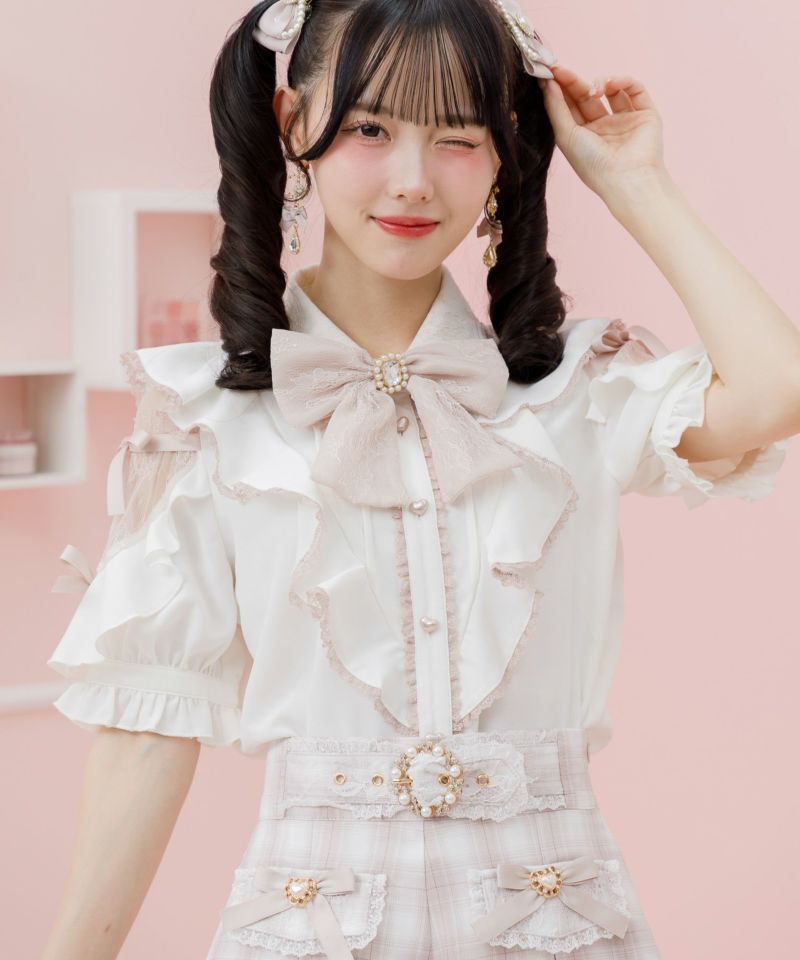 細かなディテールに注目♡視線を釘付けするショルダーコンシャスなデザインと、上品可愛いレース使いが周りとの差をつけます。ハート釦で甘さ強め◎カラバリには人気のカラーをご用意、どの色もコーデに合わせやすいマストバイなアイテムです。