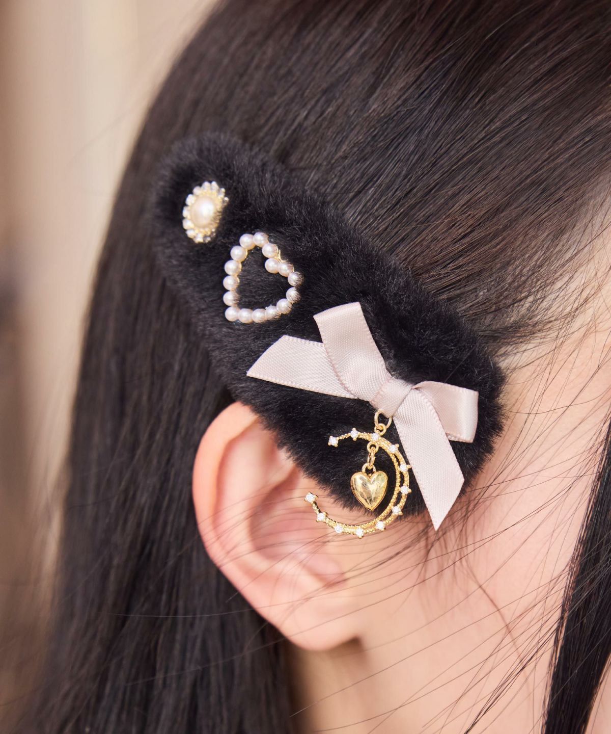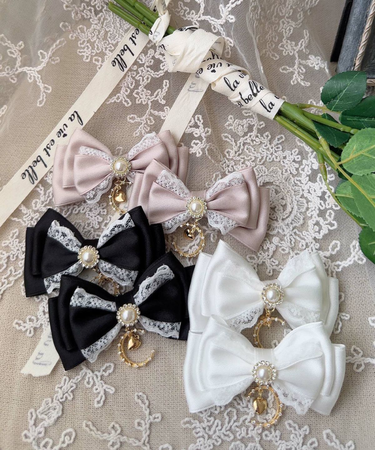 ムーンチャームレイヤードリボンクリップセット