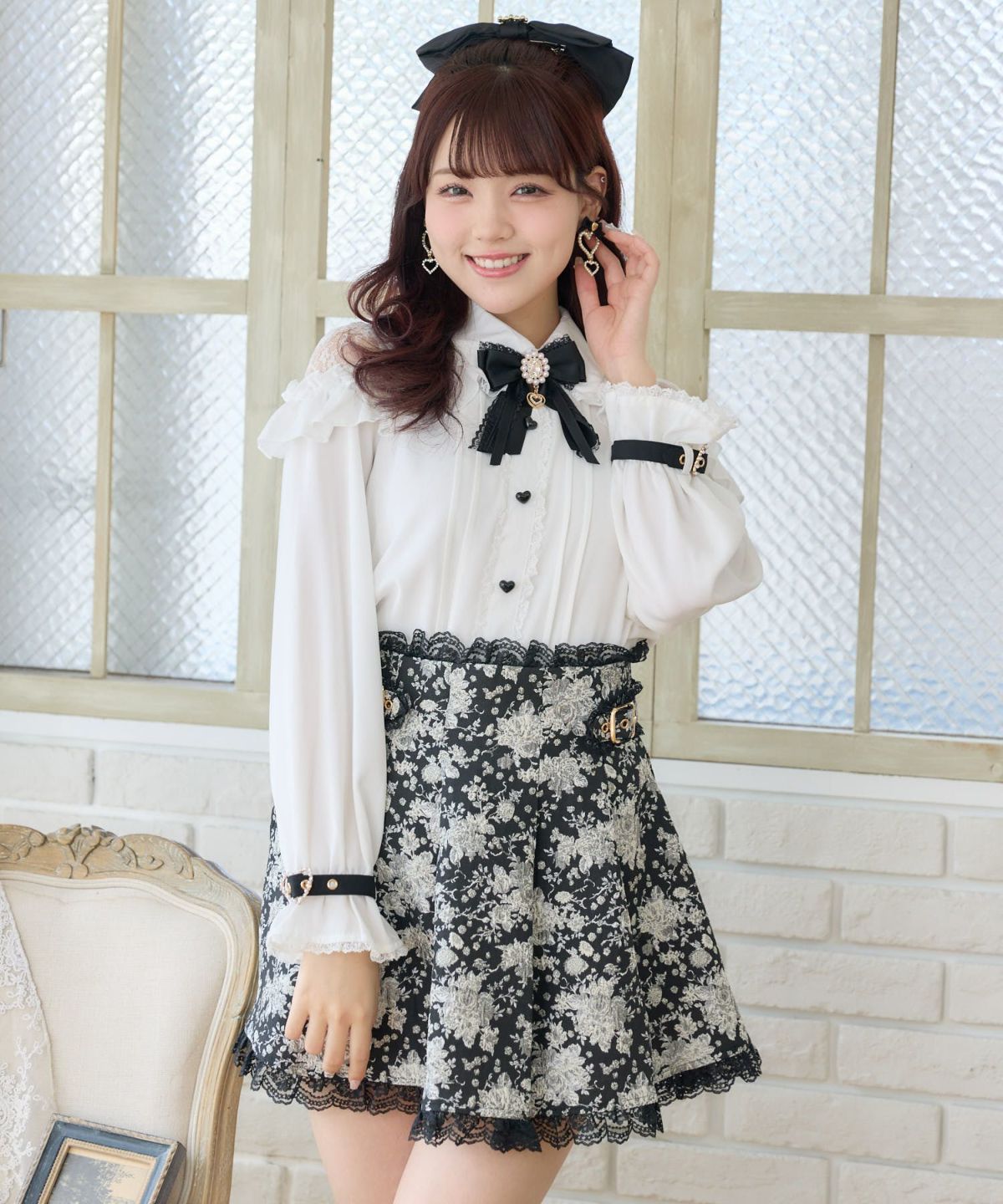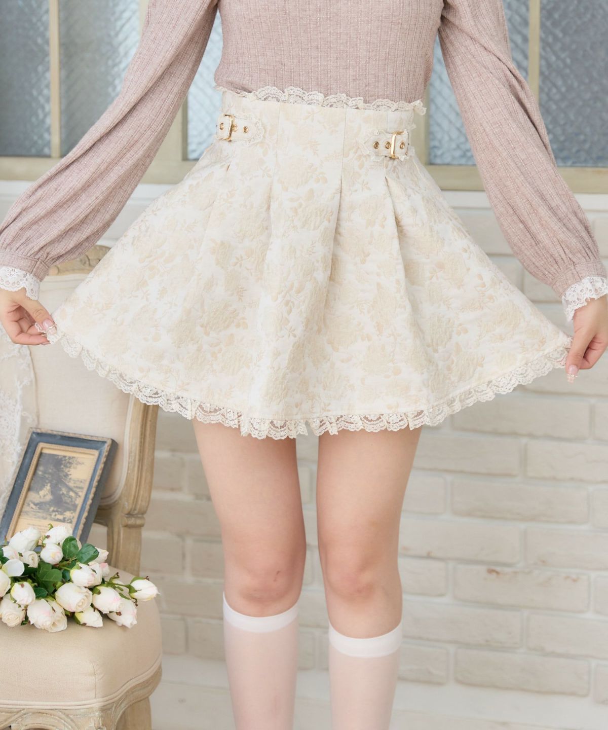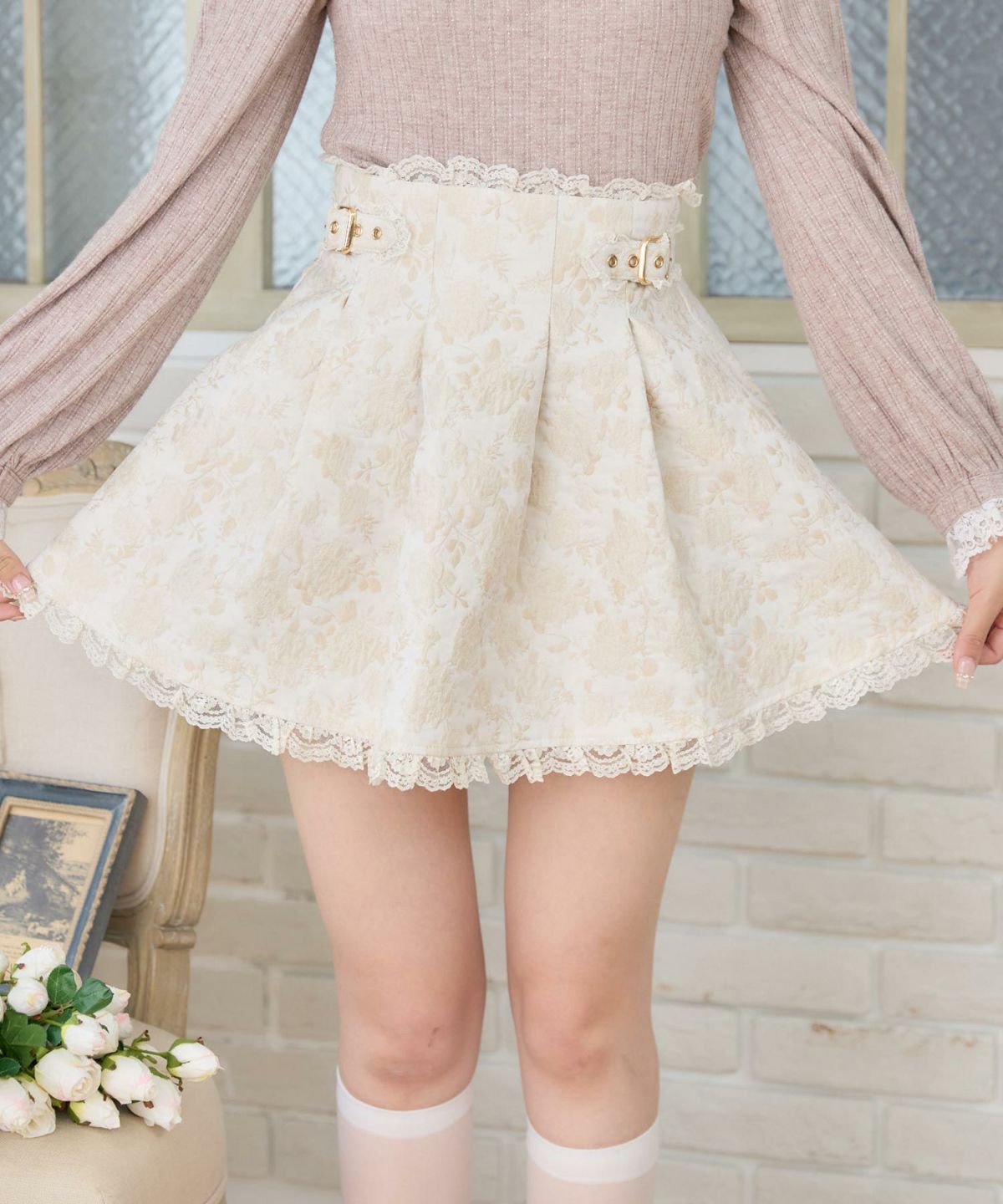 花柄ジャガードミニスカパン