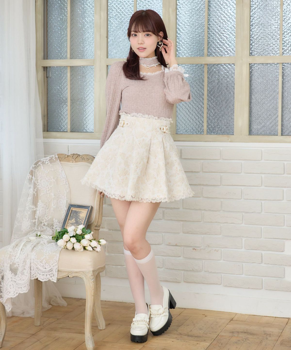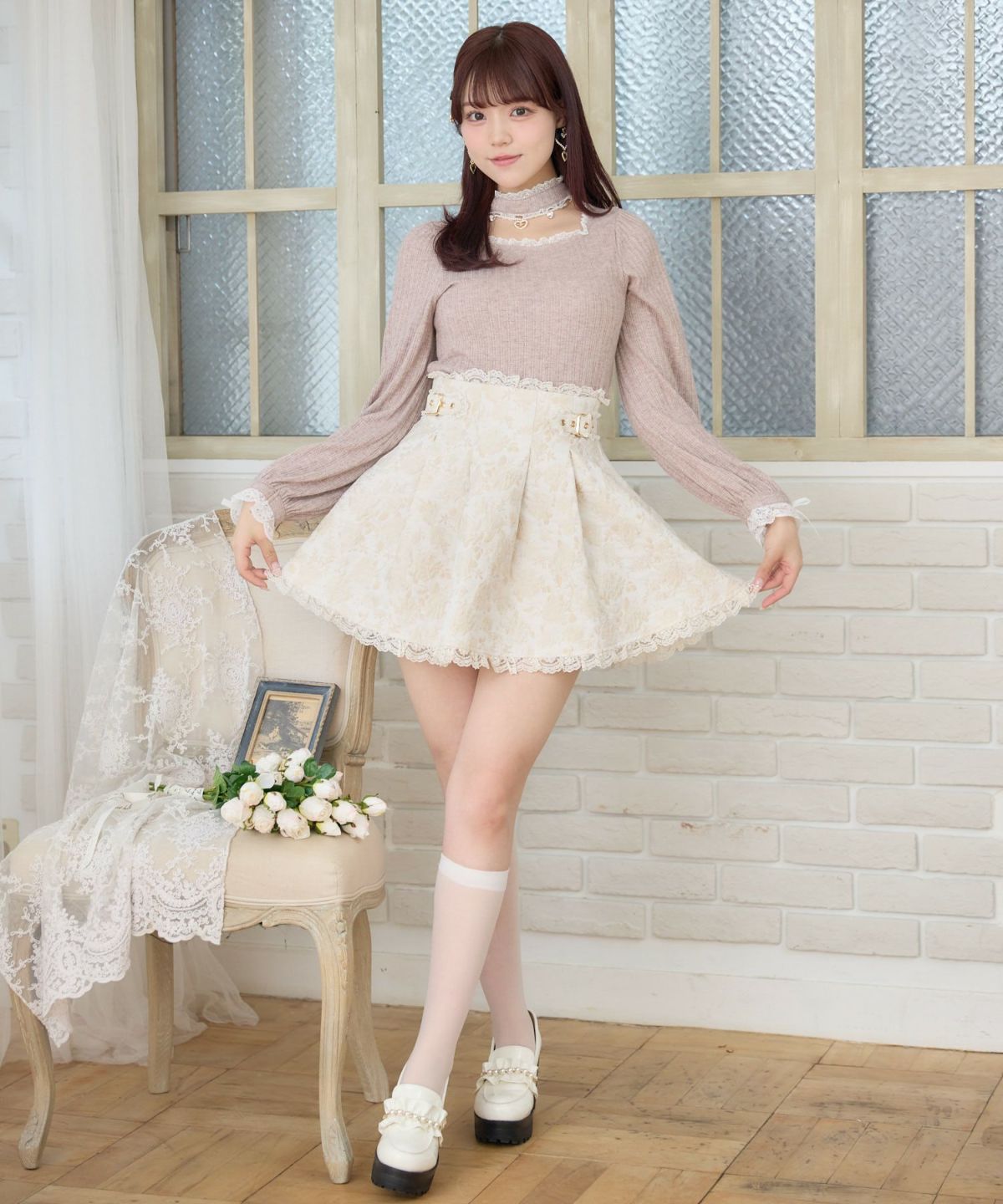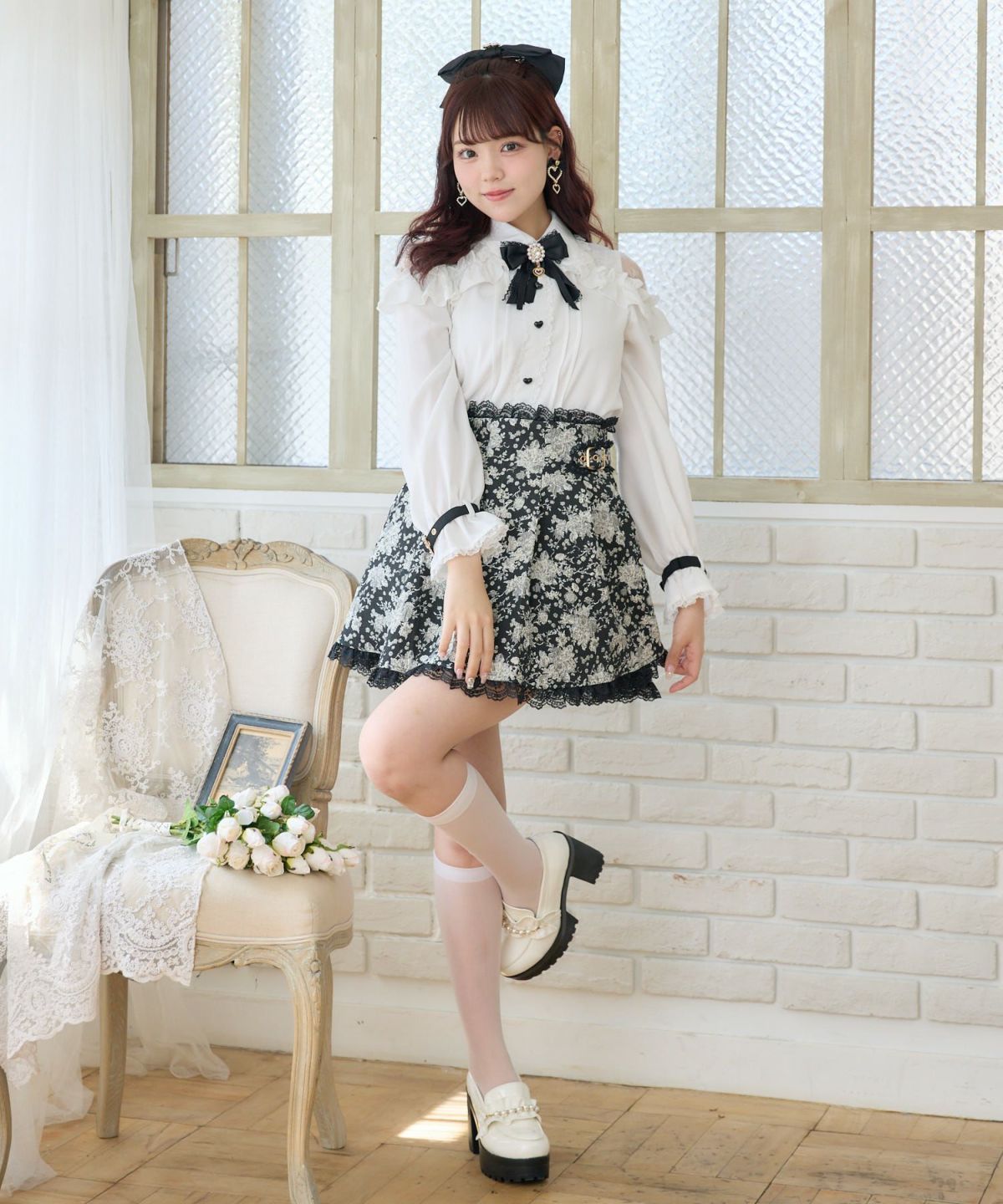 花柄ジャガードミニスカパン