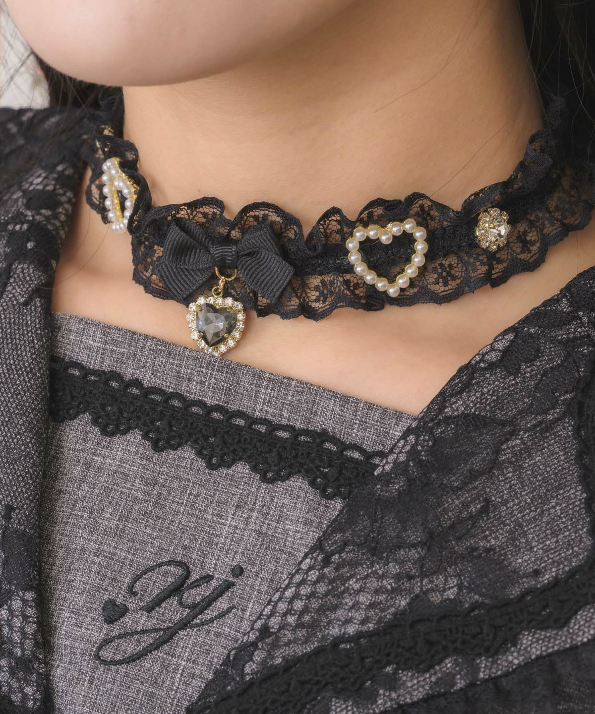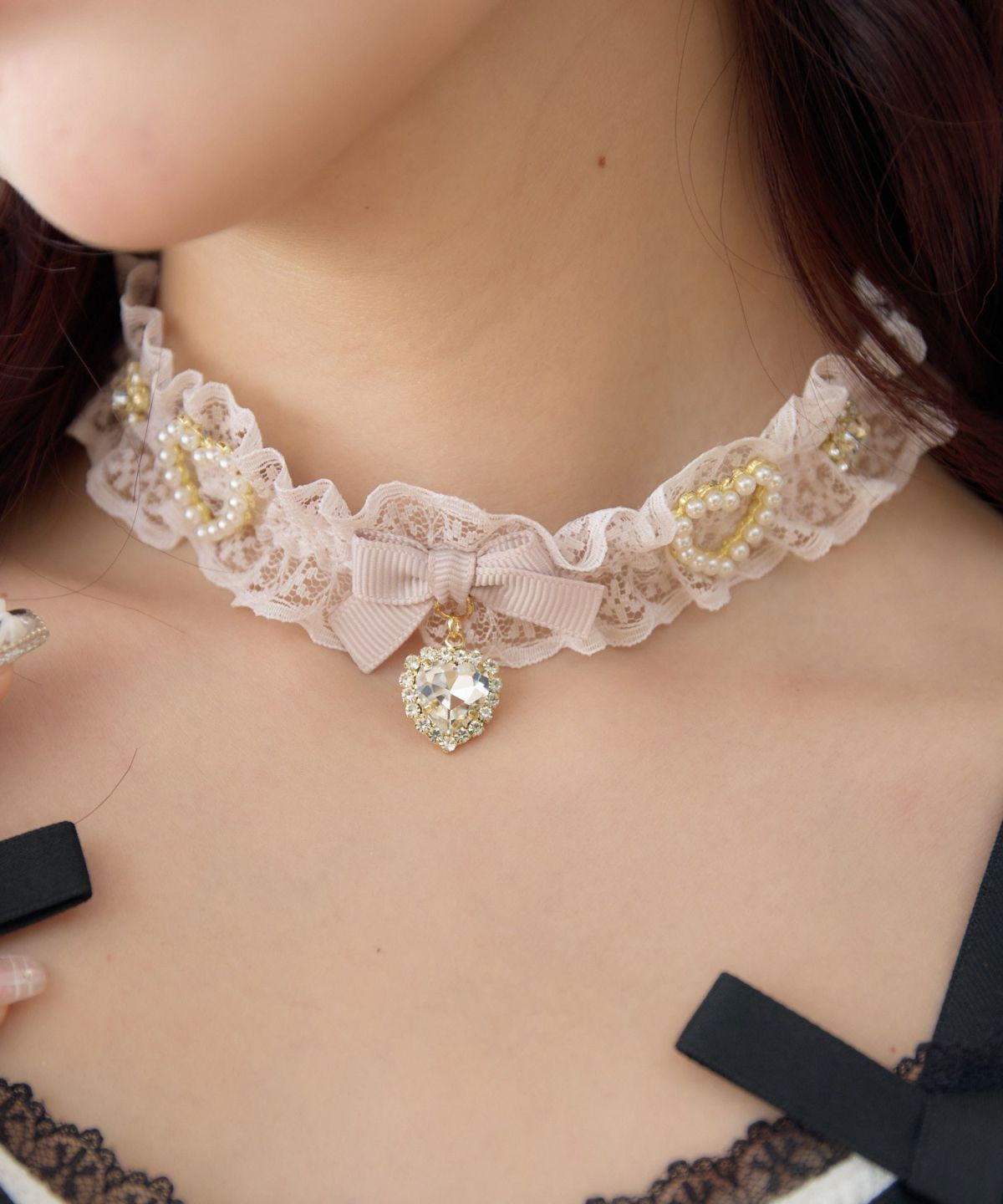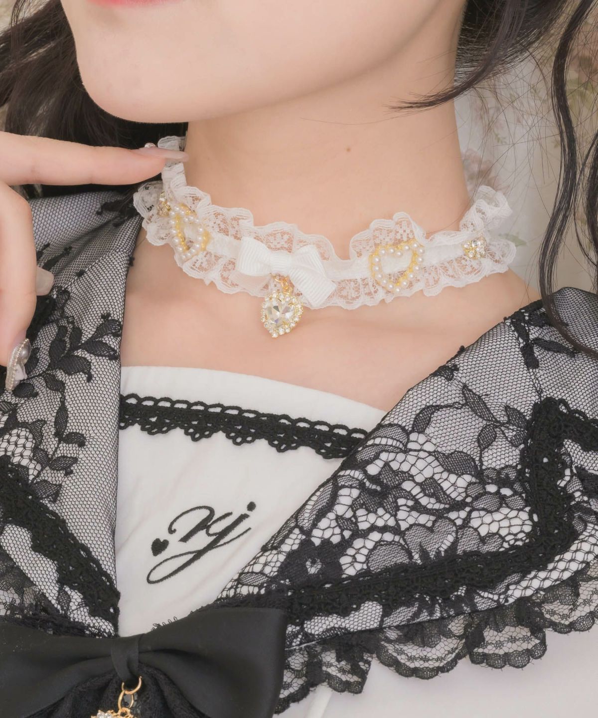 フリルレースハートビジューチョーカー