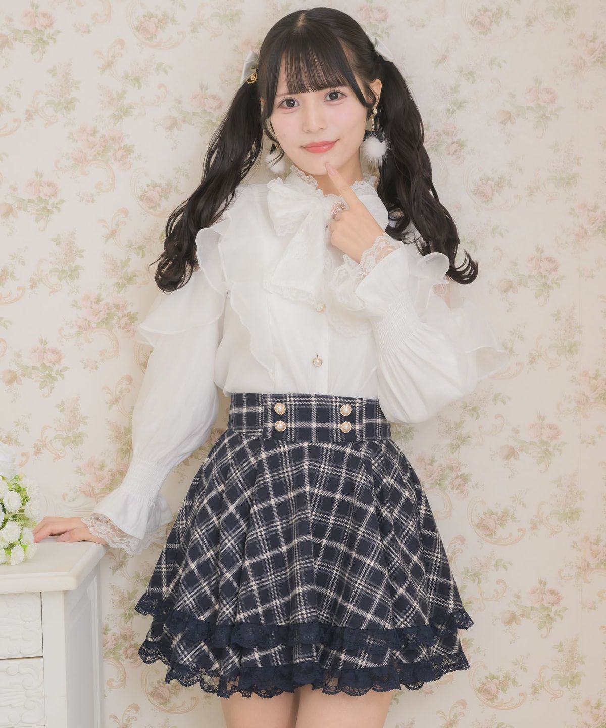 ボウタイラッフルブラウス