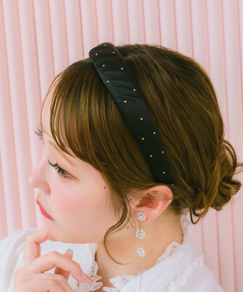 丸みのあるフォルムと程よいボリューム感が、存在感を引き立てるカチューシャ。小ぶりなストーンがきらめき、フレンチガーリーな可愛らしさを演出します。スタイリングに上品な輝きを添え、コーディネートを洗練された印象へ導くアイテムです。 ※照明の関係で実際のお色味と若干異なる場合がございます。 ※表示のサイズ感と実物は若干異なる場合がございますので、予めご了承ください。