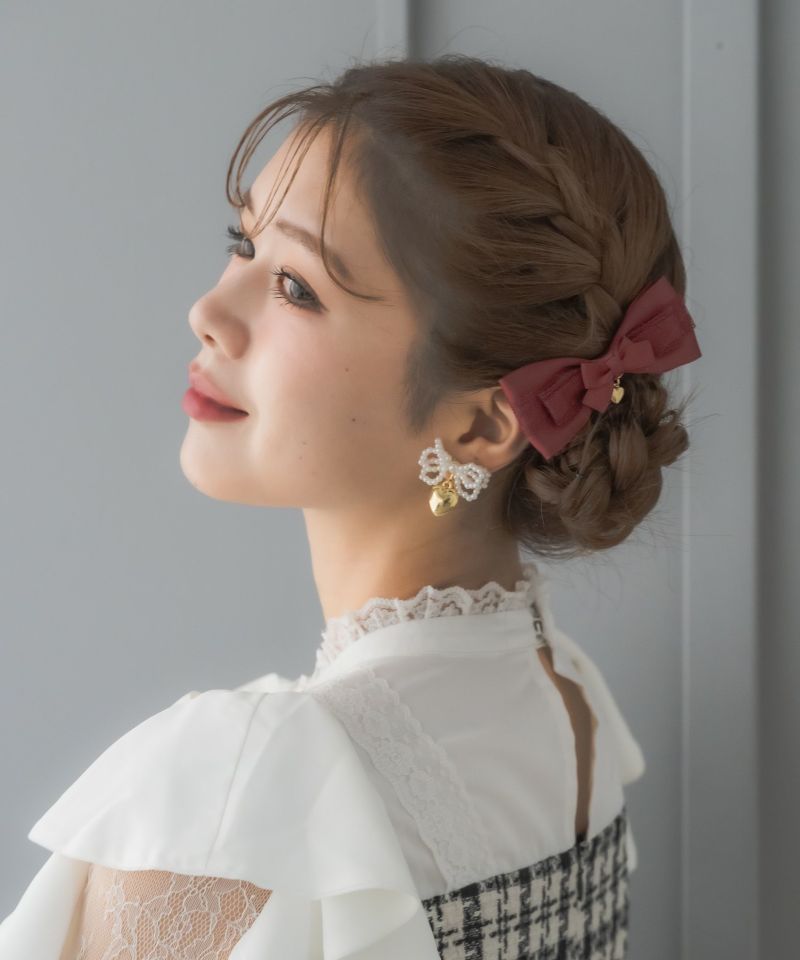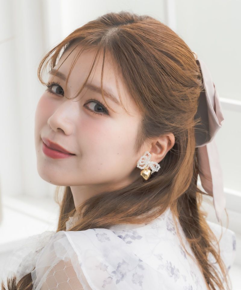 ミニサイズのパールで仕立てた立体感のあるリボンモチーフ。お呼ばれなどのオケージョンシーンにもピッタリ、お育ち良さげな印象で華やかさを添えてくれます。穴は空いていないけどピアスのようなデザインがつけたい人におすすめ♡ ※照明の関係で実際のお色味と若干異なる場合がございます。 ※表示のサイズ感と実物は若干異なる場合がございますので、予めご了承ください。